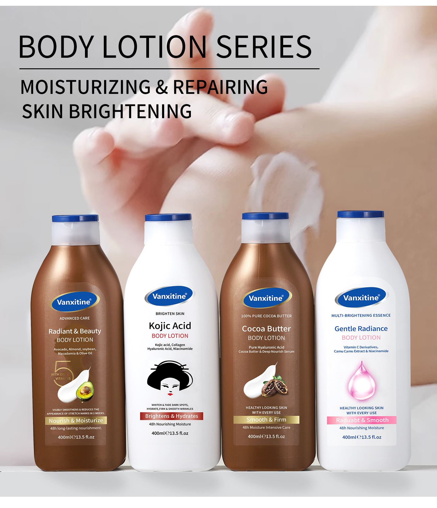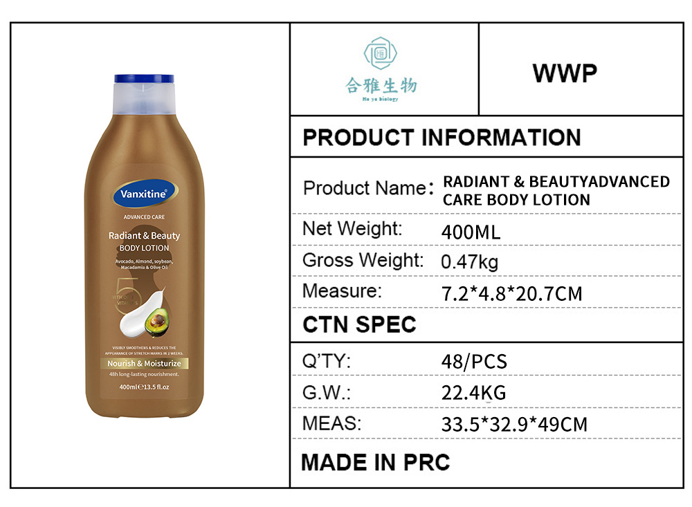 brightening body lotion 400ml [packaging: 48 pcs/ctn; product is for export only and is prohibited from being sold within china.]