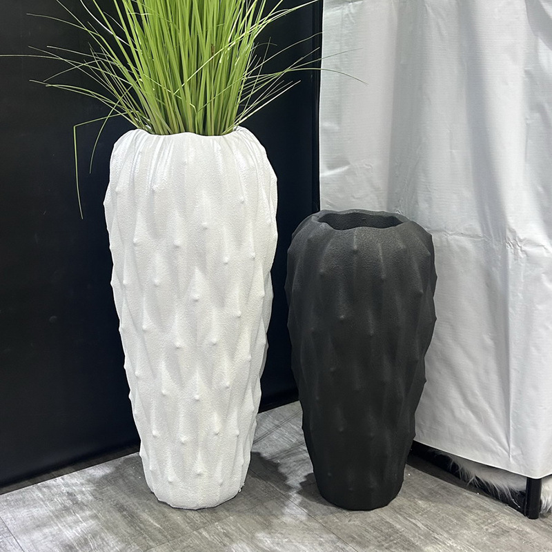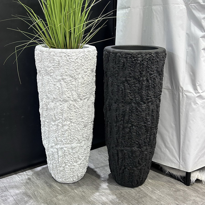 roman column floor flower device magnesium oxide ceramic flower pot vase new chinese style silent style living room decoration black and white two colors