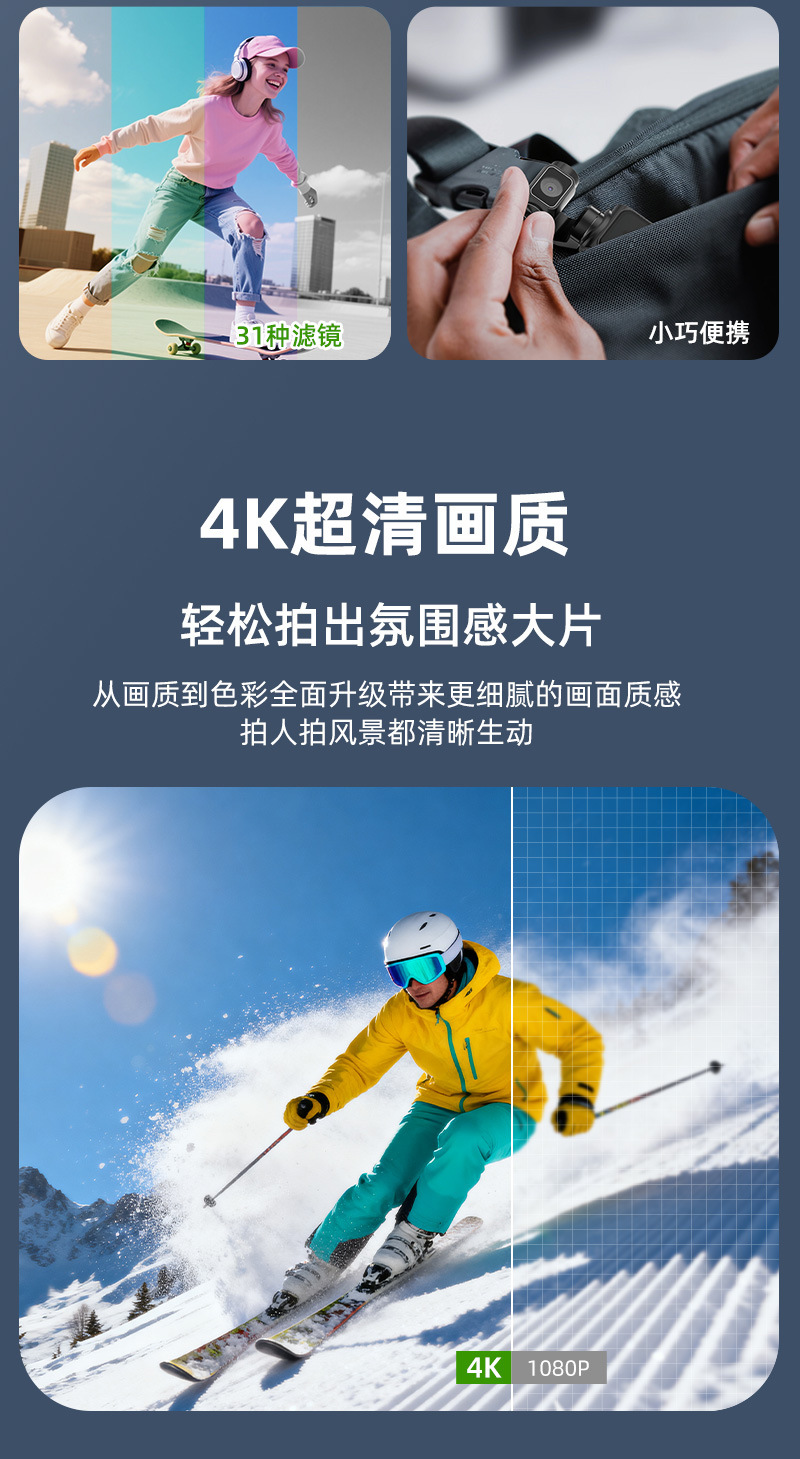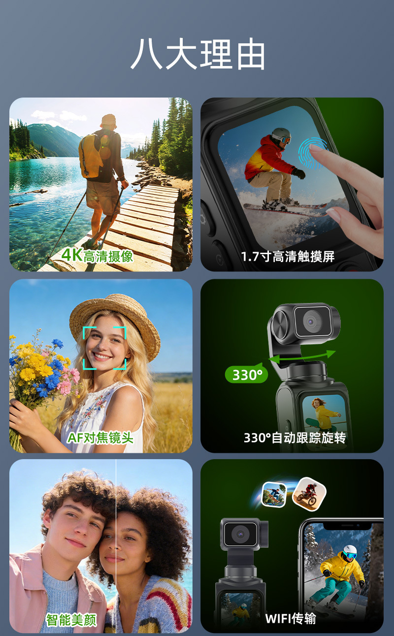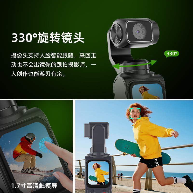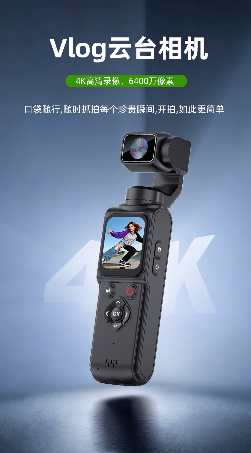 4k hd handheld action camera with pocket gimbal, vlog camera for travel, handheld outdoor shooting camera