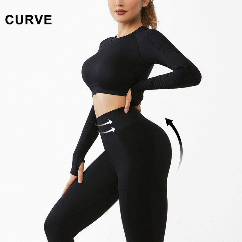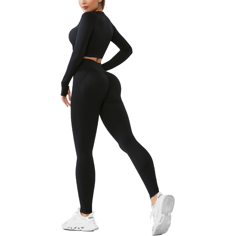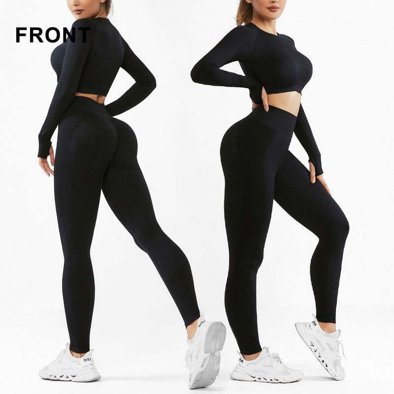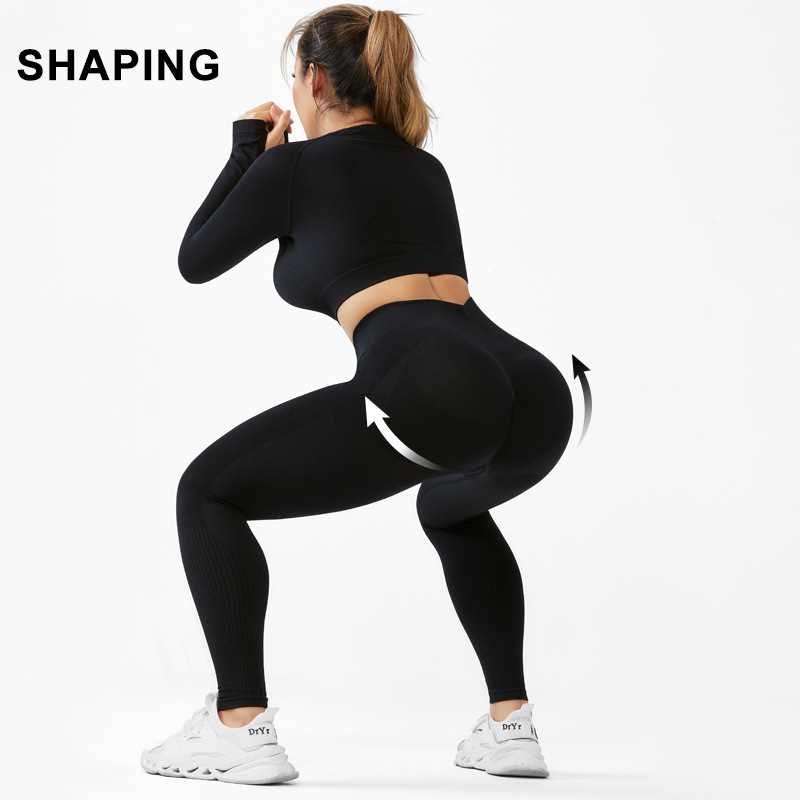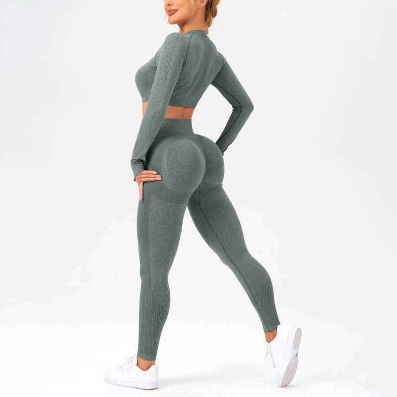cross-border seamless yoga suit women's long-sleeved top sports fitness suit can be worn outside high waist hip lift trousers suit
