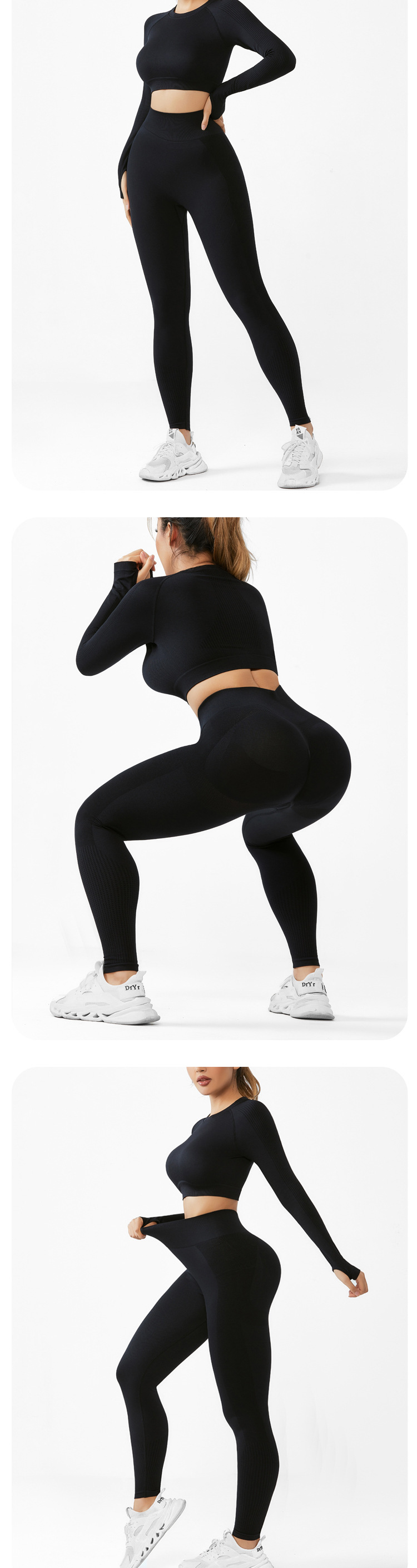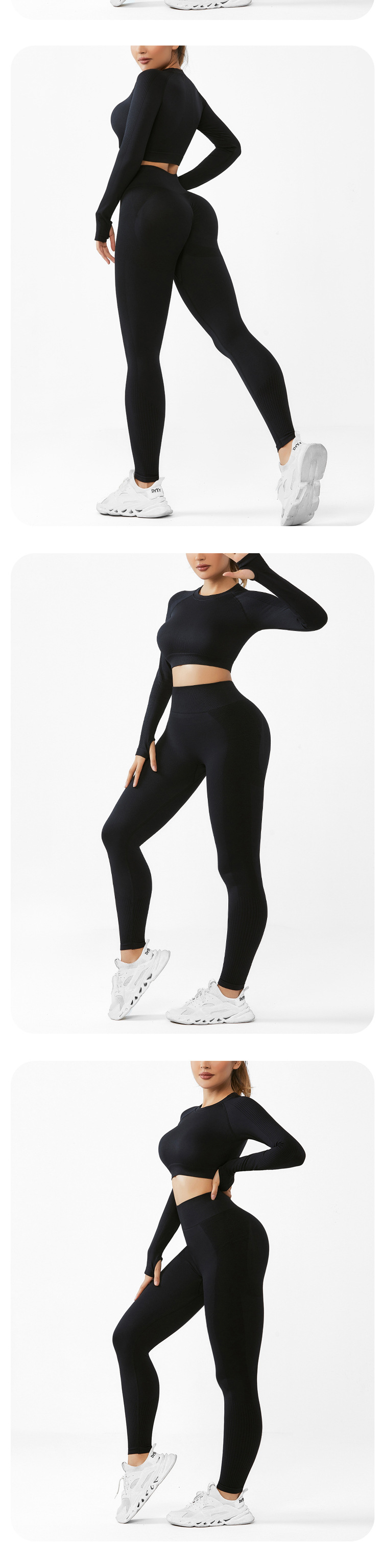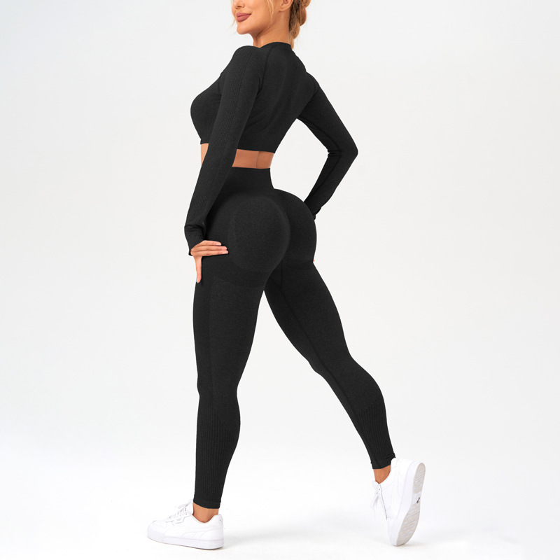 cross-border seamless yoga suit women's long-sleeved top sports fitness suit can be worn outside high waist hip lift trousers suit