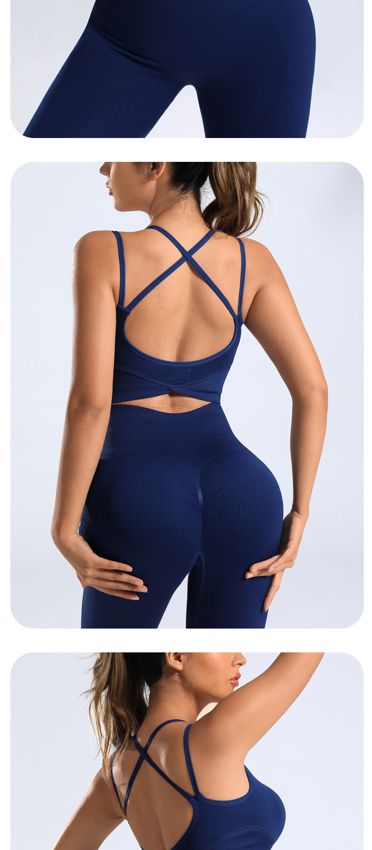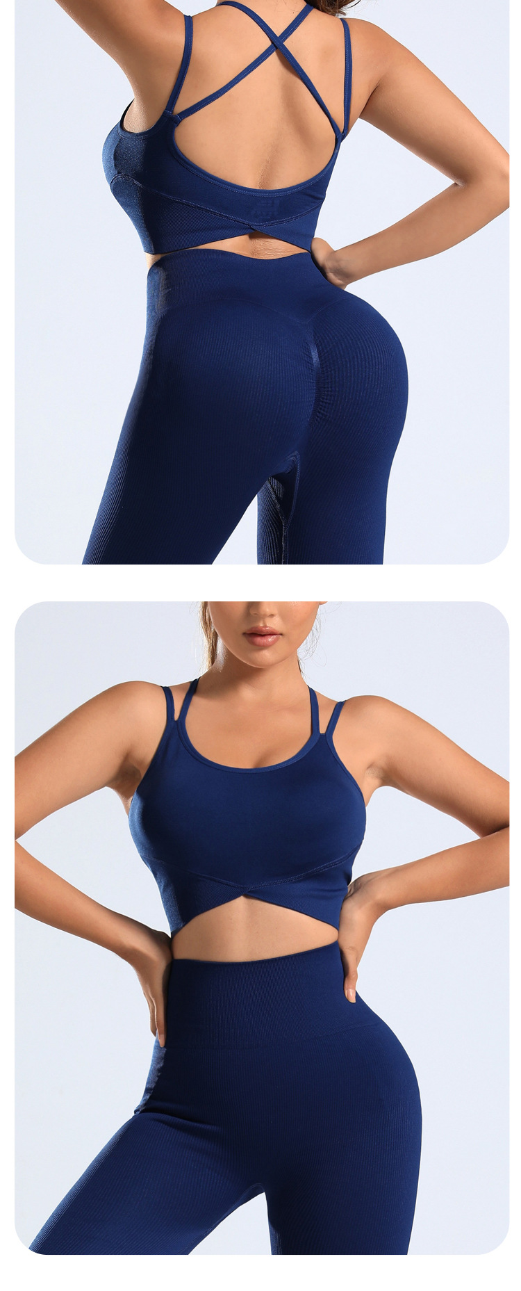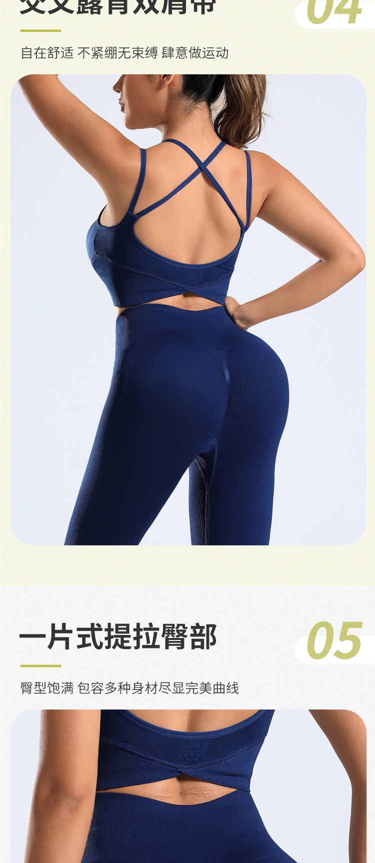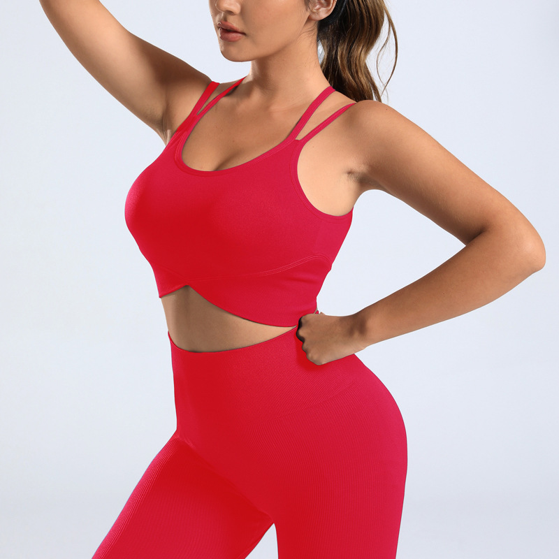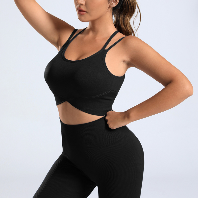 cross-border european and american yoga suit custom seamless backless bra peach hip trousers two-piece sports fitness suit