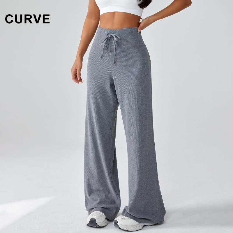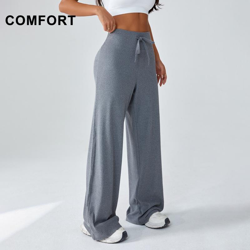 loose yoga pants women's high waist drawstring sports trousers women's all-matching straight pants drooping slimming casual wide-leg pants
