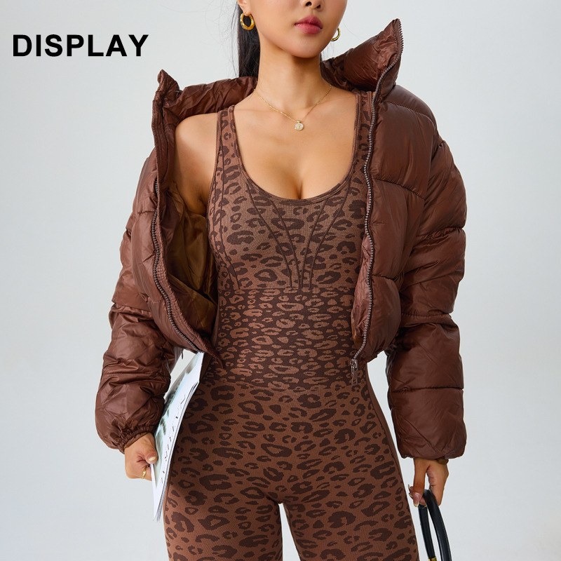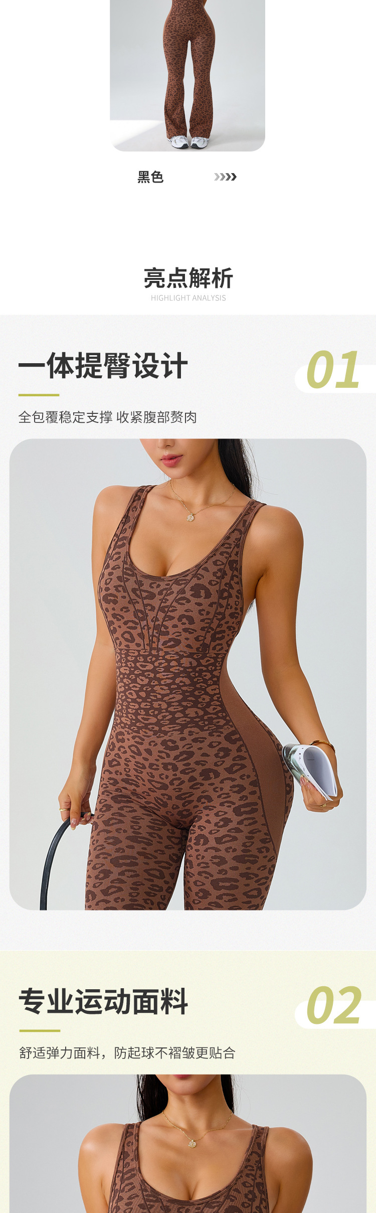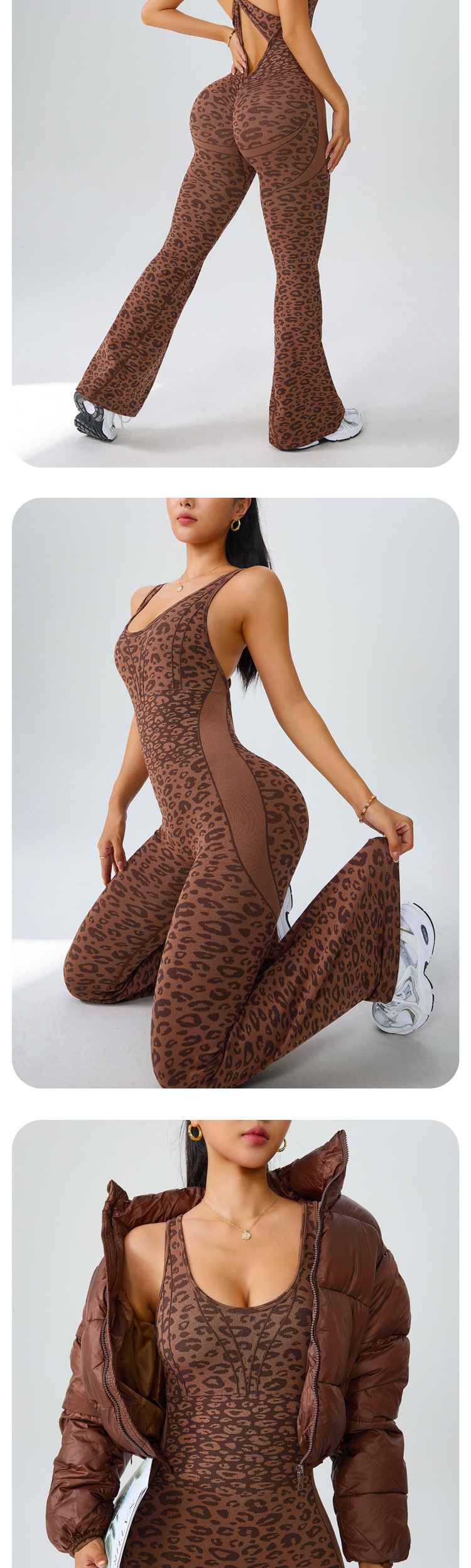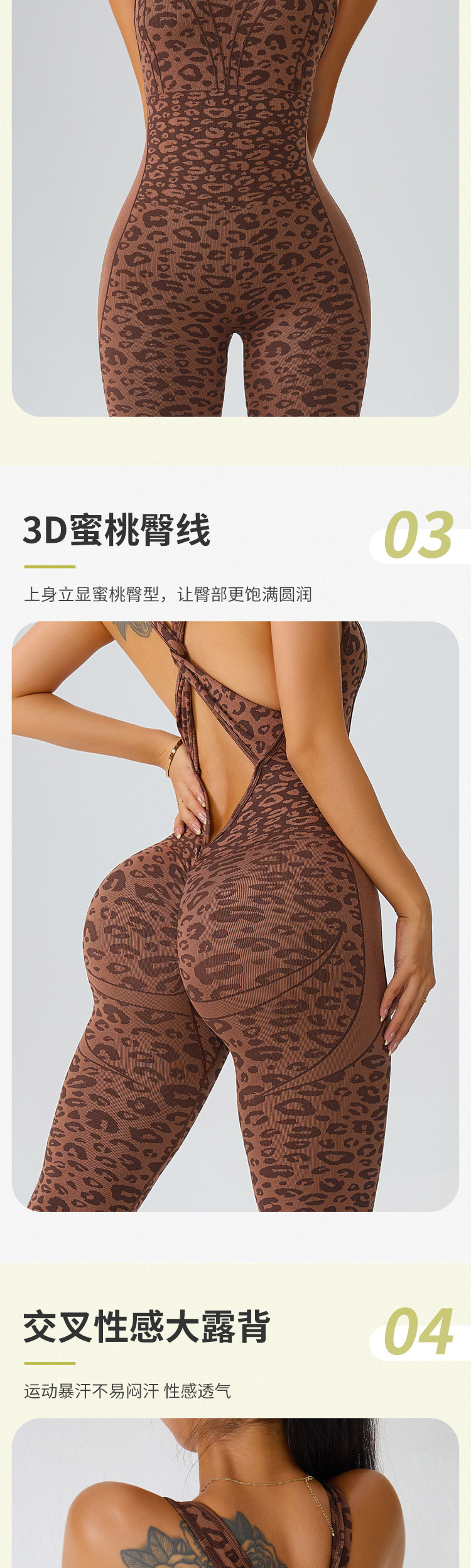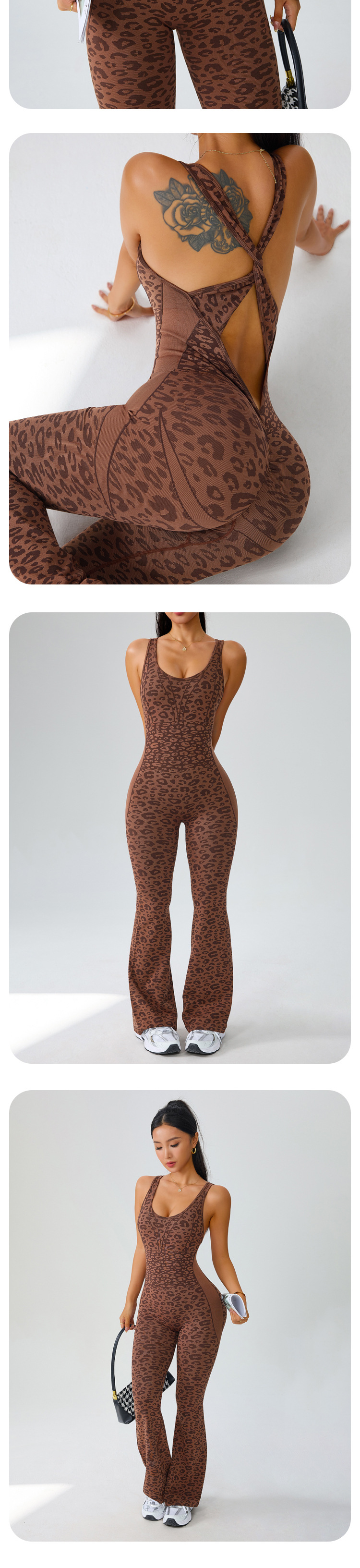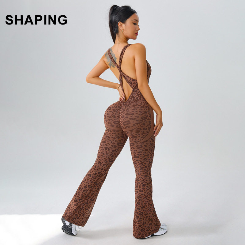 european and american seamless yoga bodysuit women's leopard print hollow-out one-piece fitness clothes peach hip sports bootcut trousers suit