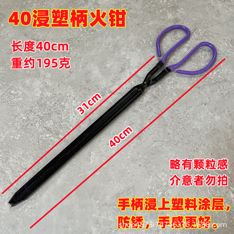 40cm plastic-coated handle iron fire tongs
