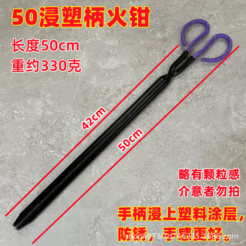 50cm plastic-coated handle iron fire tongs
