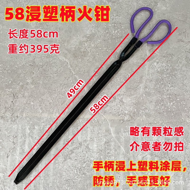 58cm plastic-coated handle iron fire tongs