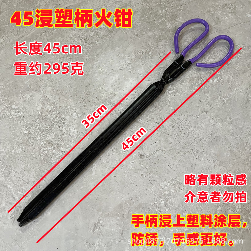 45cm plastic-coated handle iron fire tongs