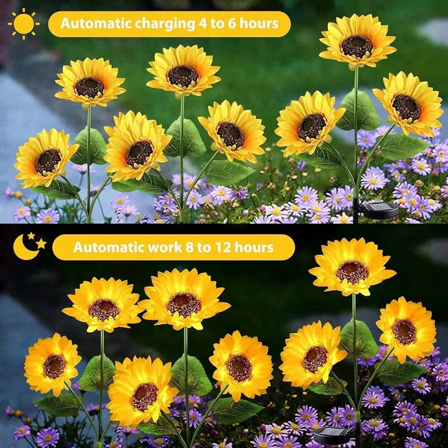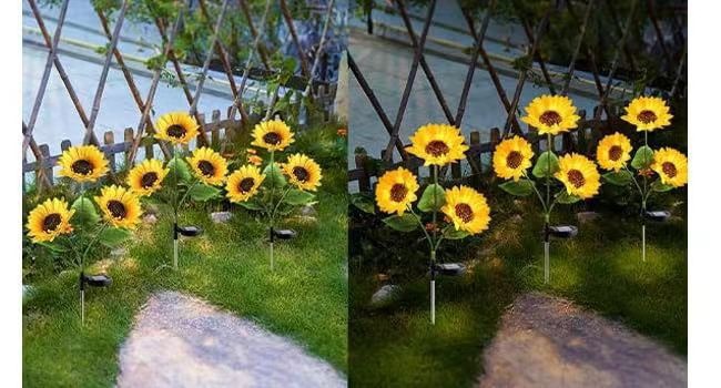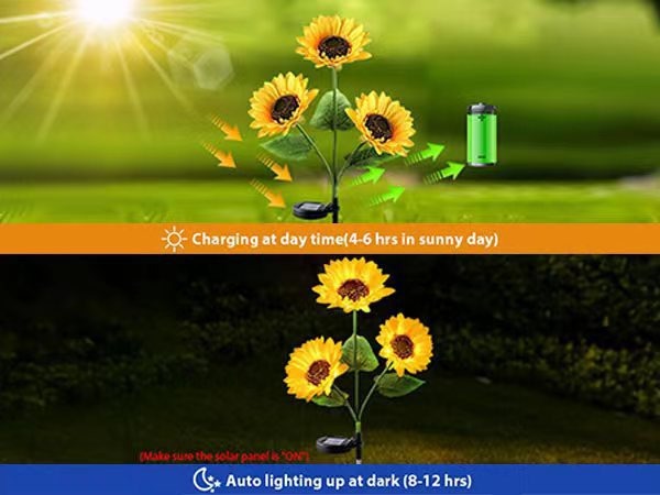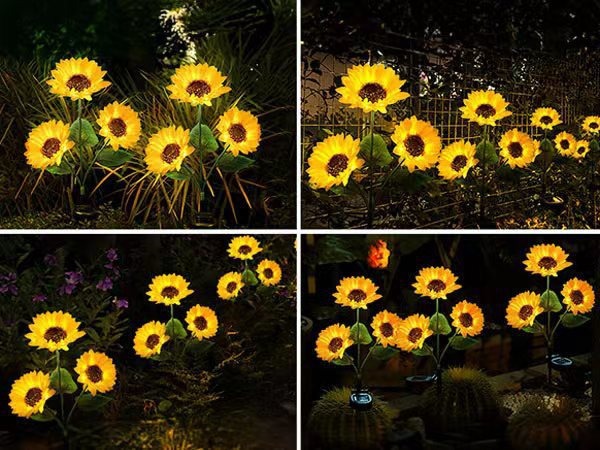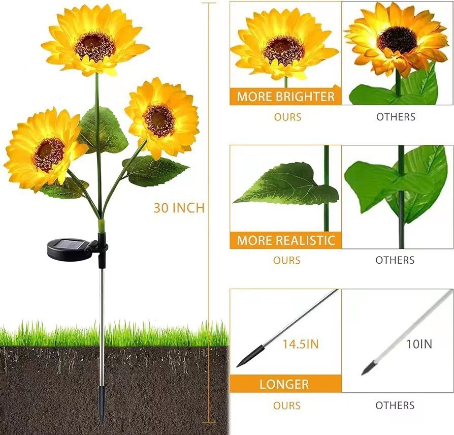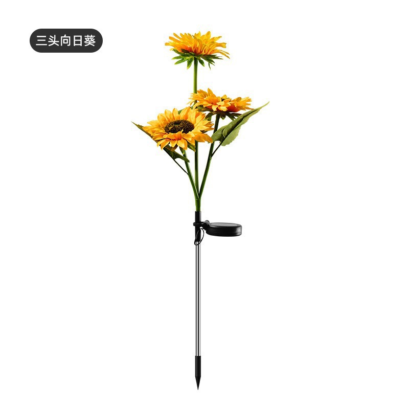 solar-powered 3-head sunflower garden stake