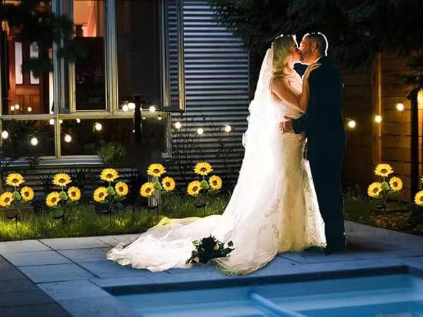 solar-powered single-head sunflower ground stake flower