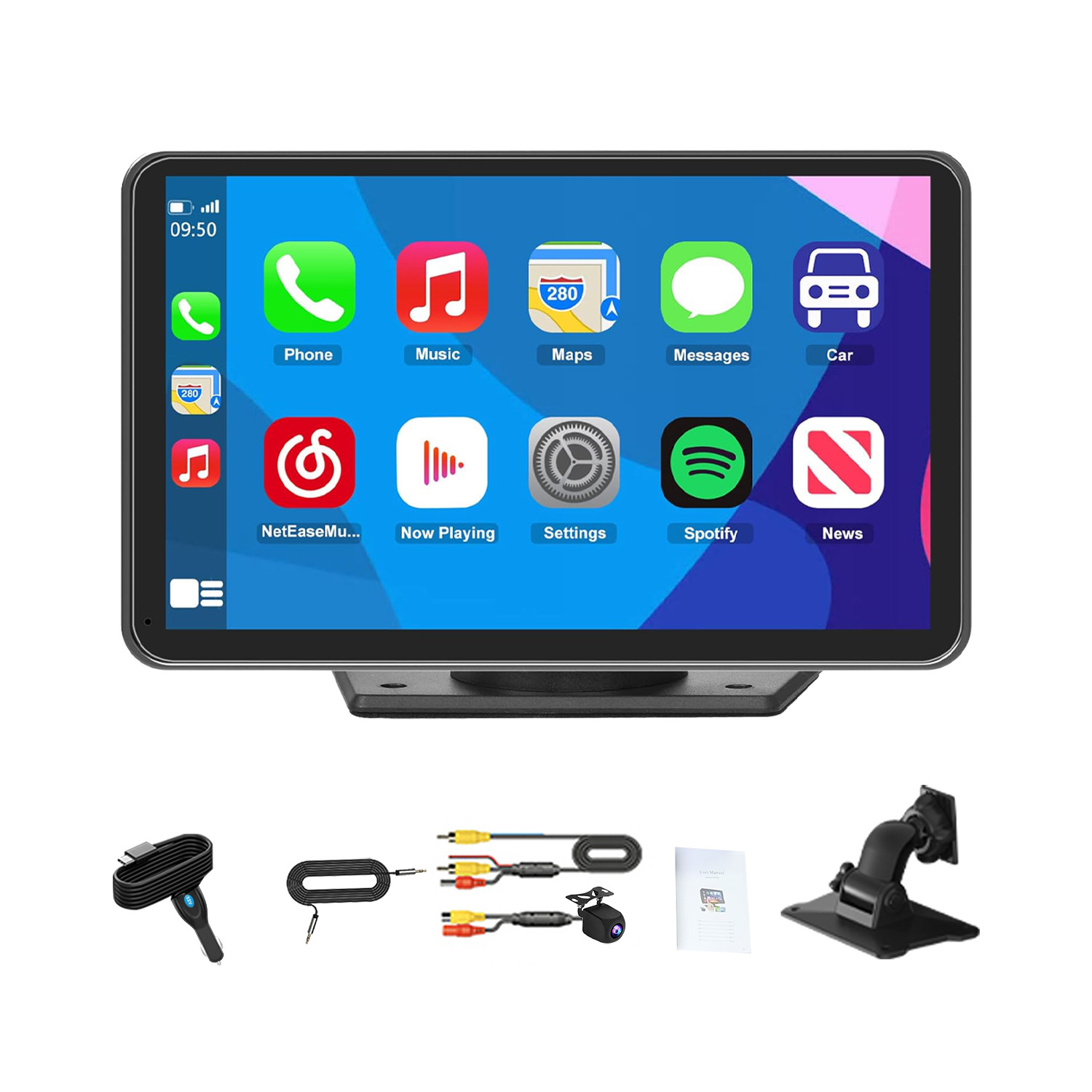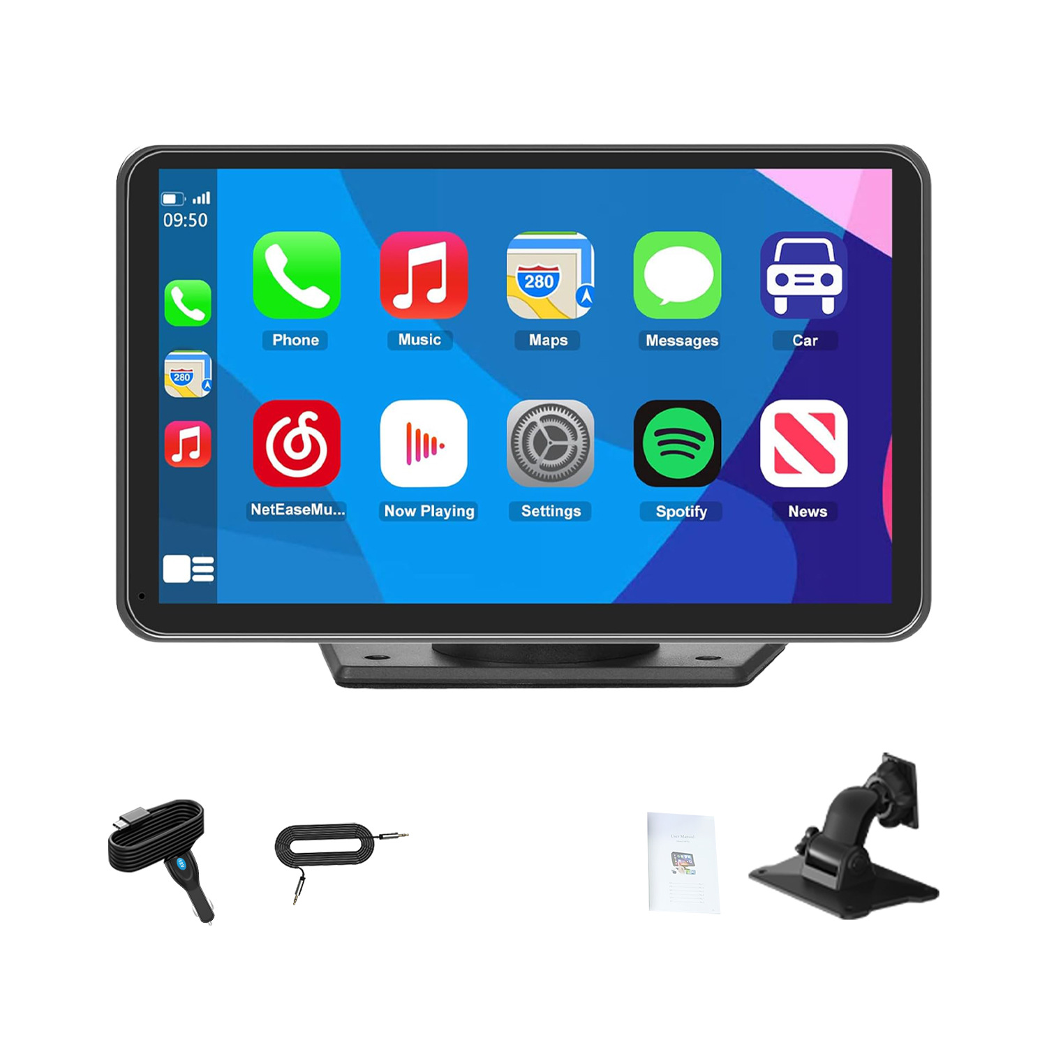 Multiple support options available, long-arm suction cups for added support.5 yuanStandard equipped with 3M adhesive stand and one AUX cable.