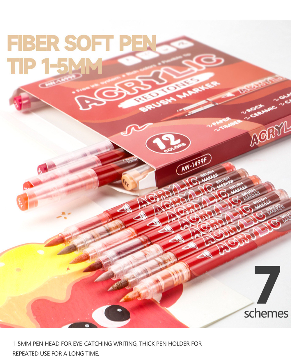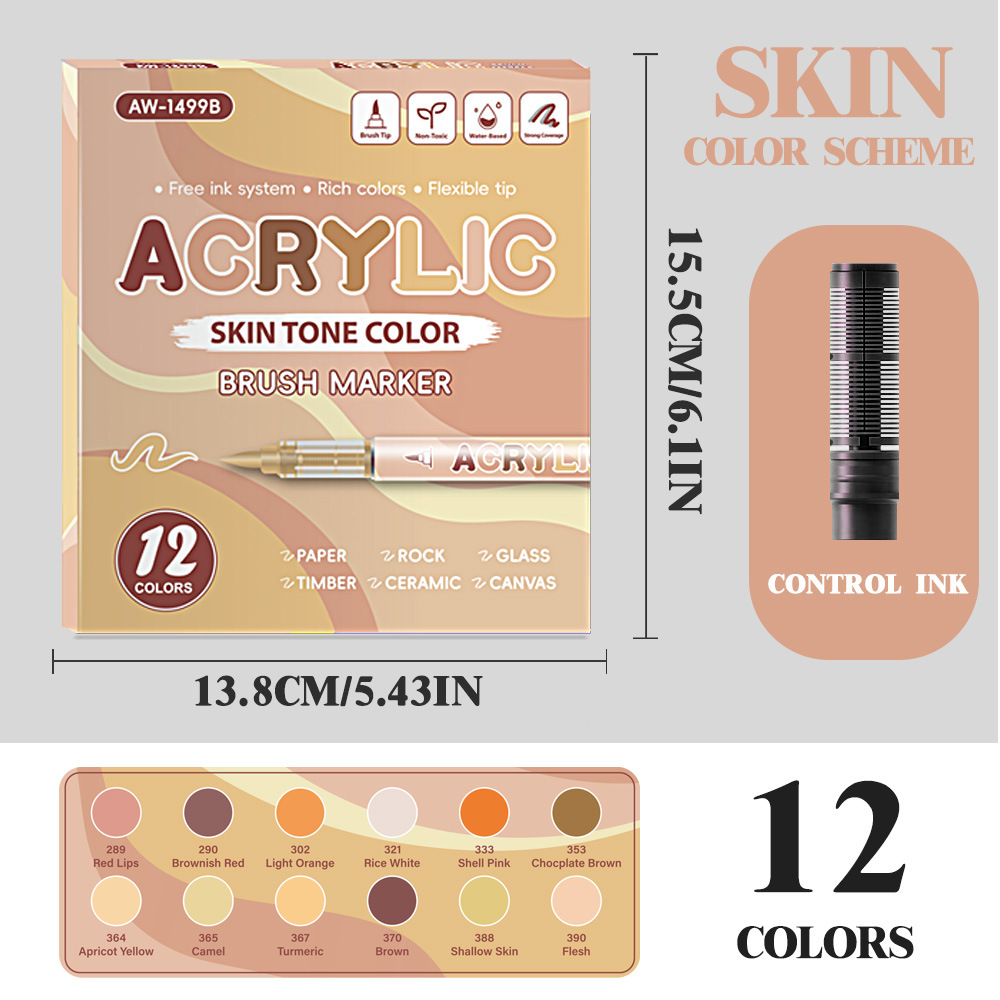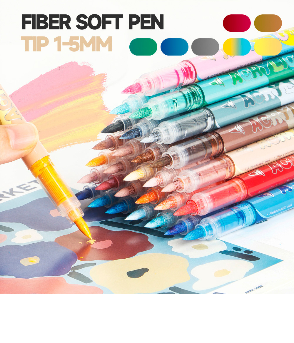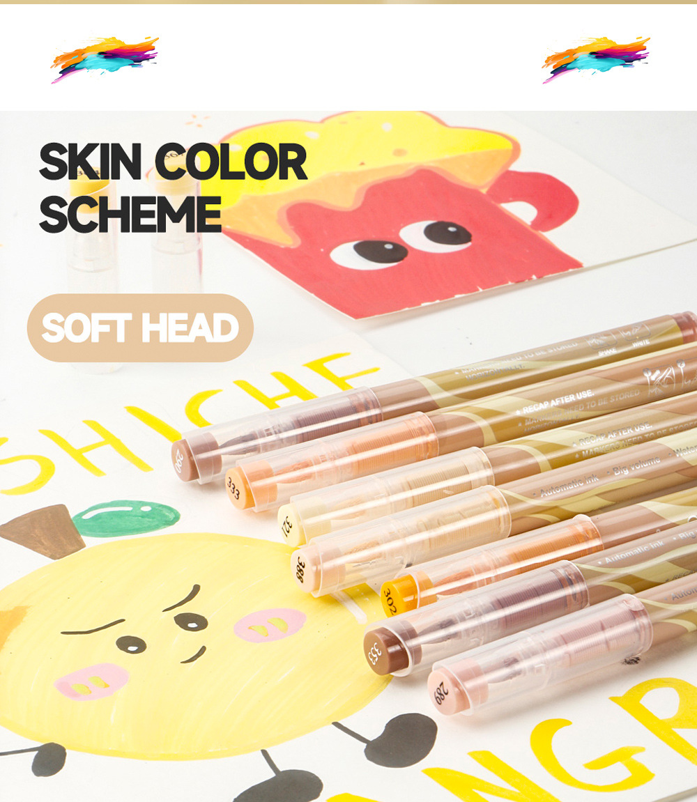 direct-feed soft-tip acrylic marker pen set, layerable drawing brushes, student anime skin tone painting, colorful acrylic brush