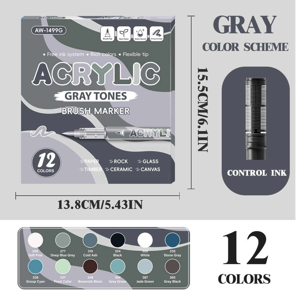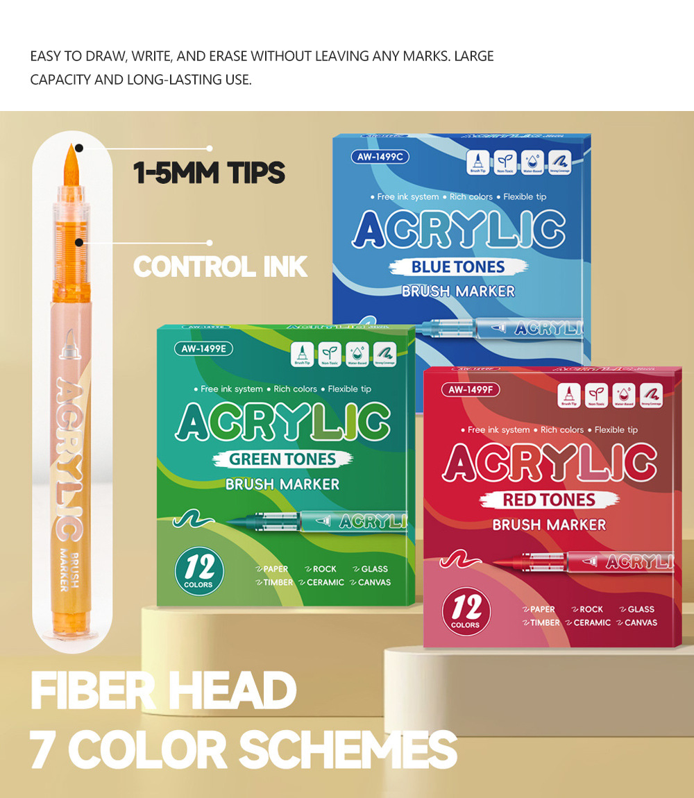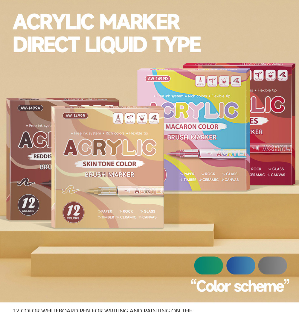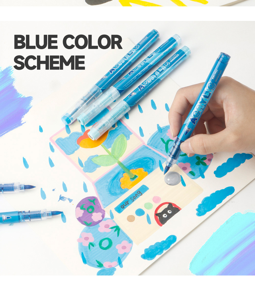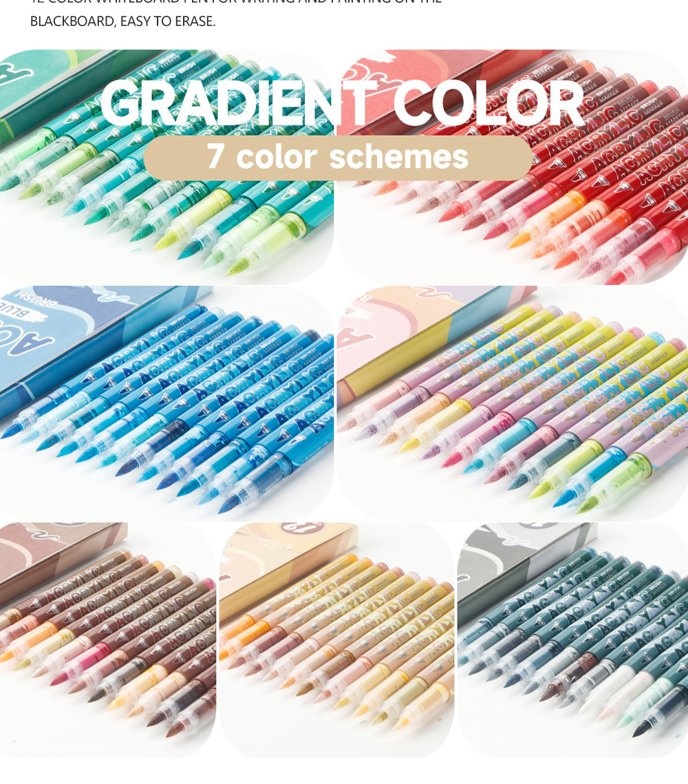 direct-feed soft-tip acrylic marker pen set, layerable drawing brushes, student anime skin tone painting, colorful acrylic brush