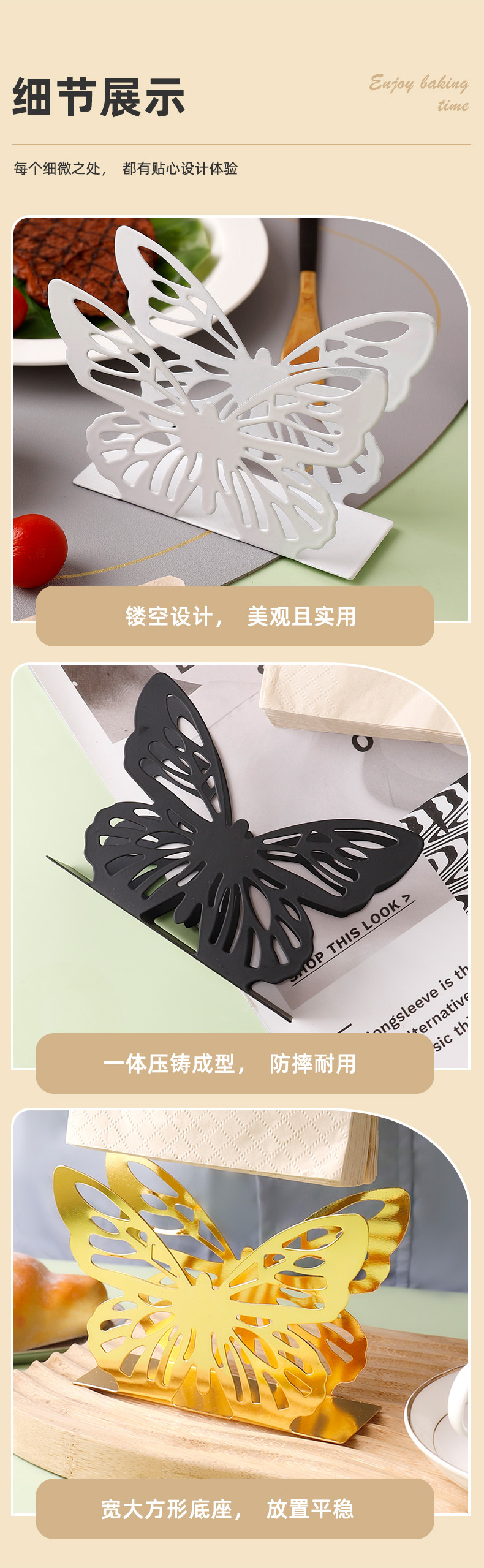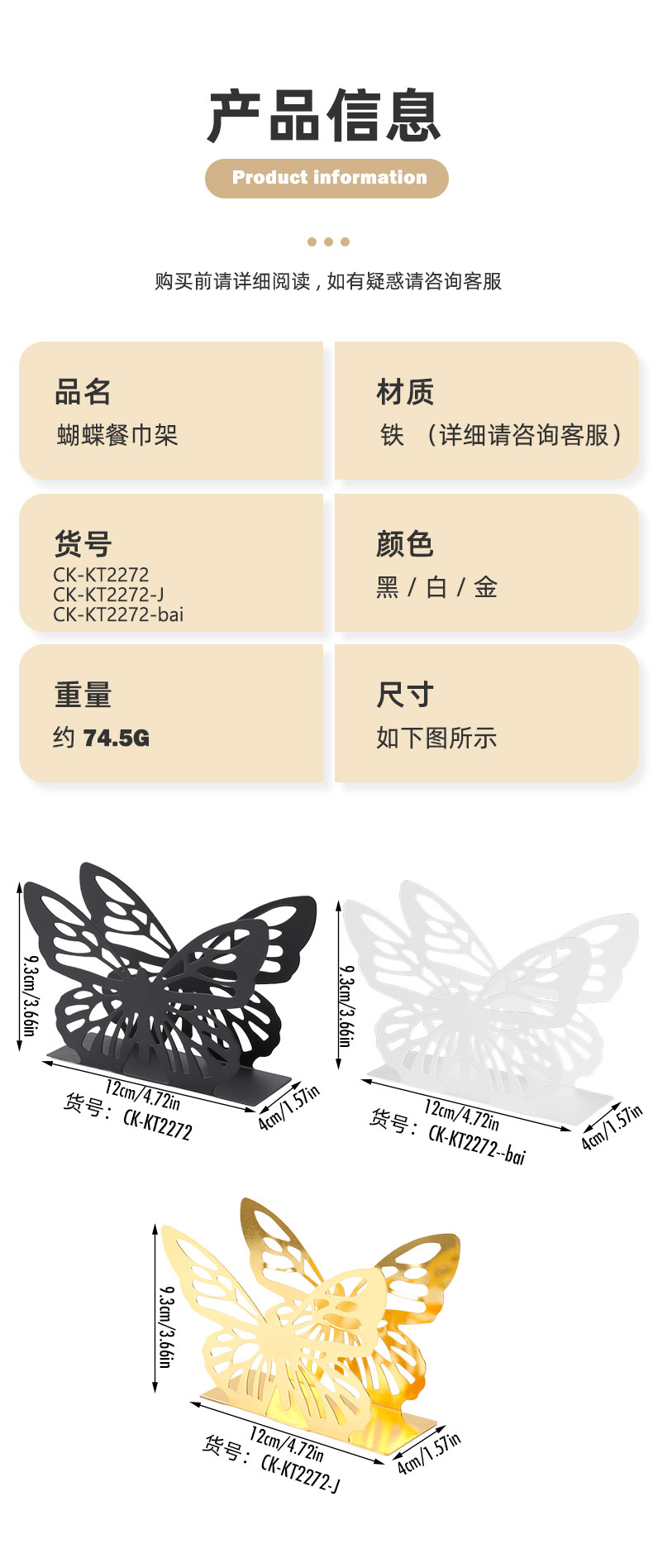size: butterfly napkin holder (faux gold), butterfly napkin holder (powder spraying)