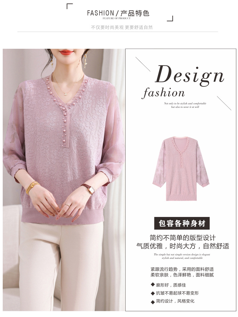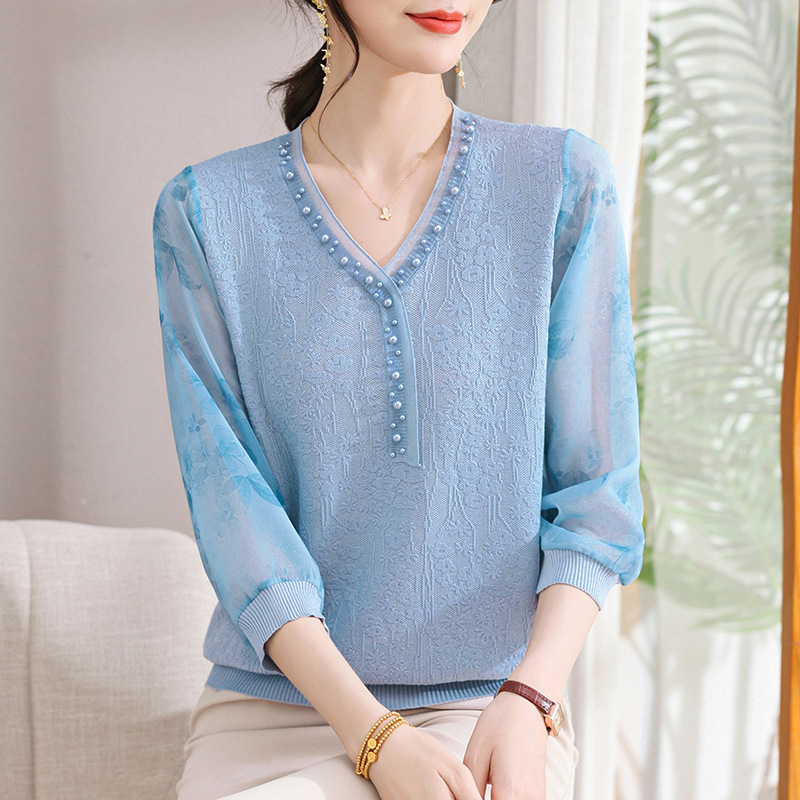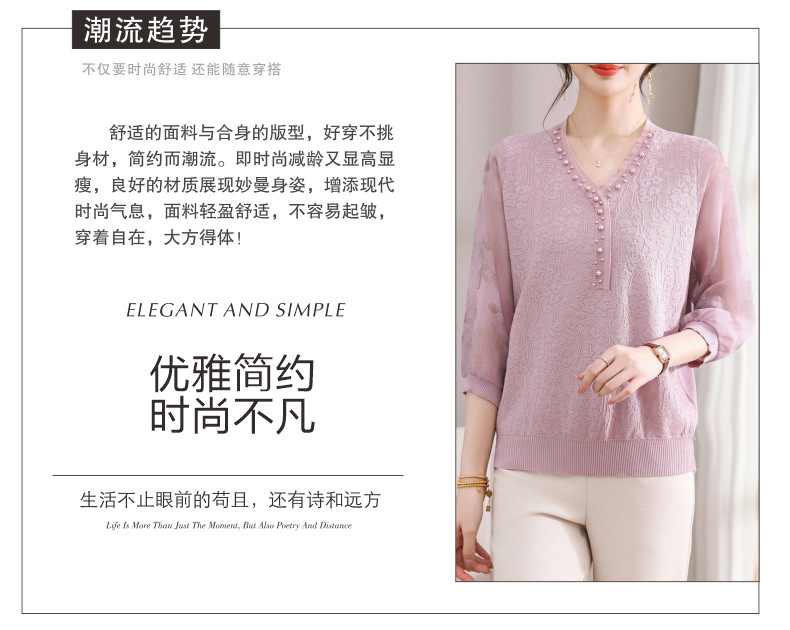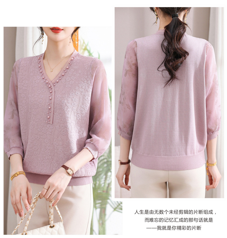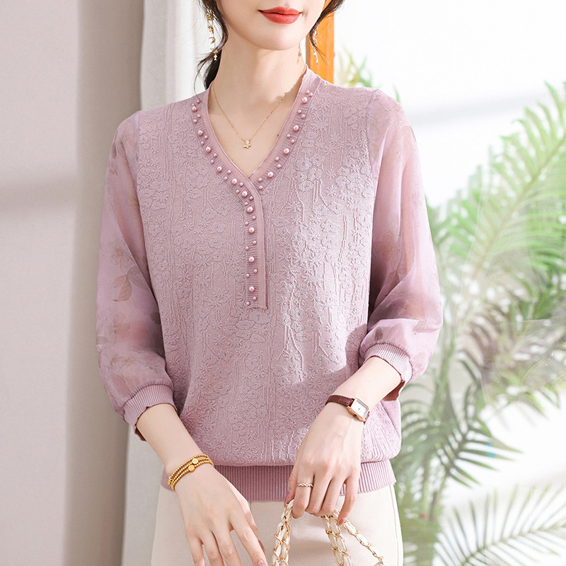 young mothers' clothing spring clothes western style spring and autumn top middle-aged and elderly women's clothes long sleeve t-shirt middle-aged thin western style small shirt