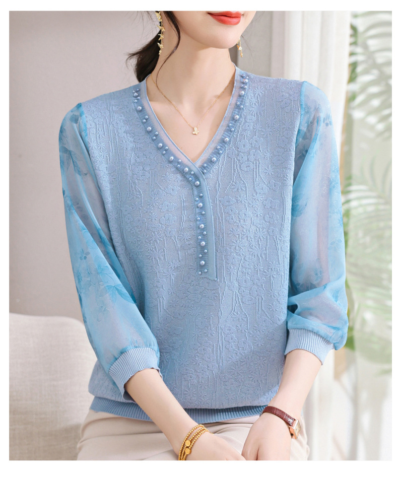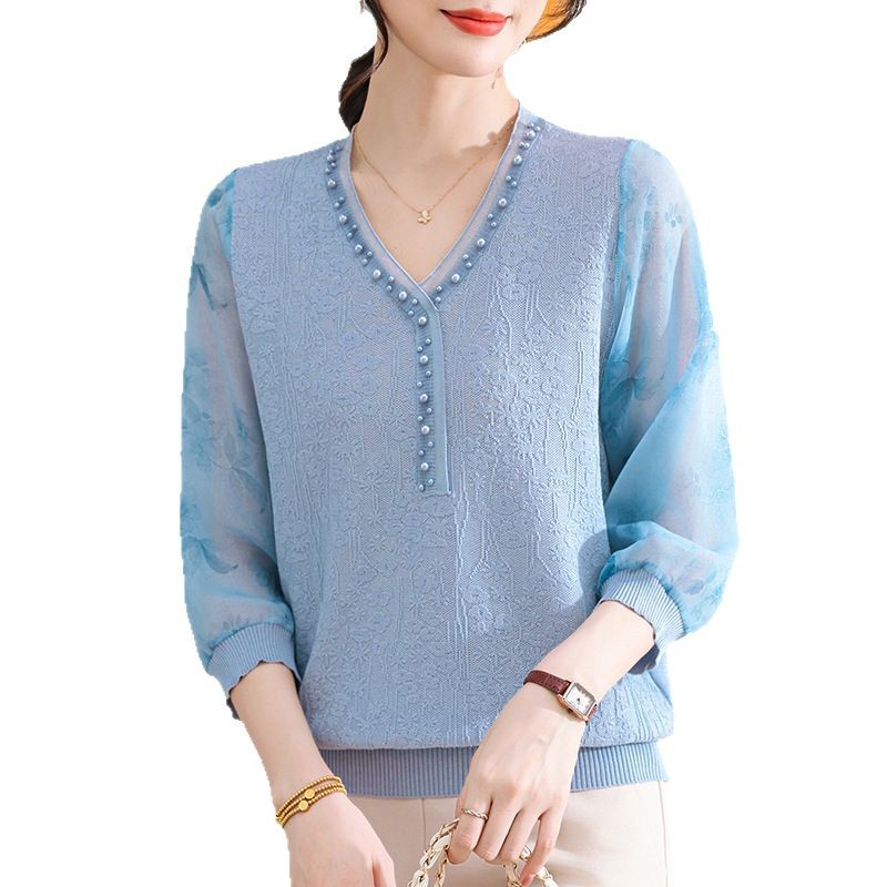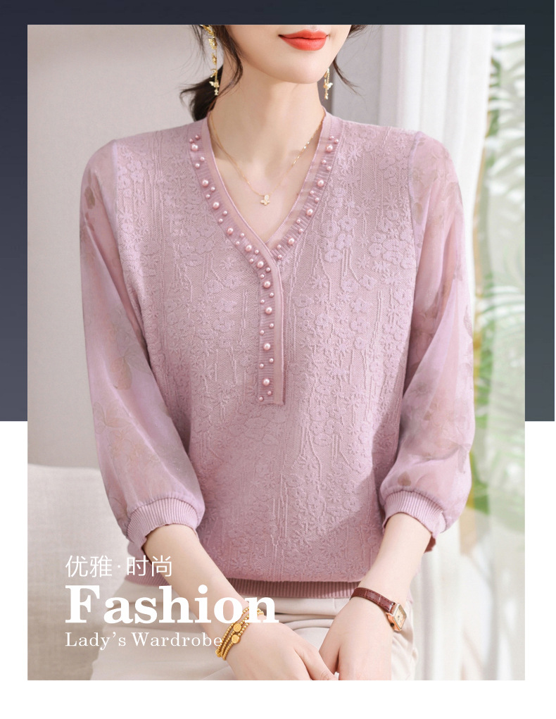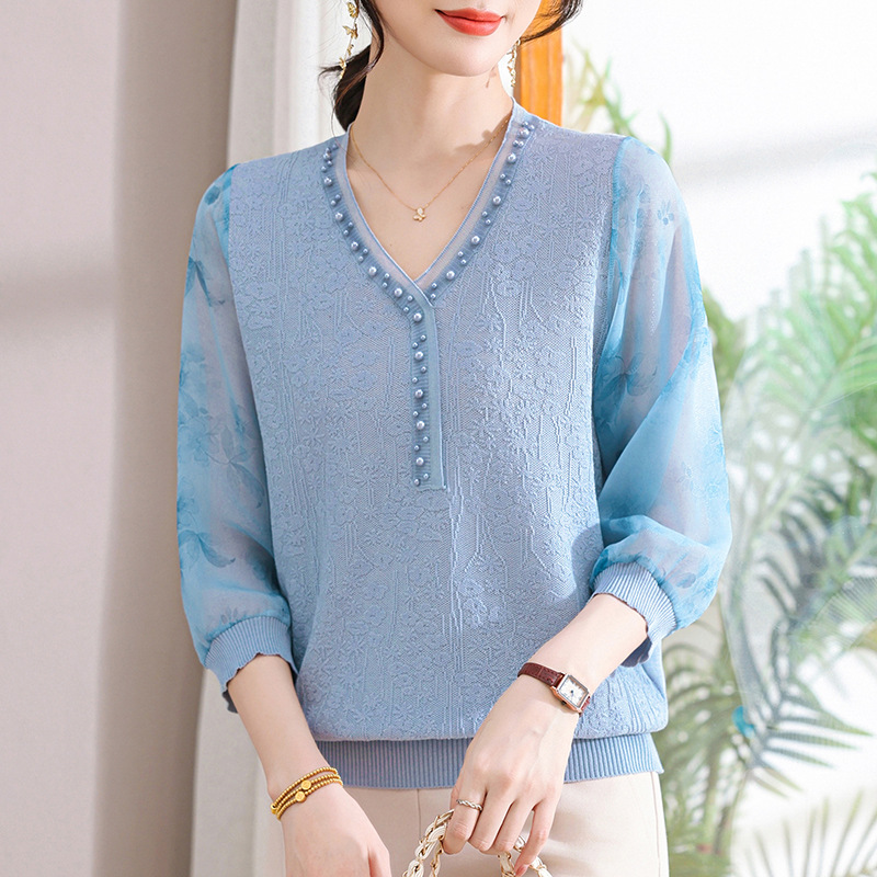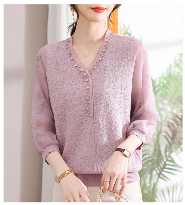 young mothers' clothing spring clothes western style spring and autumn top middle-aged and elderly women's clothes long sleeve t-shirt middle-aged thin western style small shirt