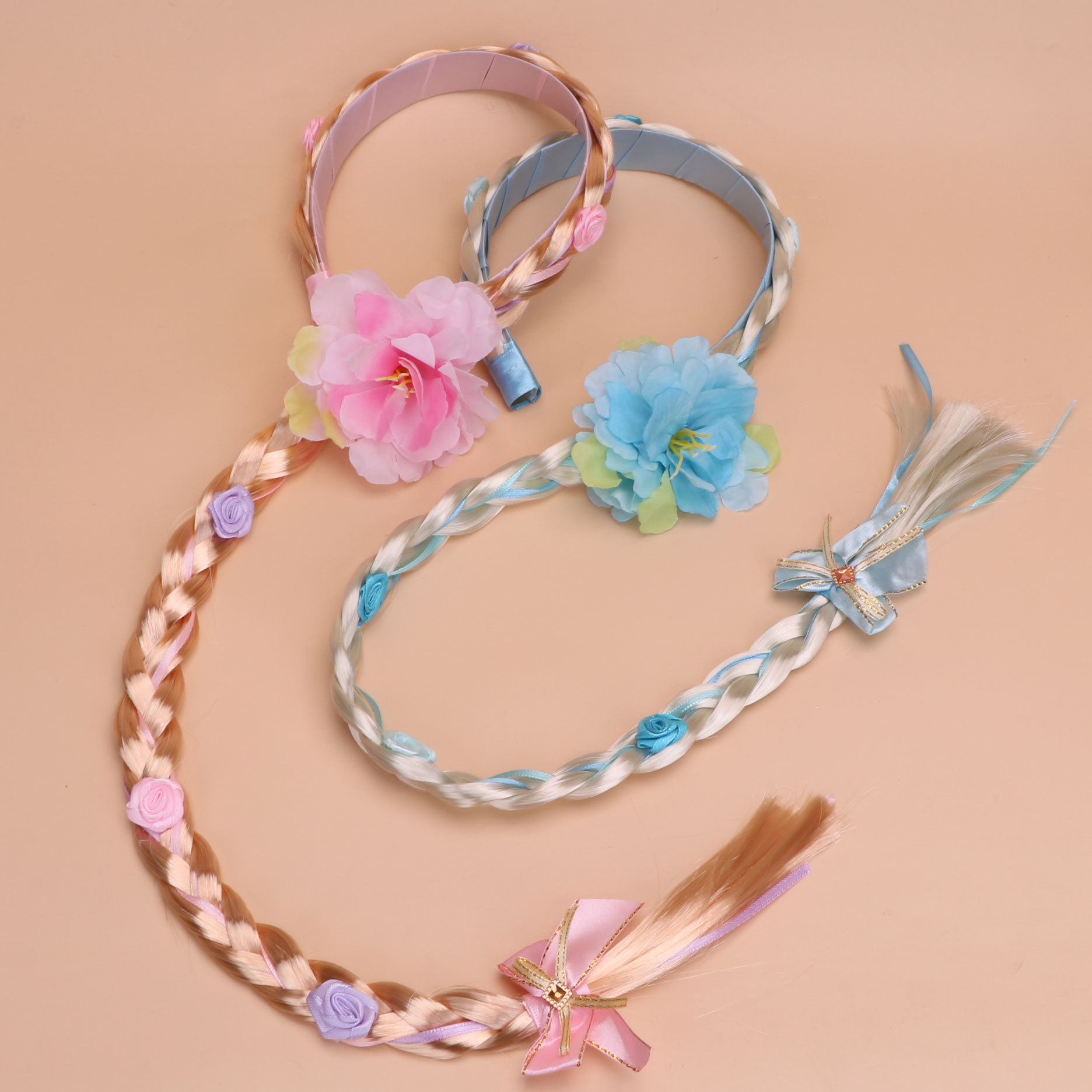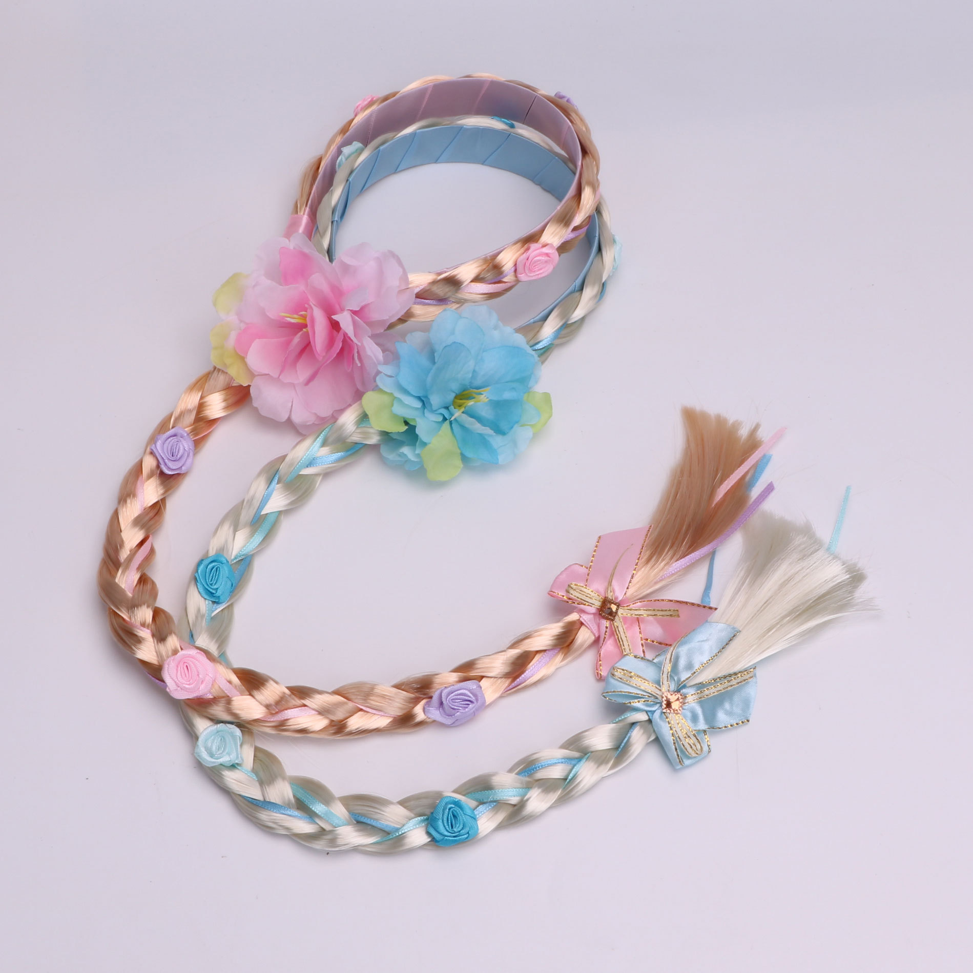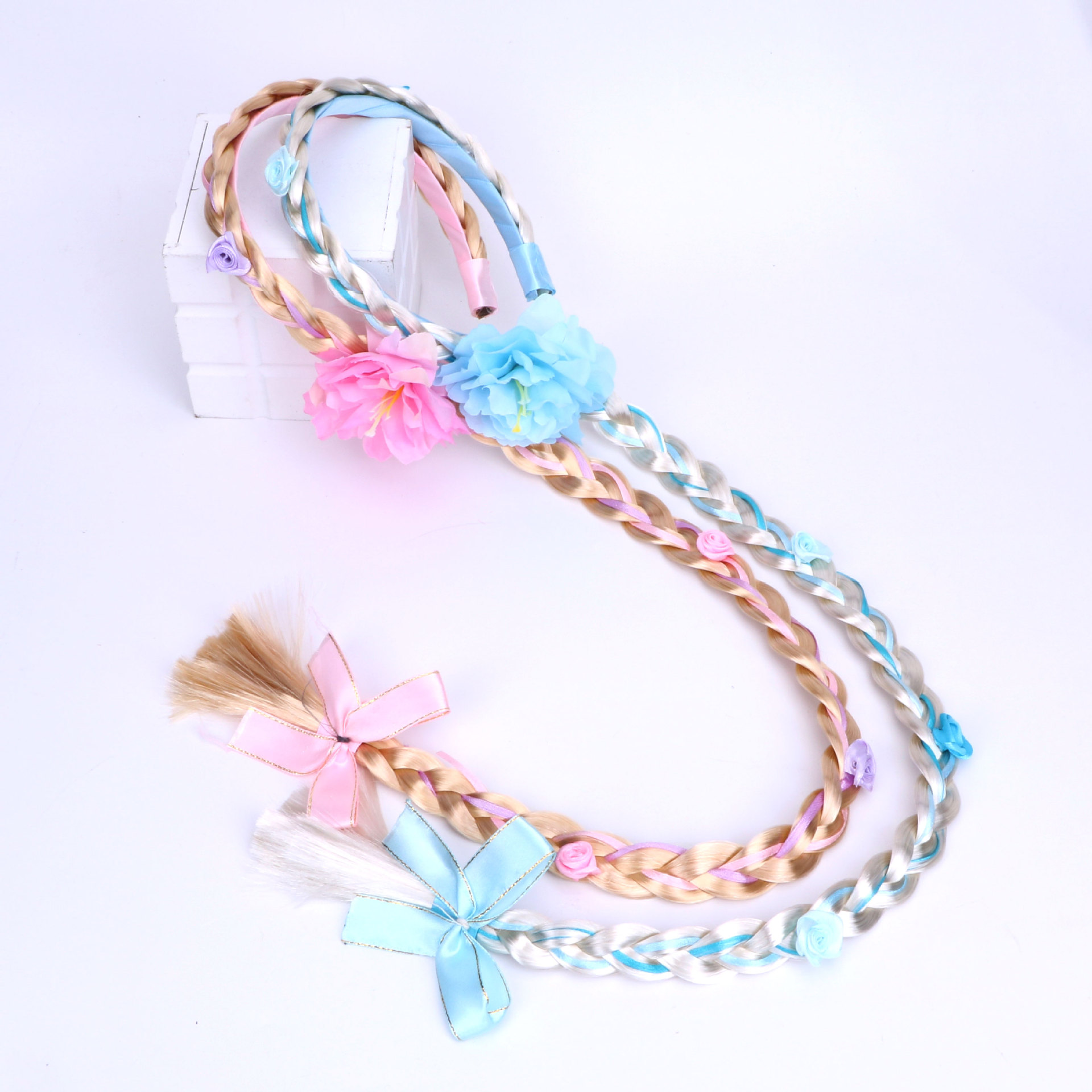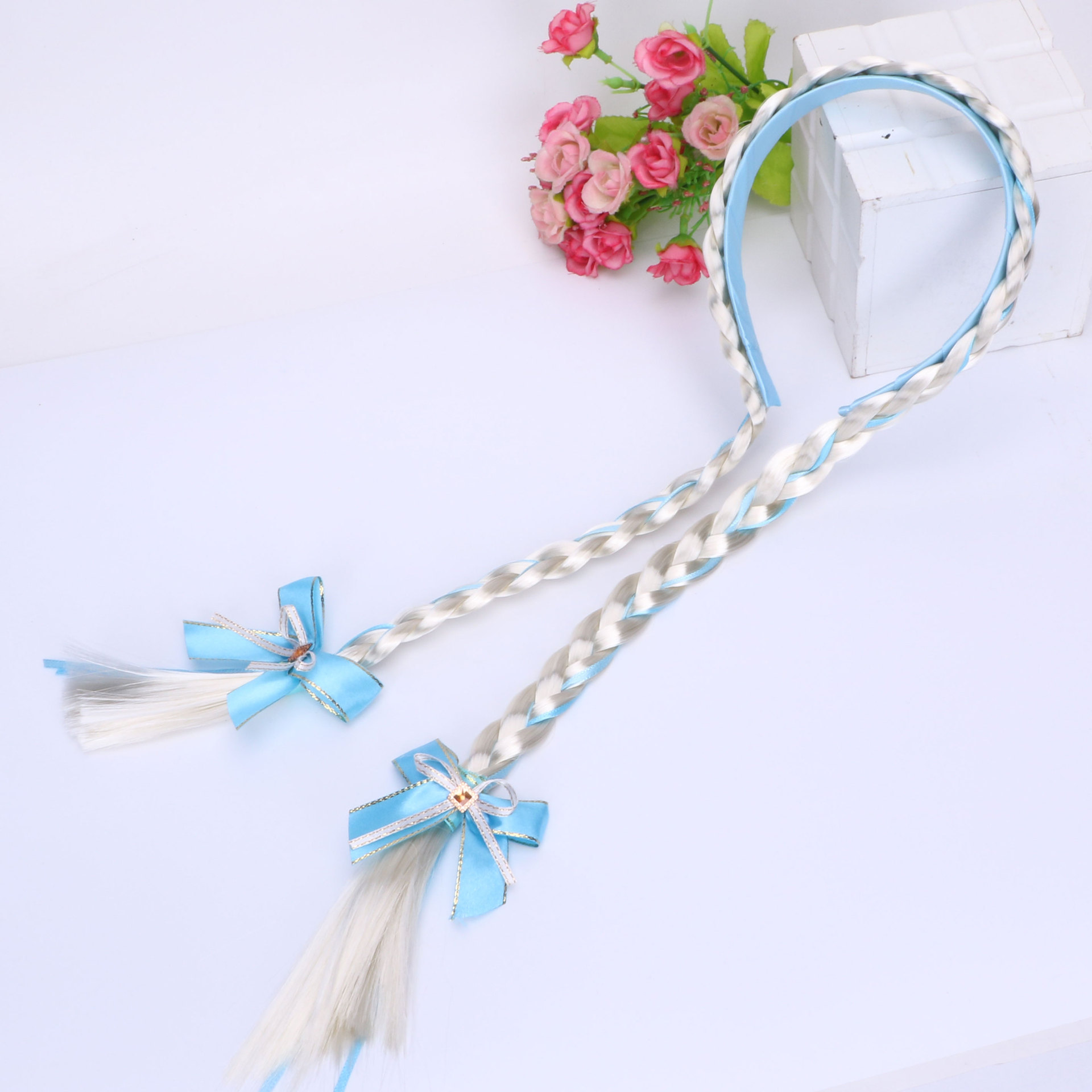 06 double thick braids with a blue bow