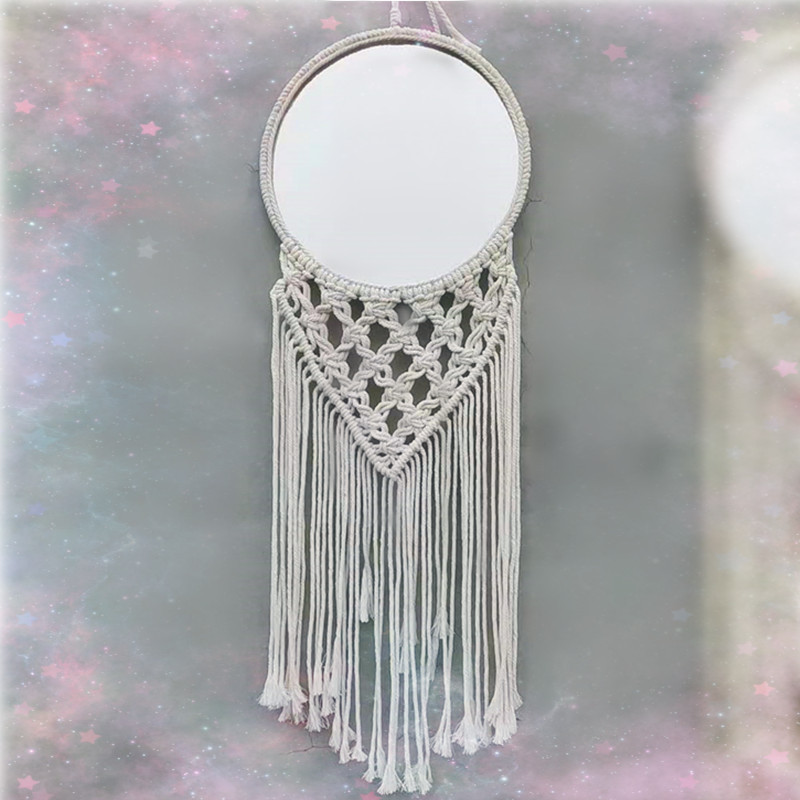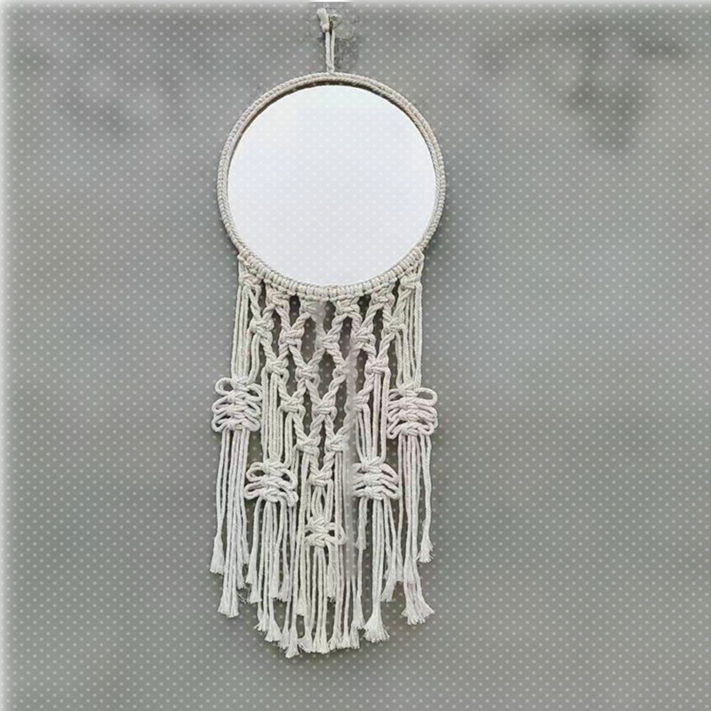 Hand-knitted cotton yarn tapestry, mirror tapestry, mirror decoration