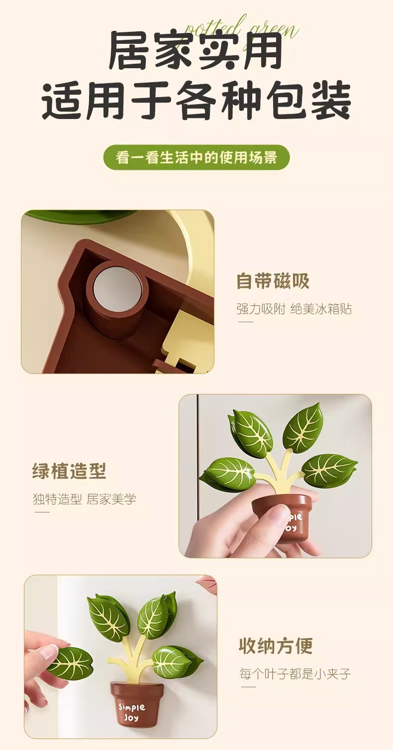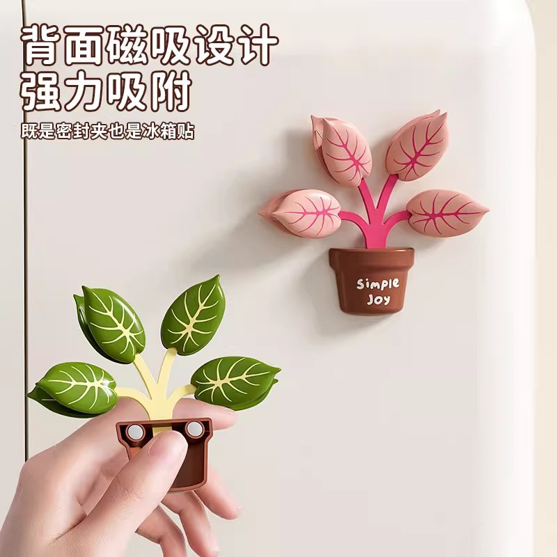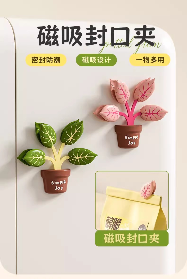 green plant pot magnetic sealing clip (green)