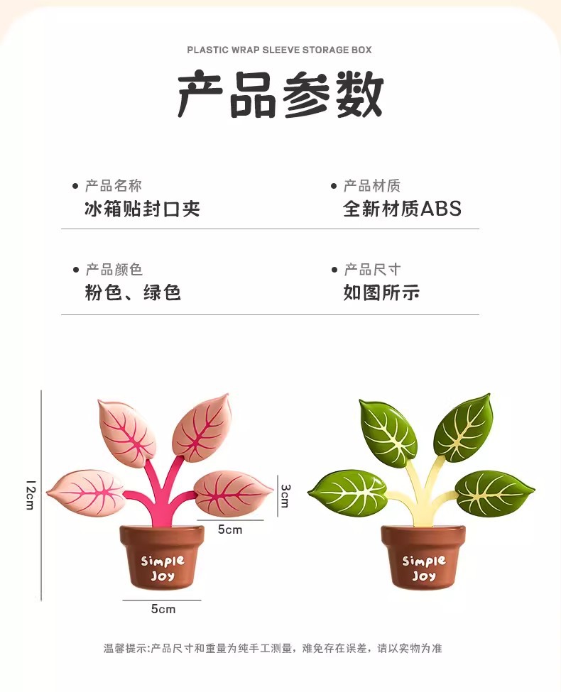 green plant pot magnetic sealing clip (pink)