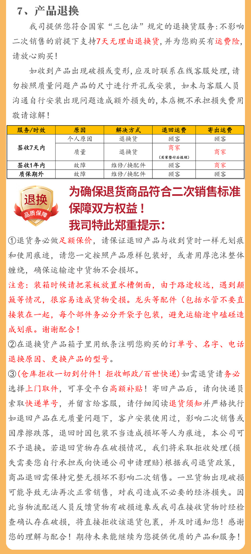 hole size: contact customer service for details