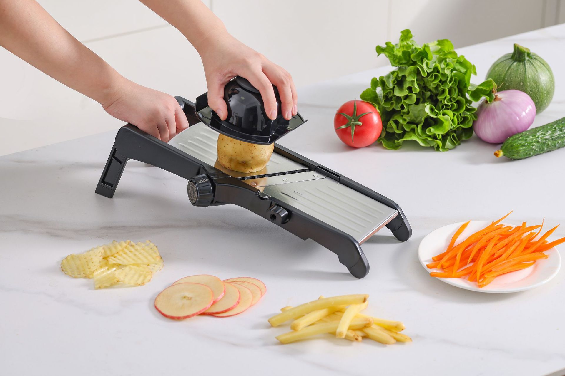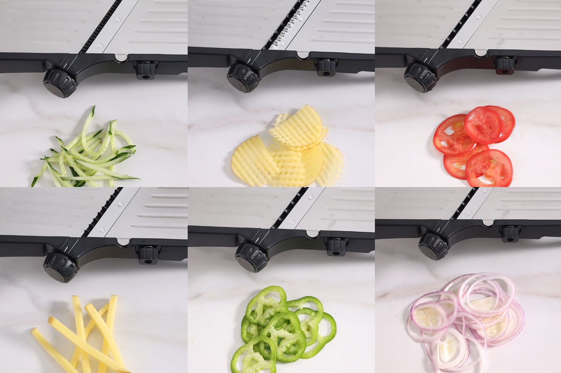 【Function】①Slicing ②Shredding ③Cutting potato strips