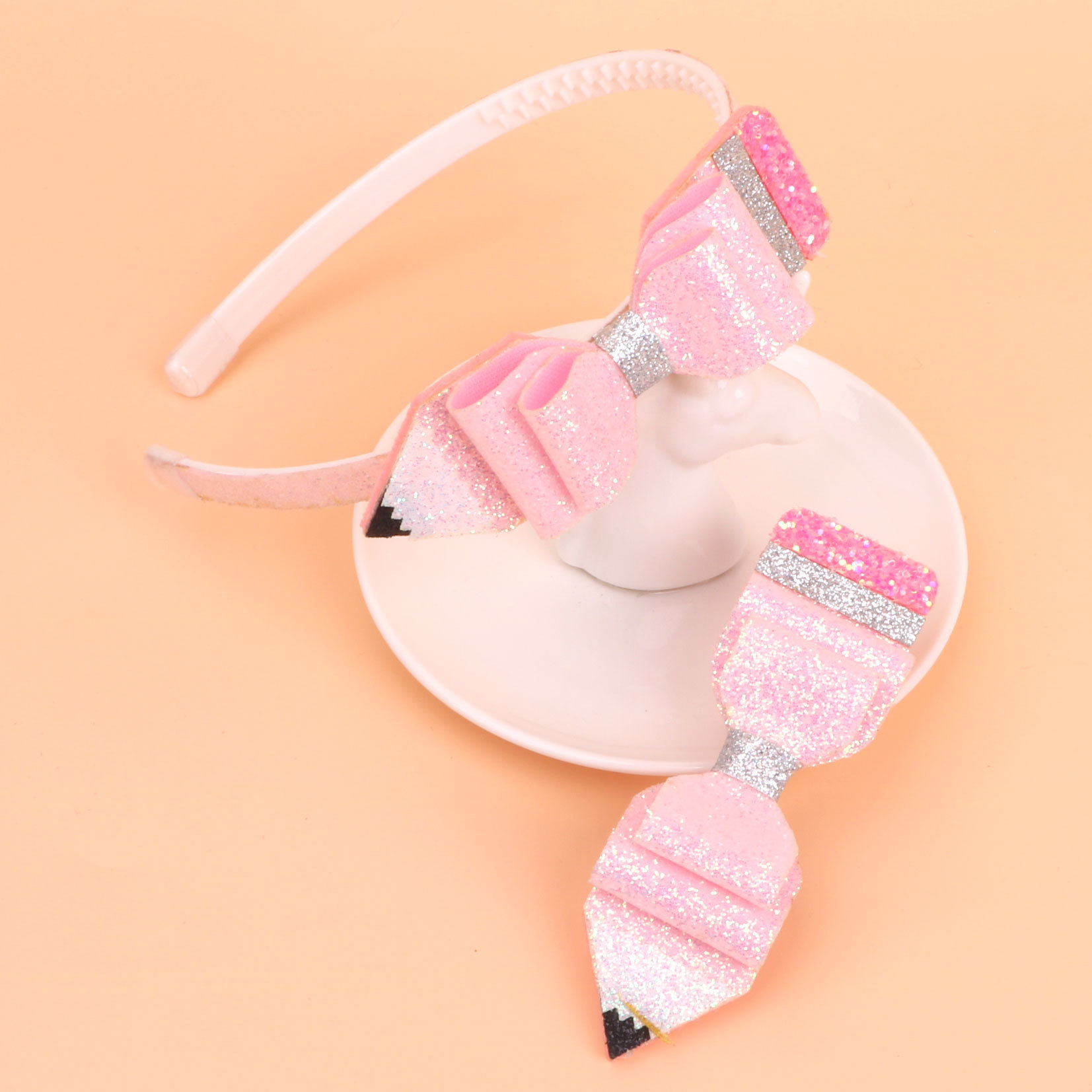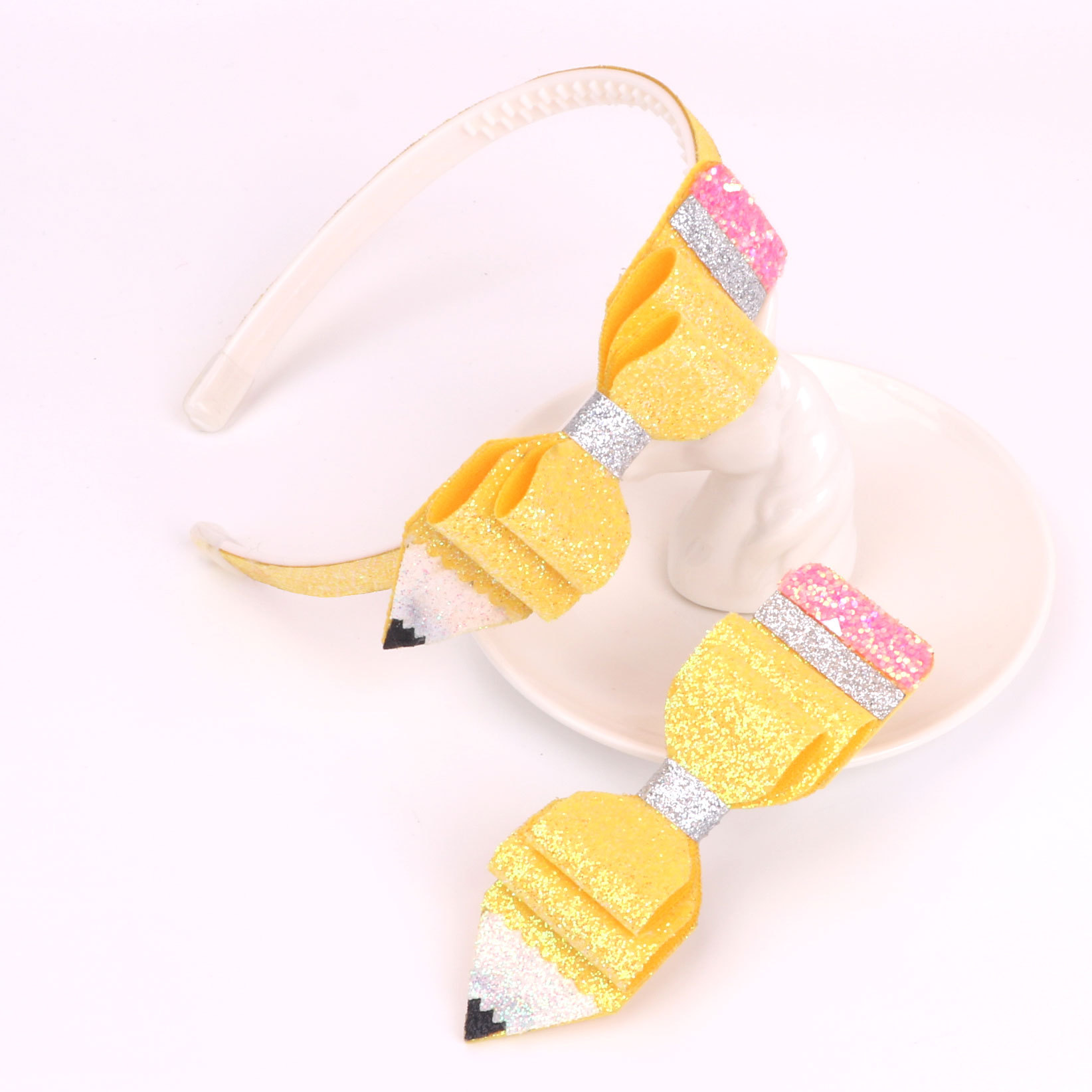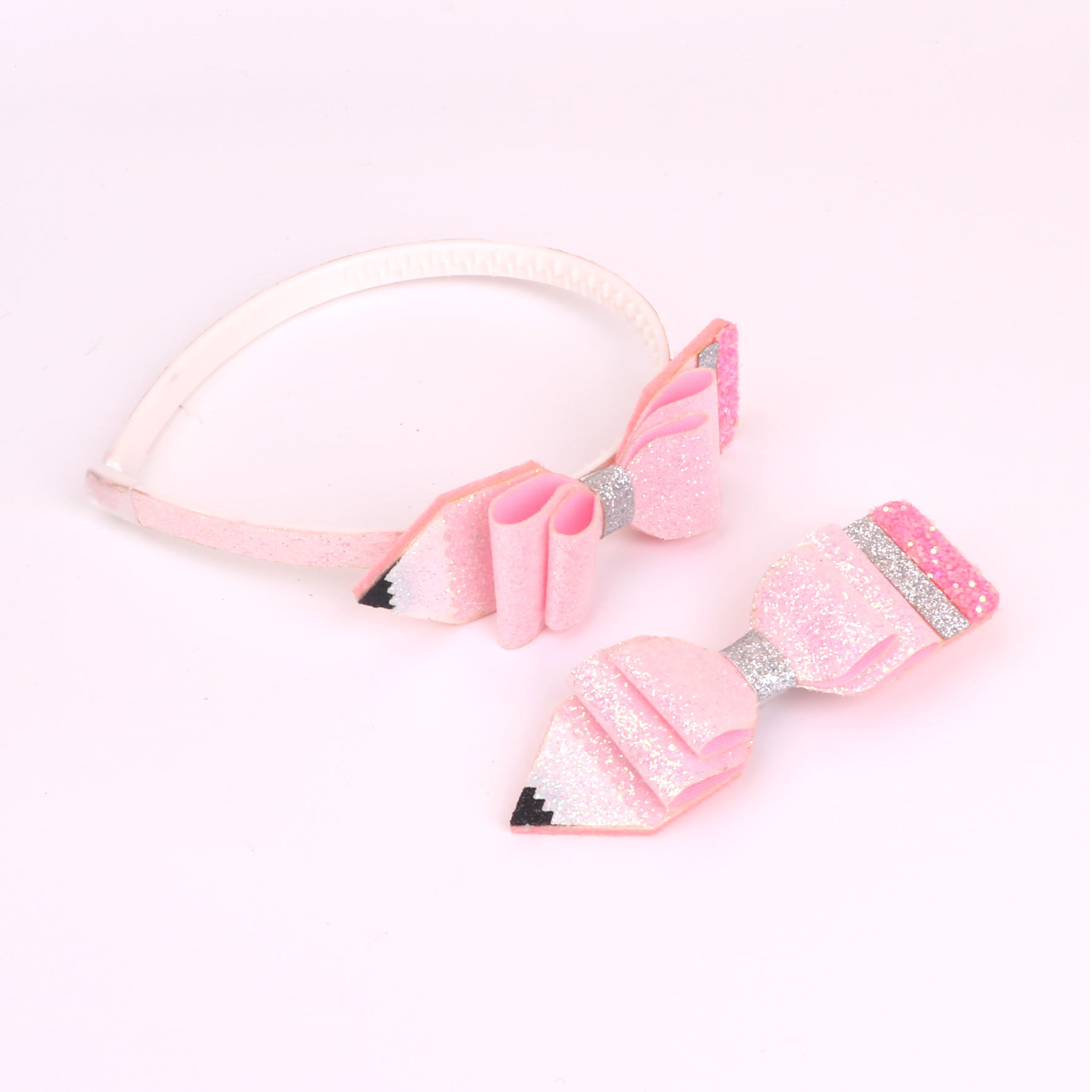 new children's great glitter powder cloth back-to-school season pencil bow hairband head clip duckbill clip side clip hair accessories