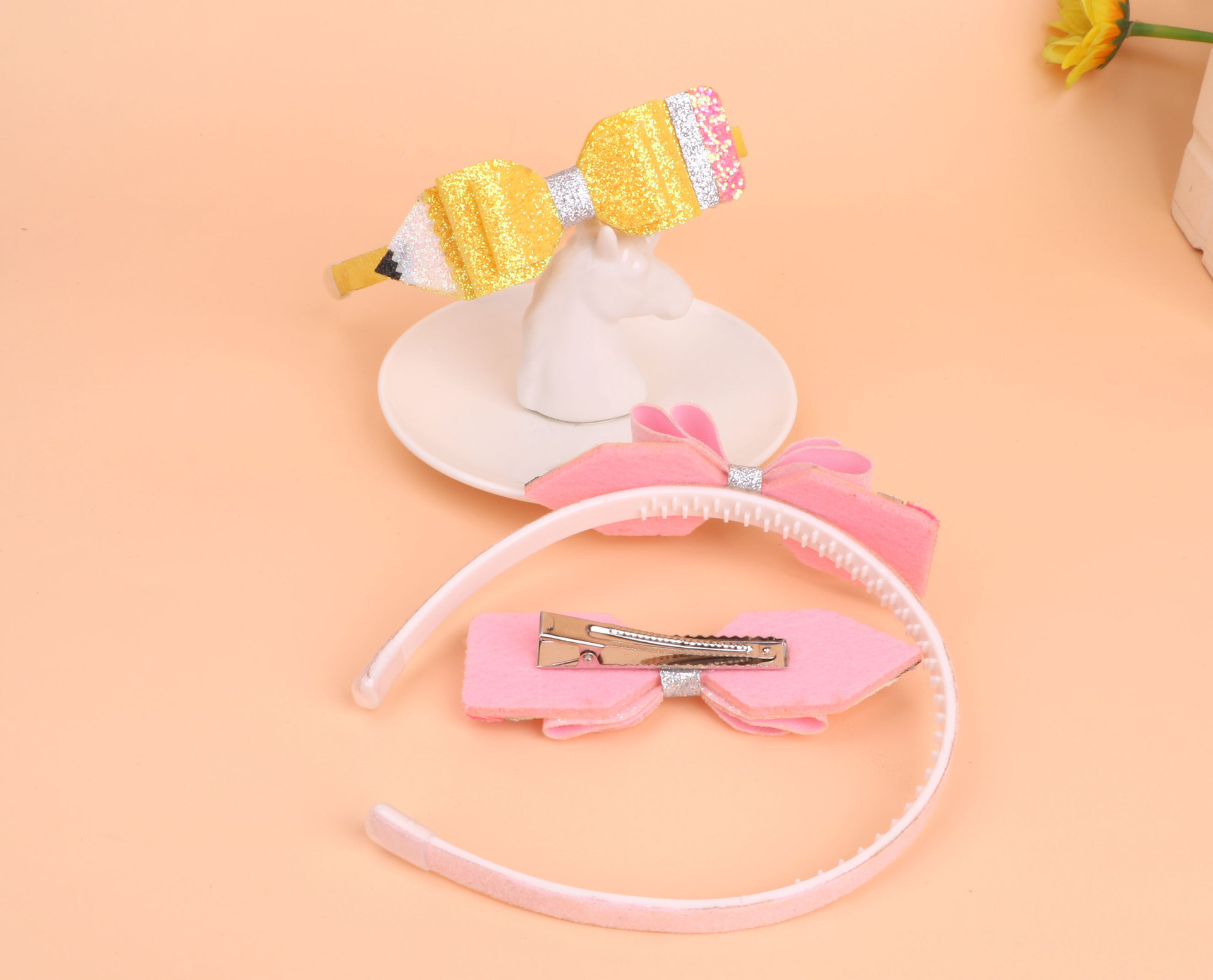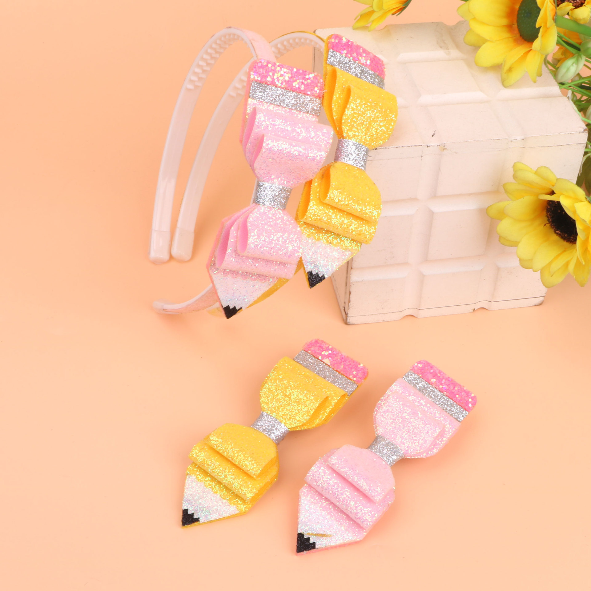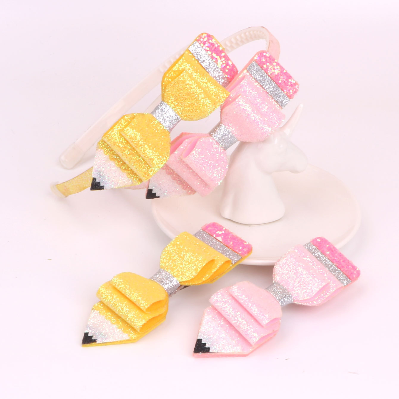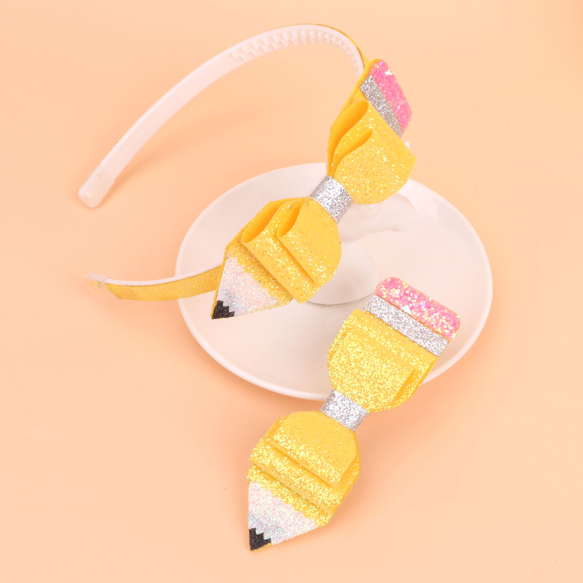 new children's great glitter powder cloth back-to-school season pencil bow hairband head clip duckbill clip side clip hair accessories