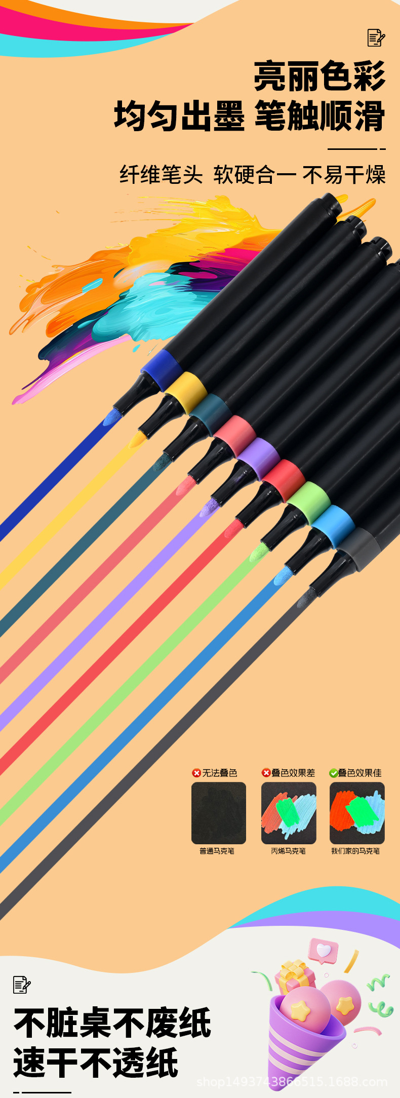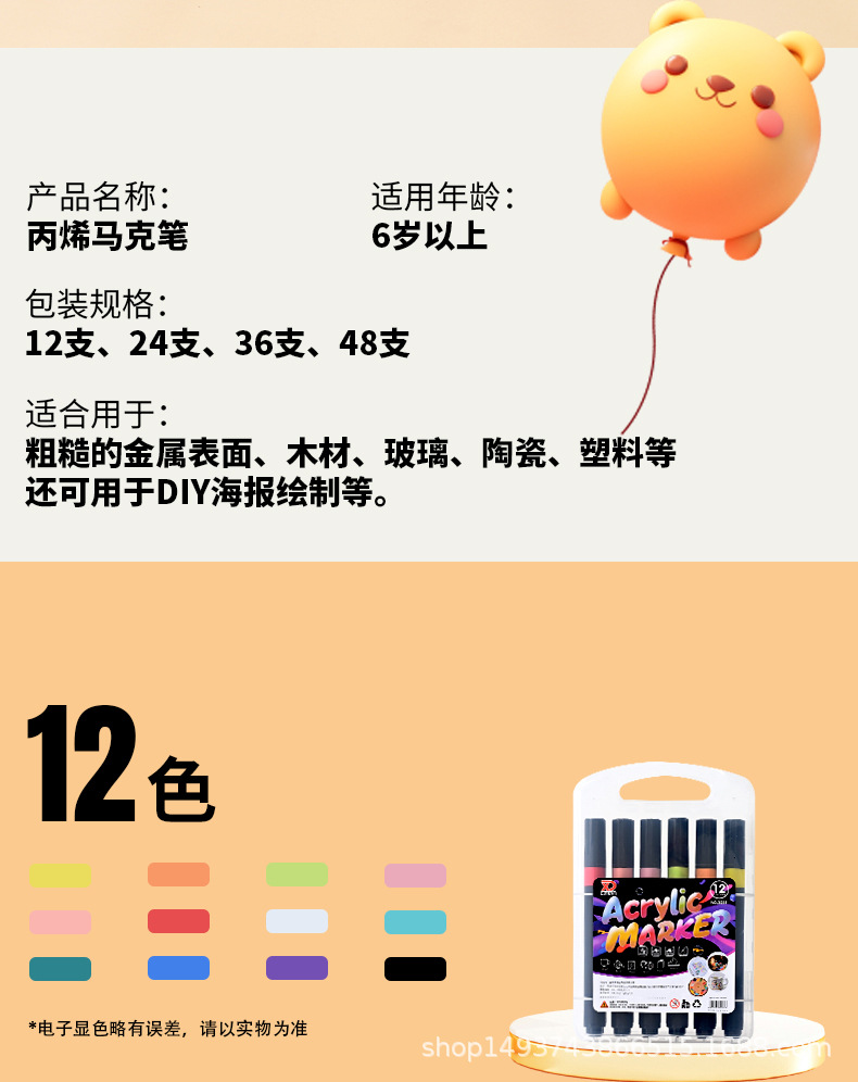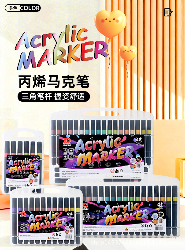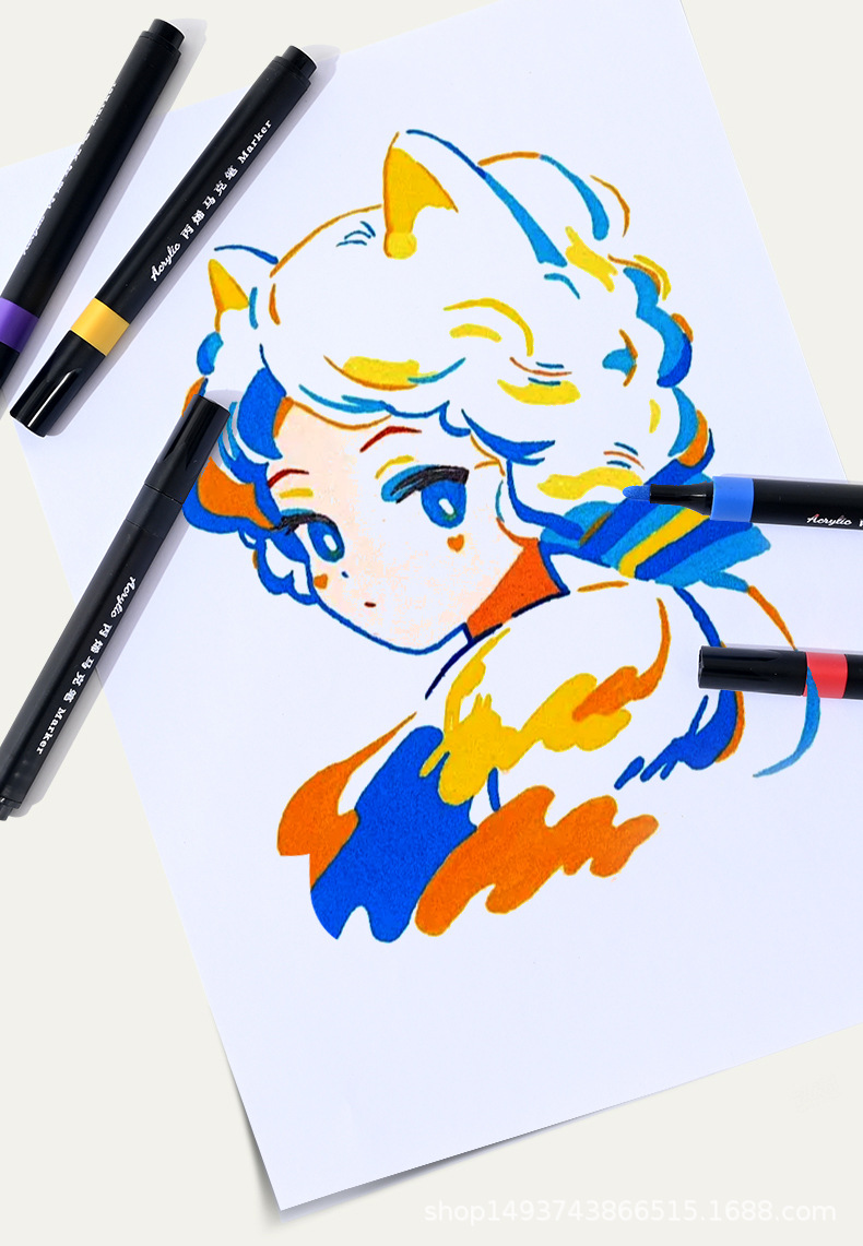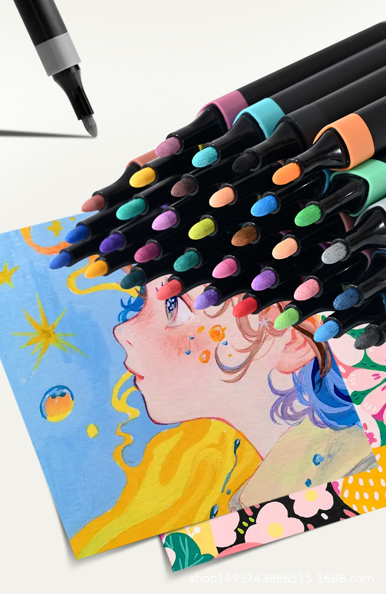 triangular barrel student art painting doodling water-based acrylic marker pen set black barrel watercolor pen