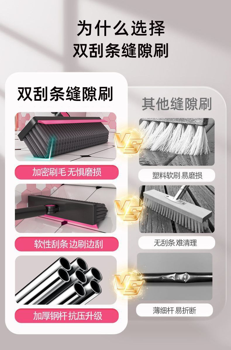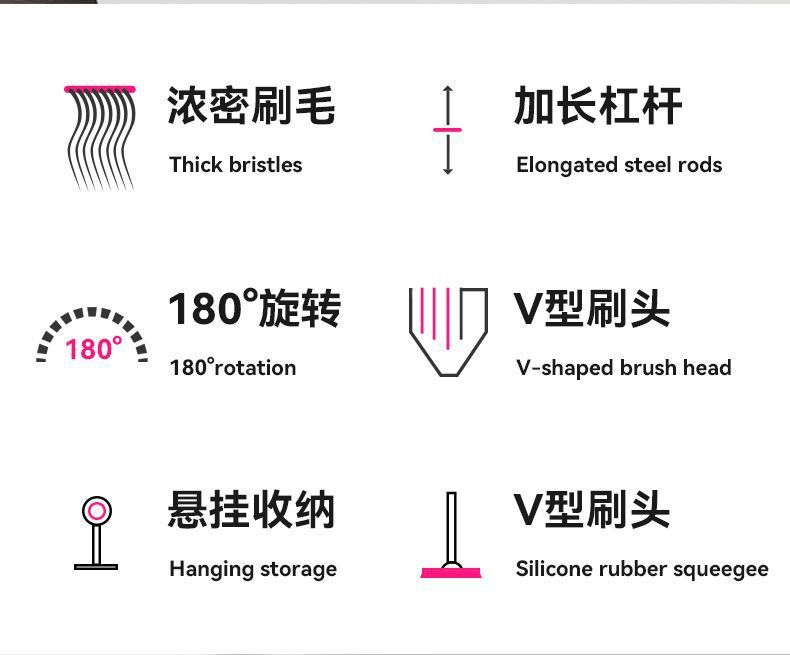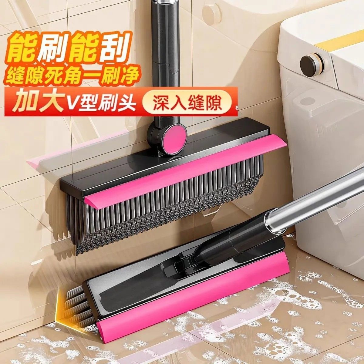 light luxury pink: upgraded 7-row bristles/one 4-in-1 v-shaped floor brush