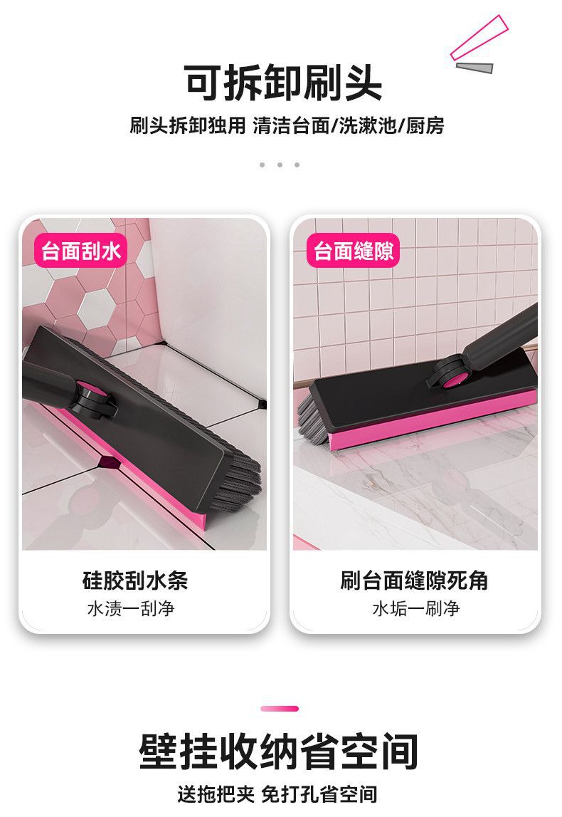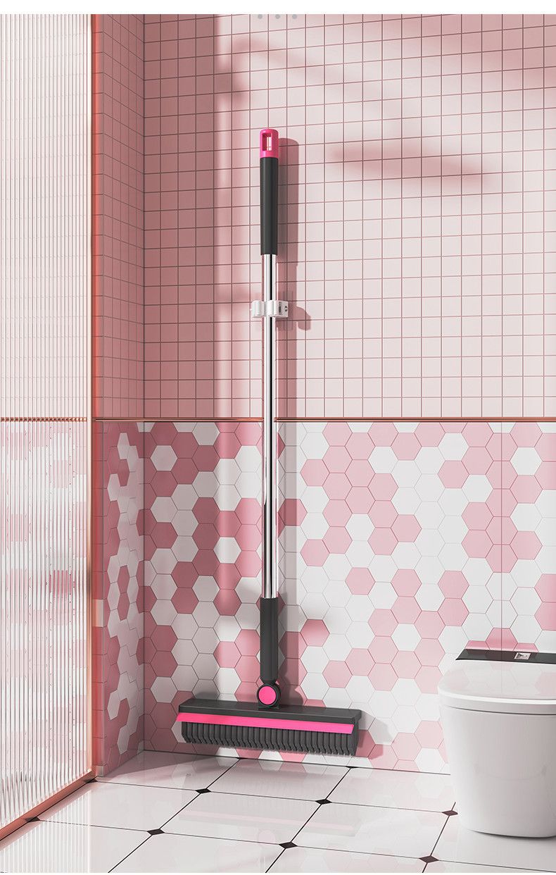 light luxury pink: one 3-in-1 v-shaped floor brush + mop rack