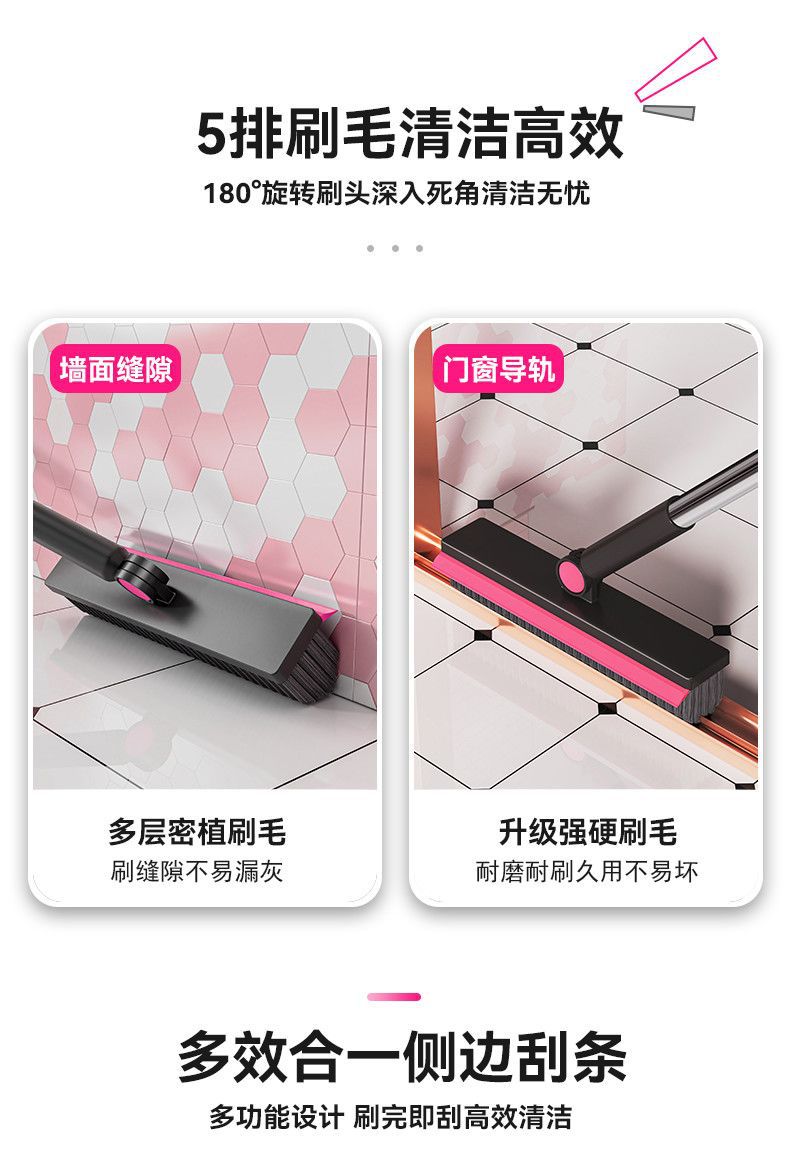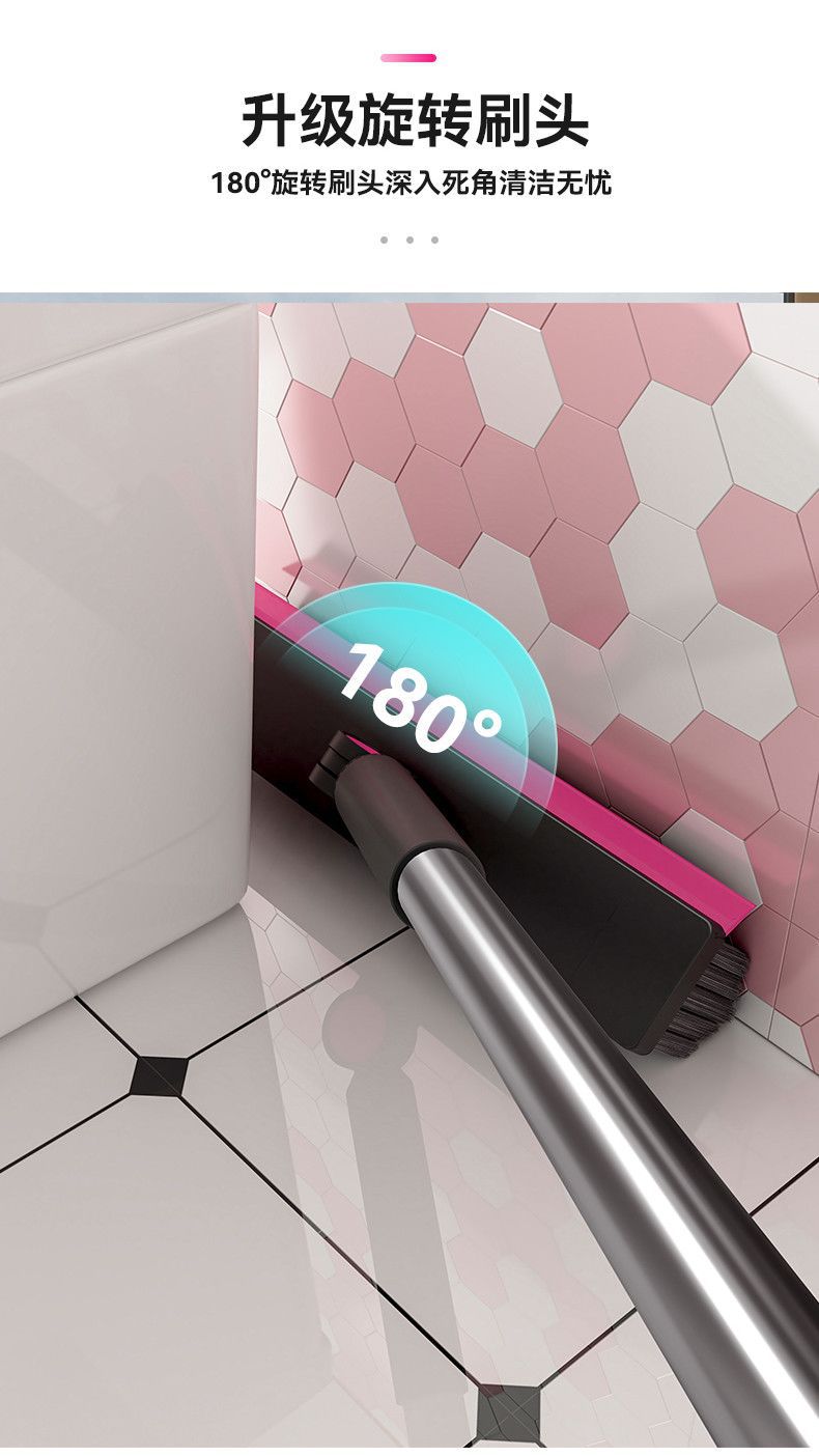 light luxury pink: upgraded 7-row bristles/four-in-one v-shaped floor brush 1 pc + mop rack