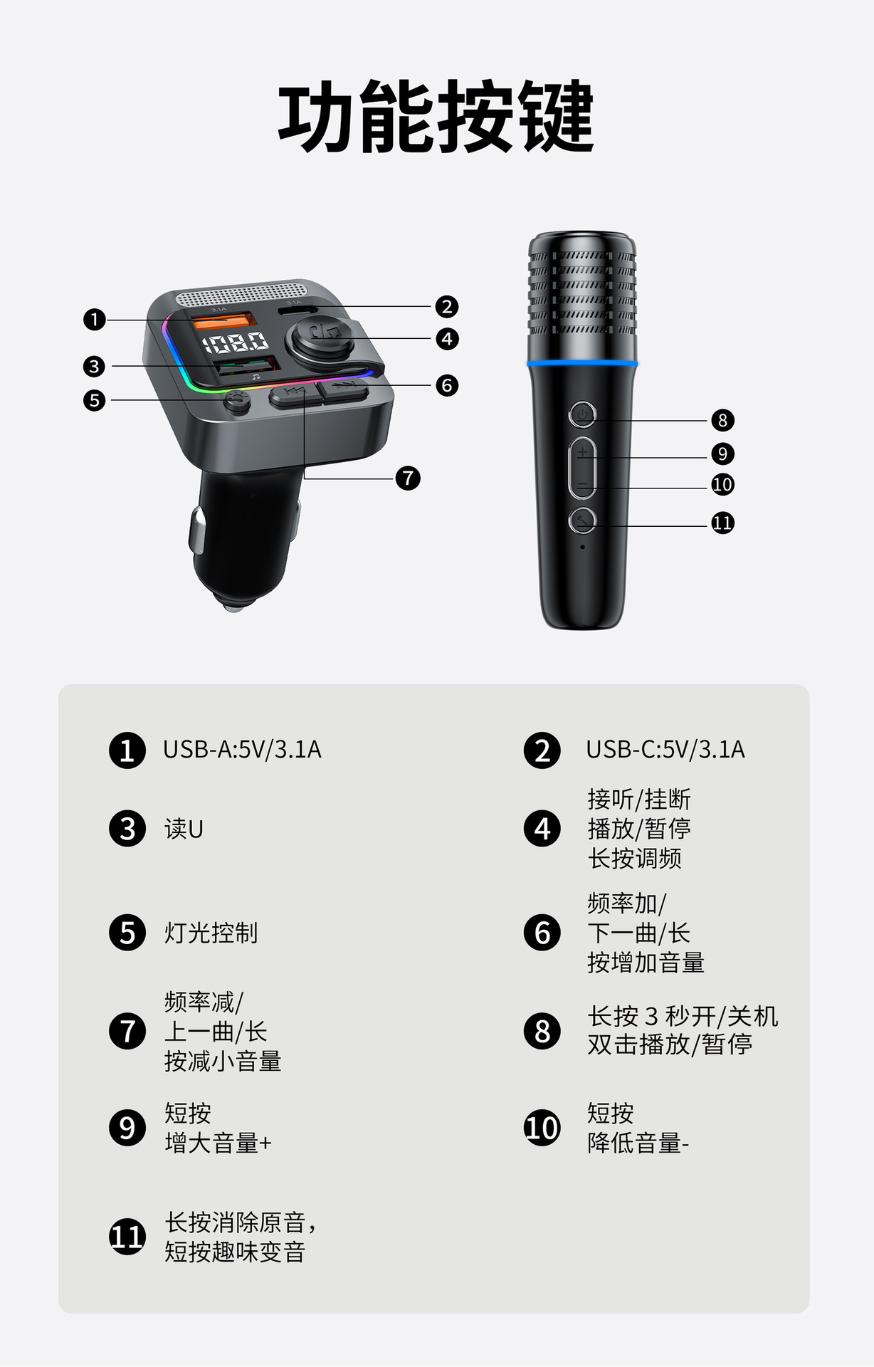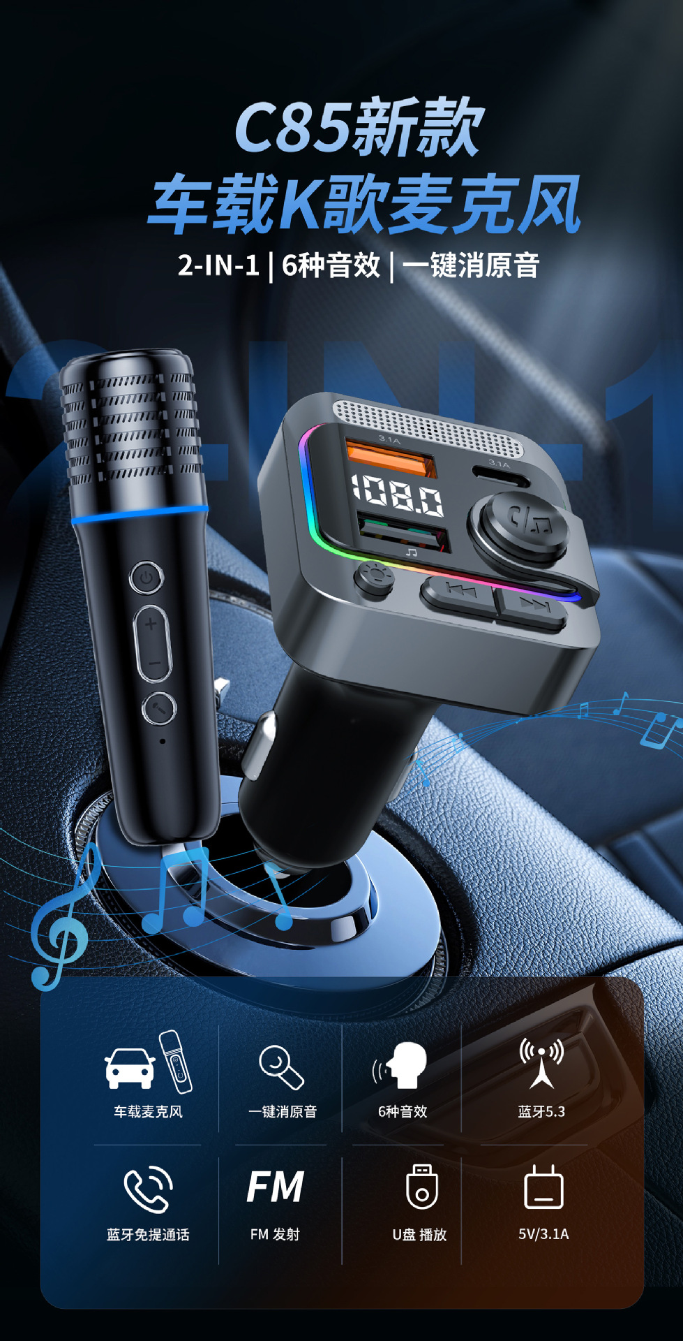 c85/car-mounted ktv microphone/usb+type-c-w19571