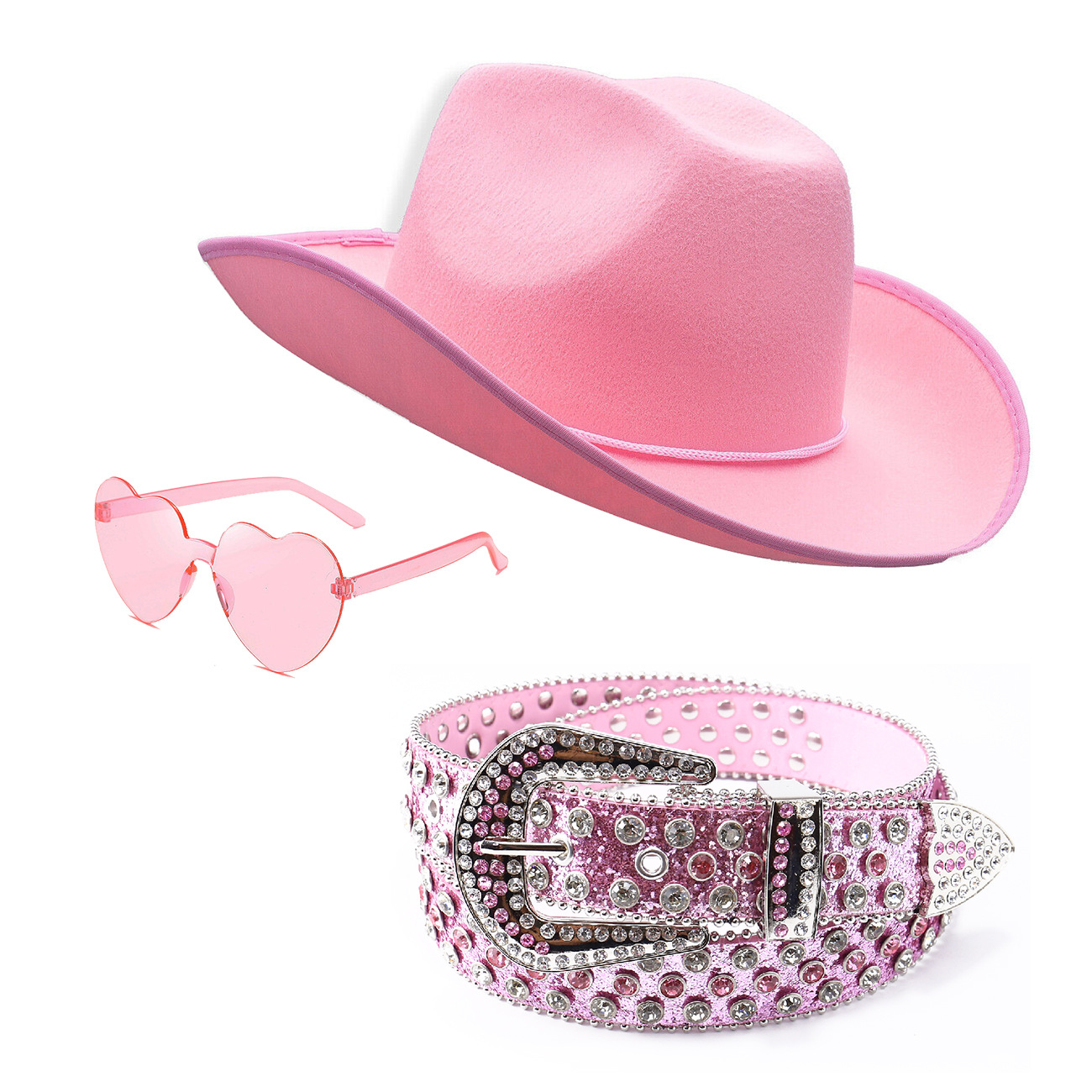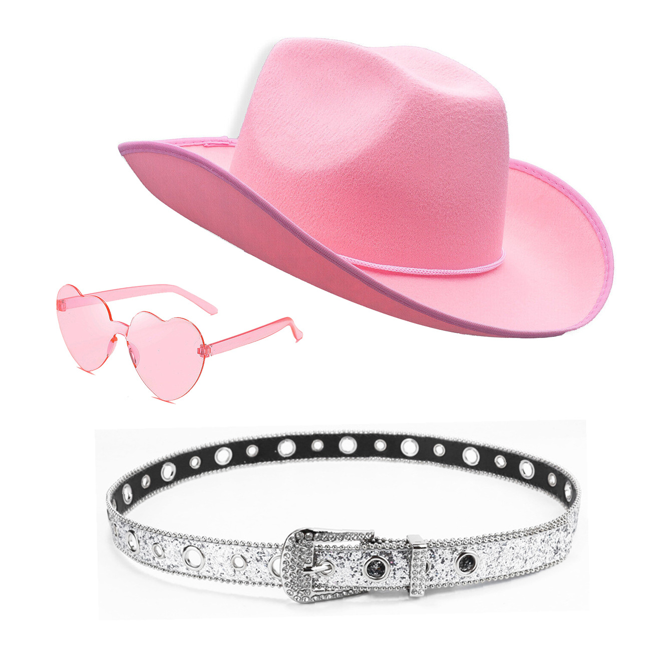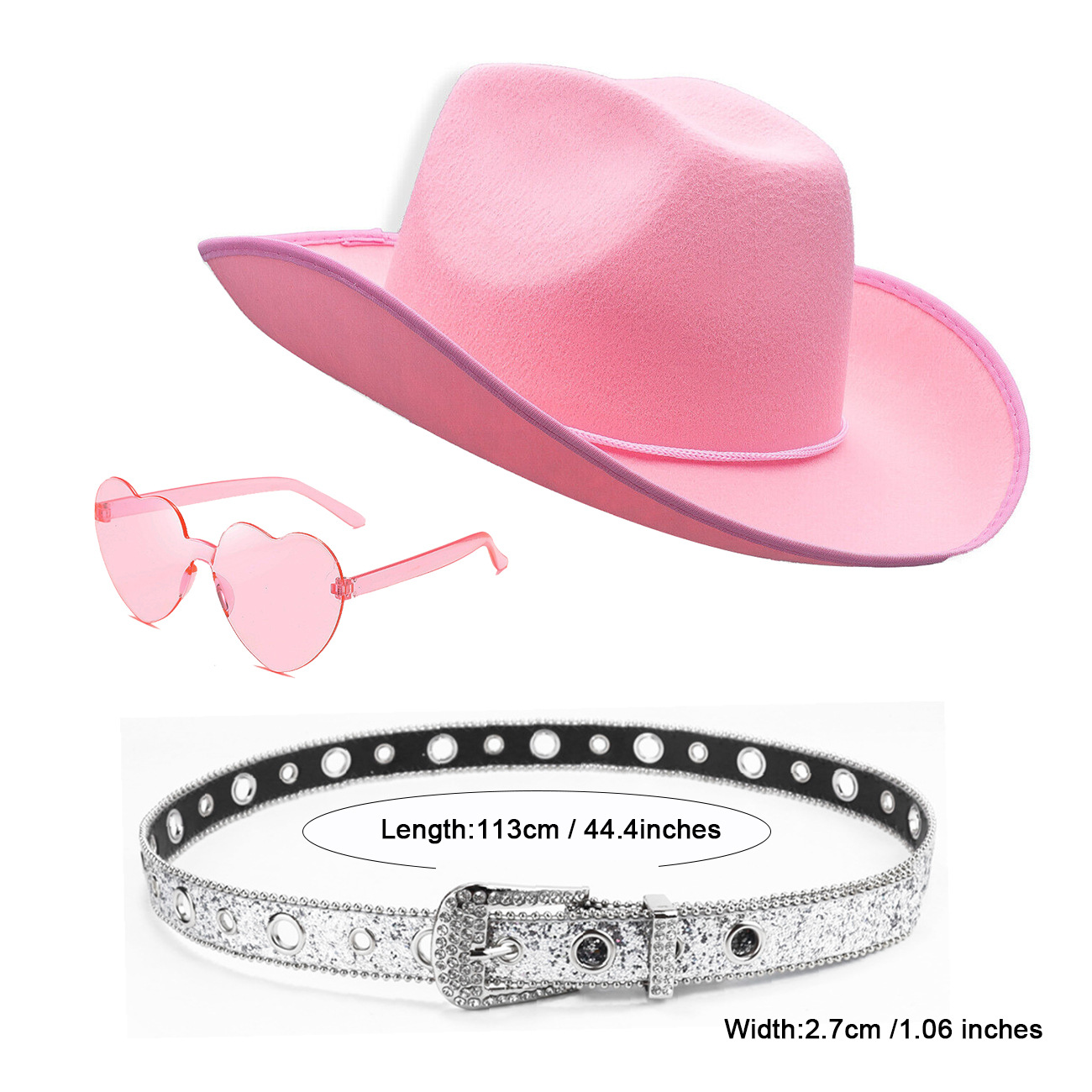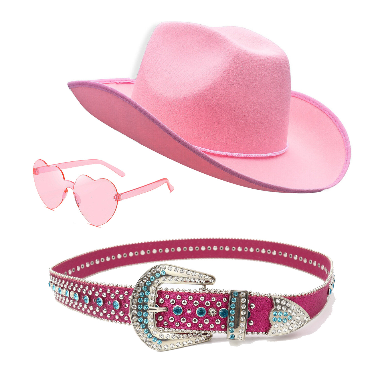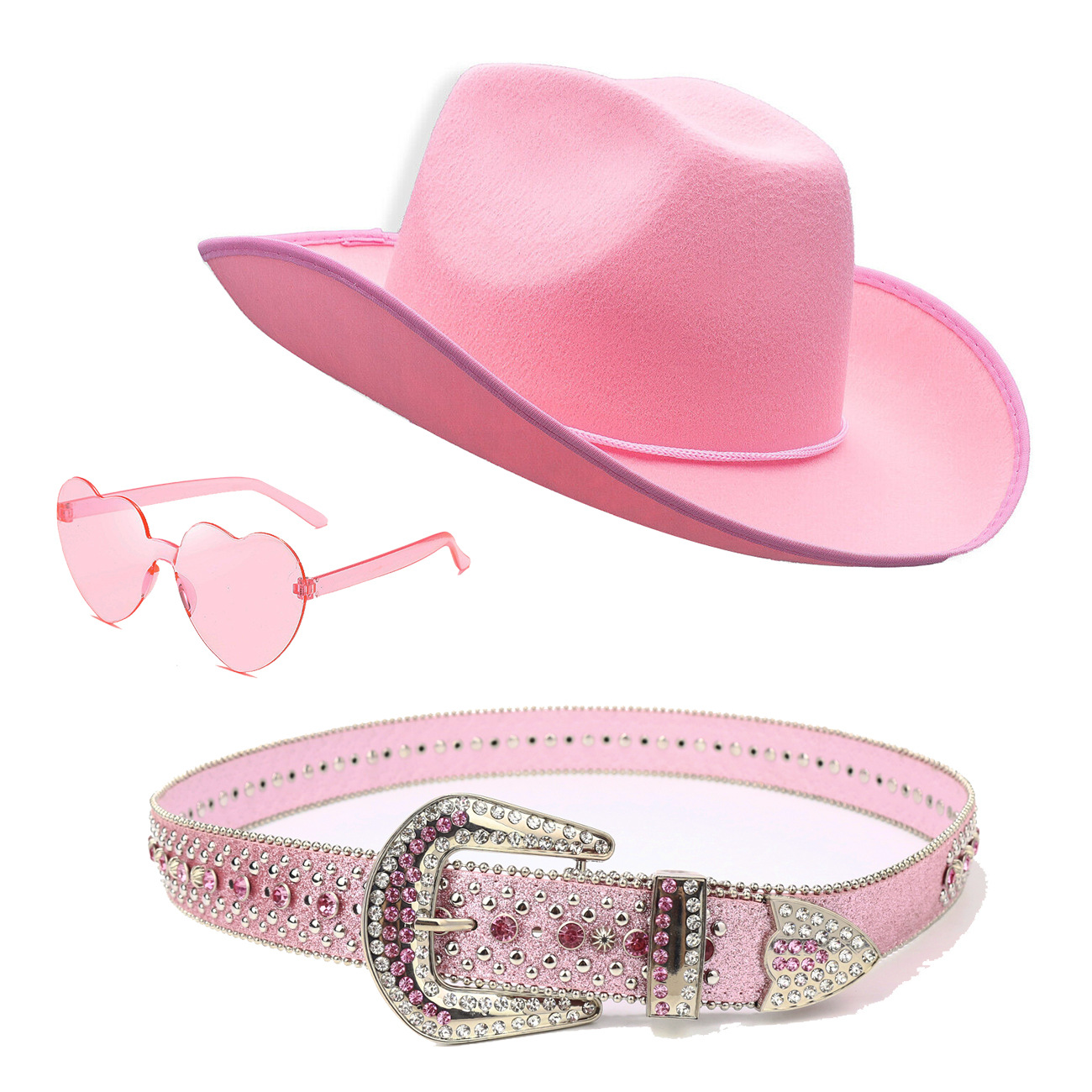 color: nzst003-1 (pink 3-piece set: cowboy hat