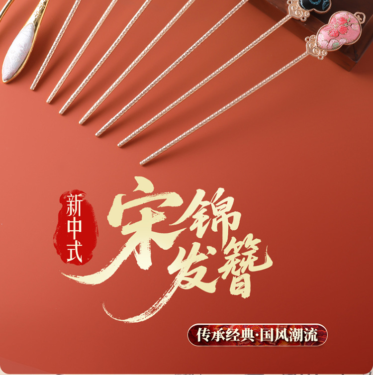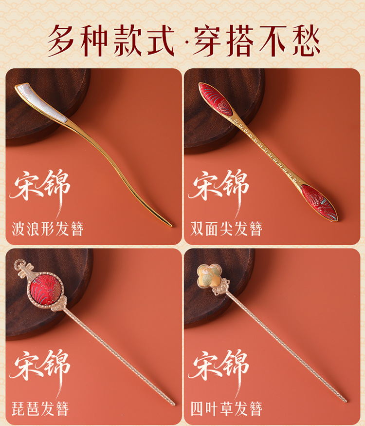 [pipa] double-sided song dynasty brocade alloy hairpin no. 2 one piece
