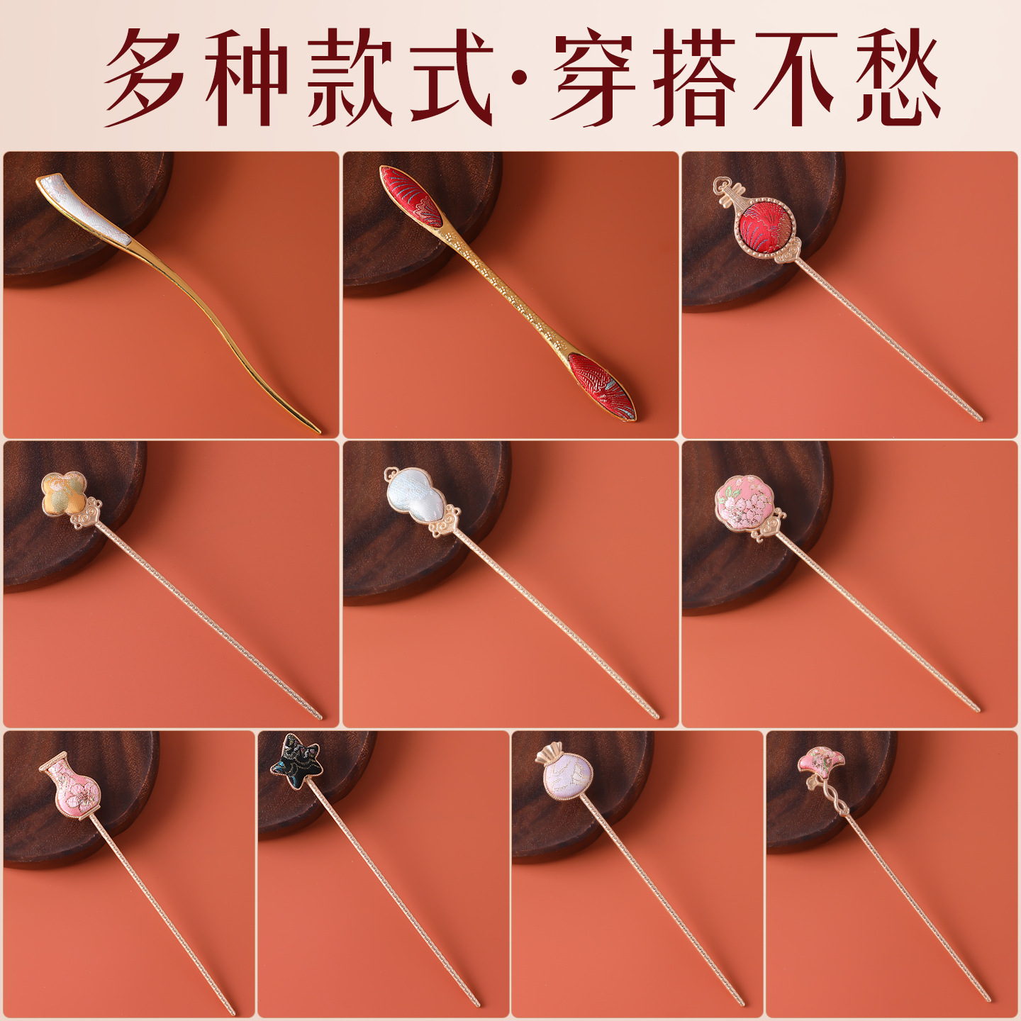 【gourd】double-sided song dynasty brocade alloy hairpin no. 5 one piece