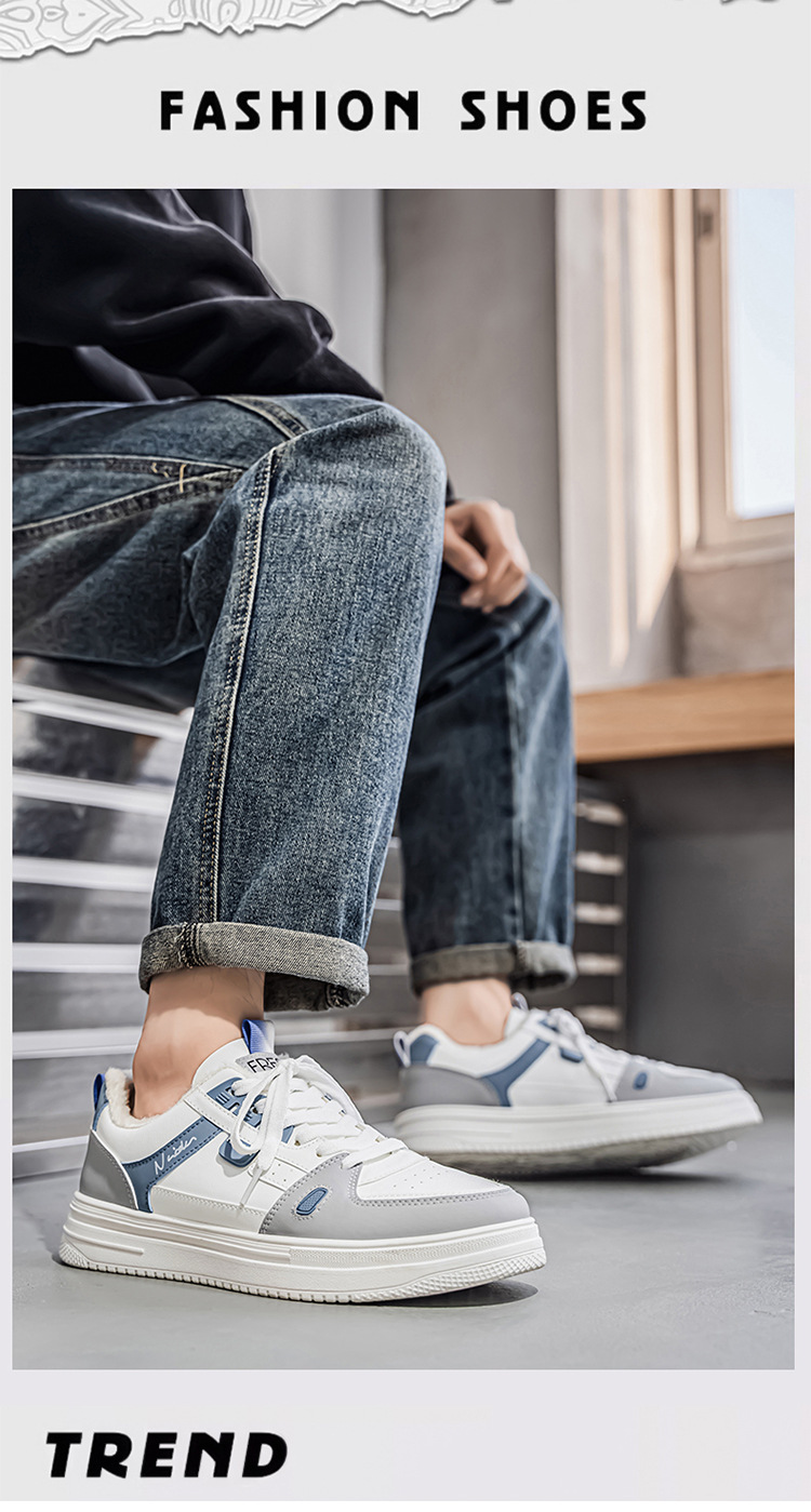 winter men's shoes new velvet white shoes men's trendy all-matching thickened insulated cotton-padded shoes sneakers casual sneakers