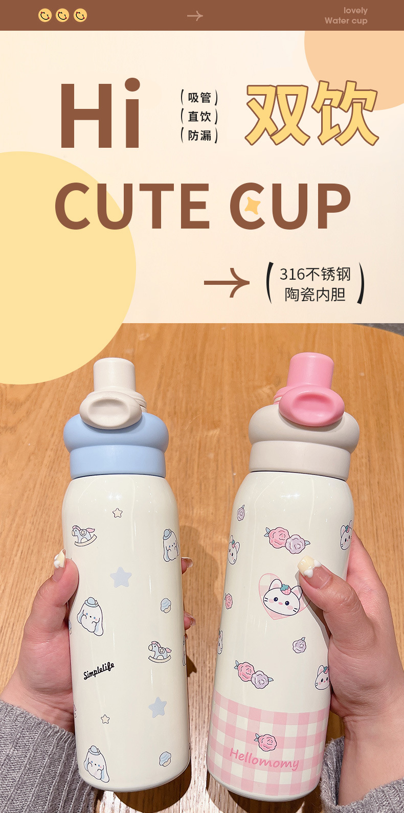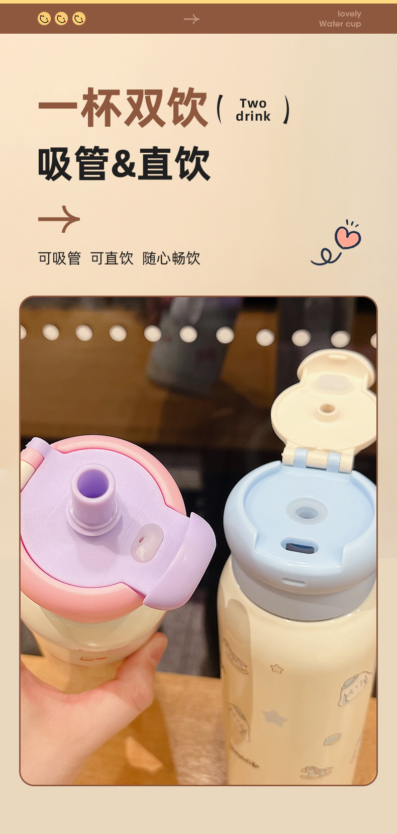 style: with rope handle, large capacity, bullet cup, with straw, with lock,