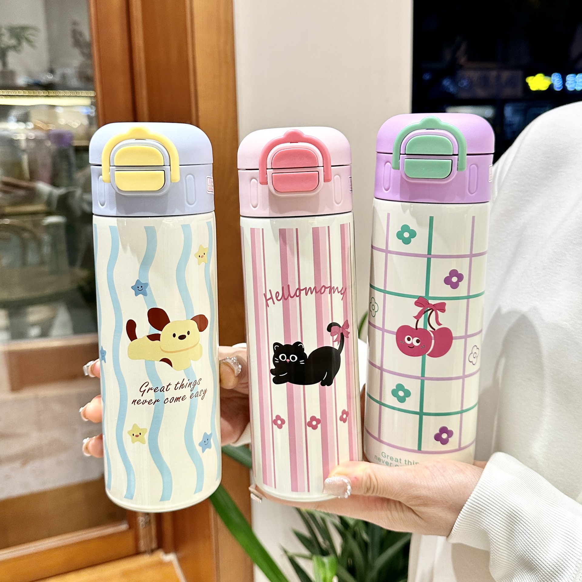 style: with rope handle, large capacity, bullet cup, with straw, with lock