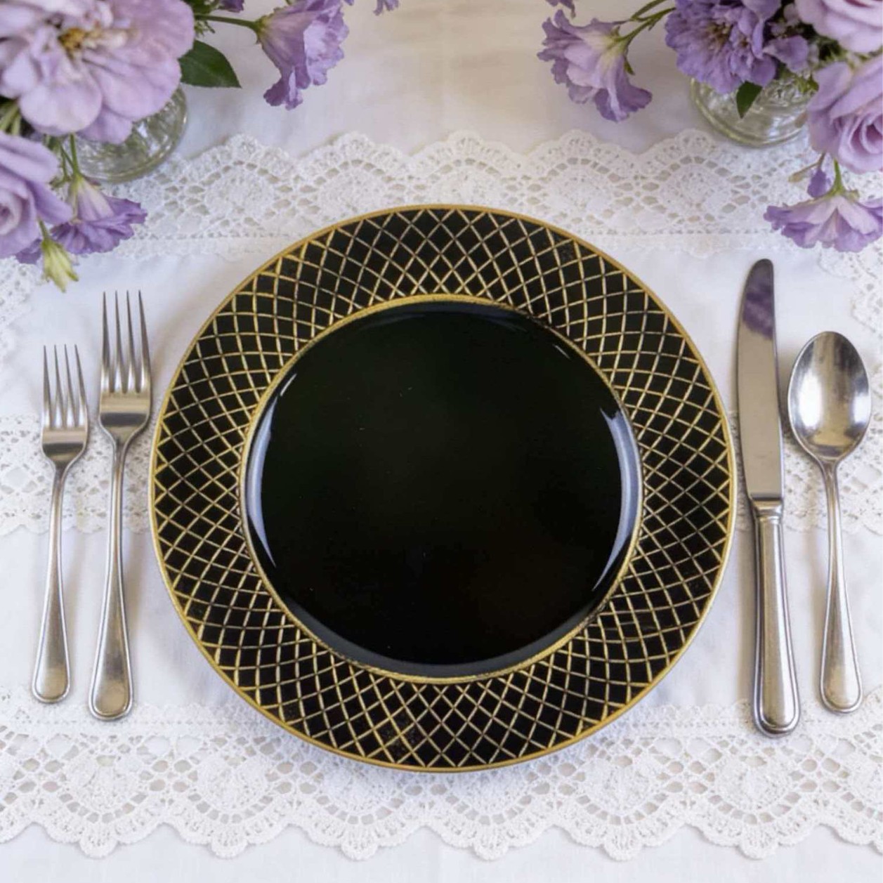 The size, shape, and color of the plates can be specified or provided by the guests.