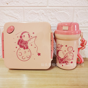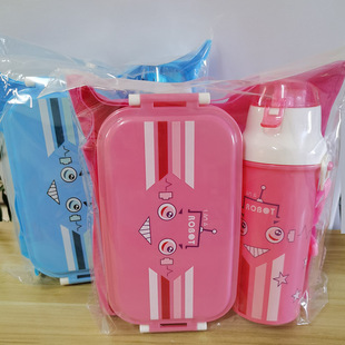Product Name: New Style Children's Cartoon Lunch Box with 500ml Straw Water Bottle, Plastic Lunch Box with Water Cup Set Wholesales