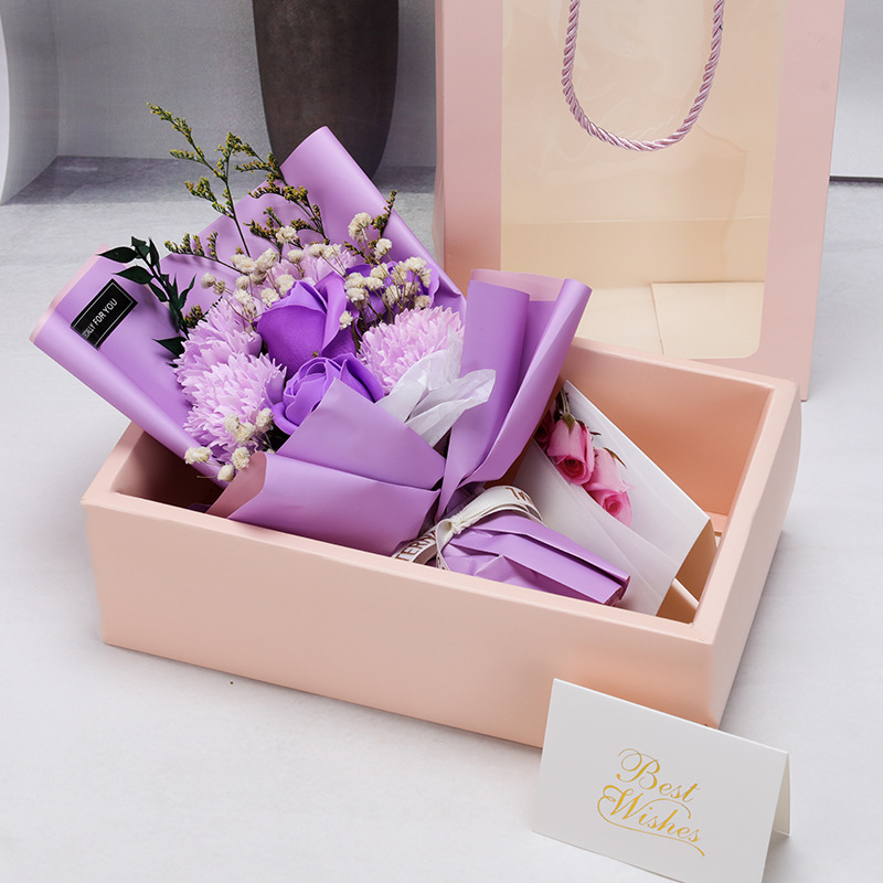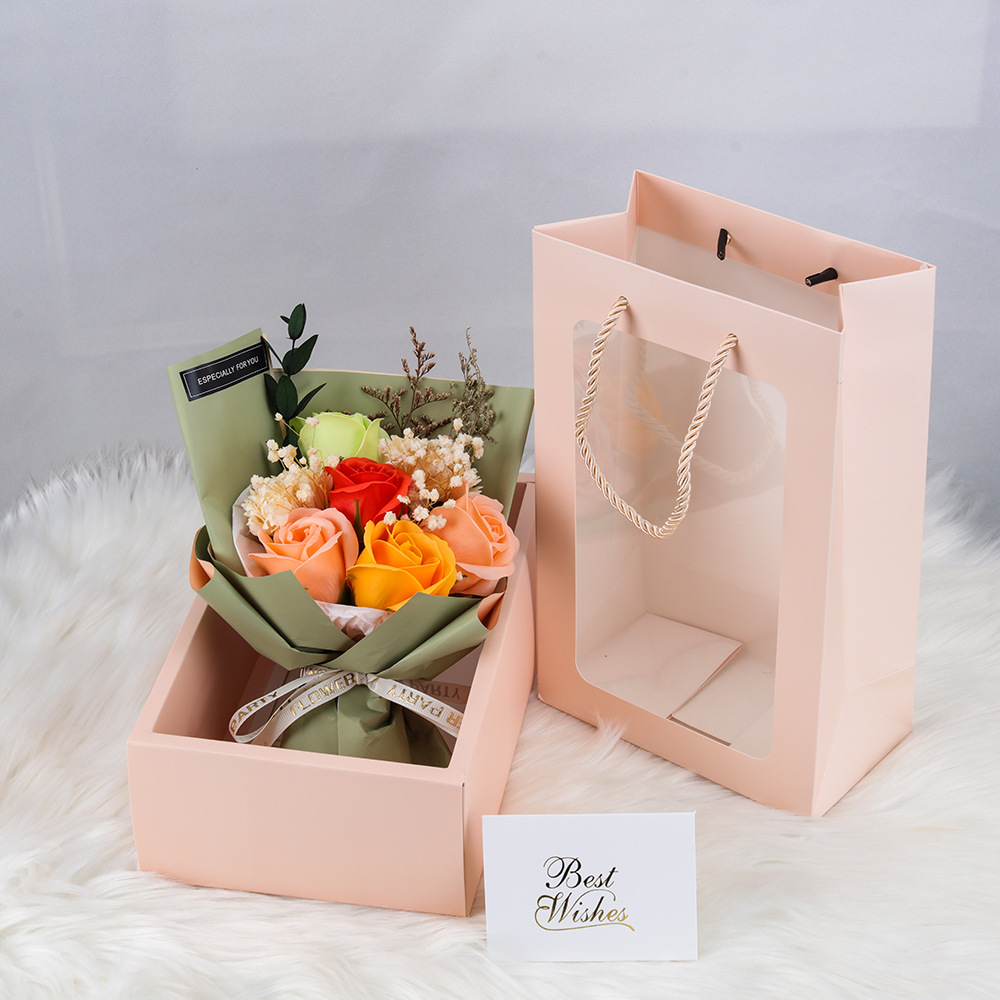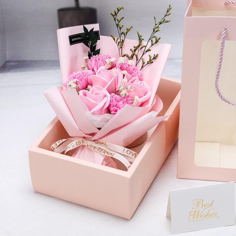 Carnation and rose are the materials for soap flowers, and baby's breath and love grass are everlasting dried flowers. They can be stored at normal temperature and ventilation for three years. The accessories are natural plants that may change due to seasonal reasons, which is a normal phenomenon.