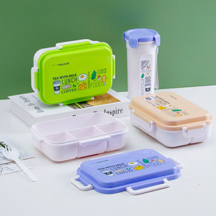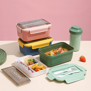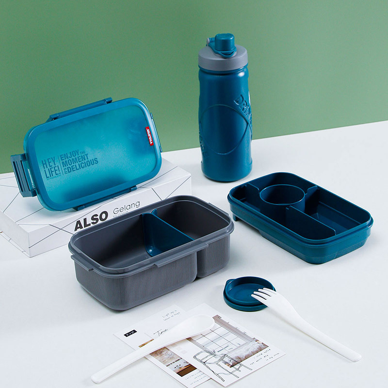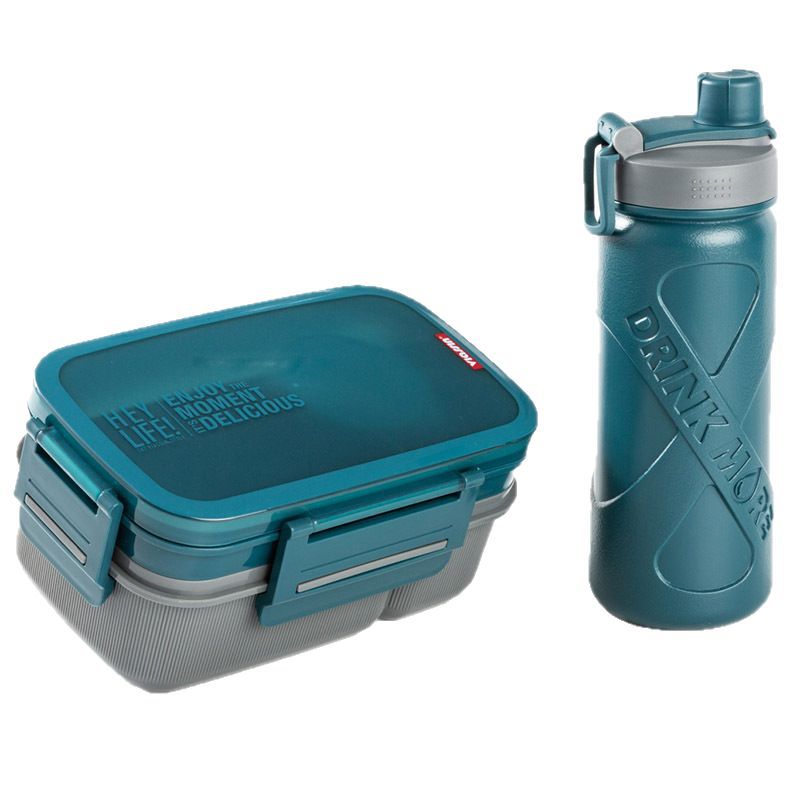 Product Name: Rectangular Sealed Double-Layer 3-Compartment Lunch Box with Sports Water Bottle Set New Plastic Student Lunch Box with Water Bottle