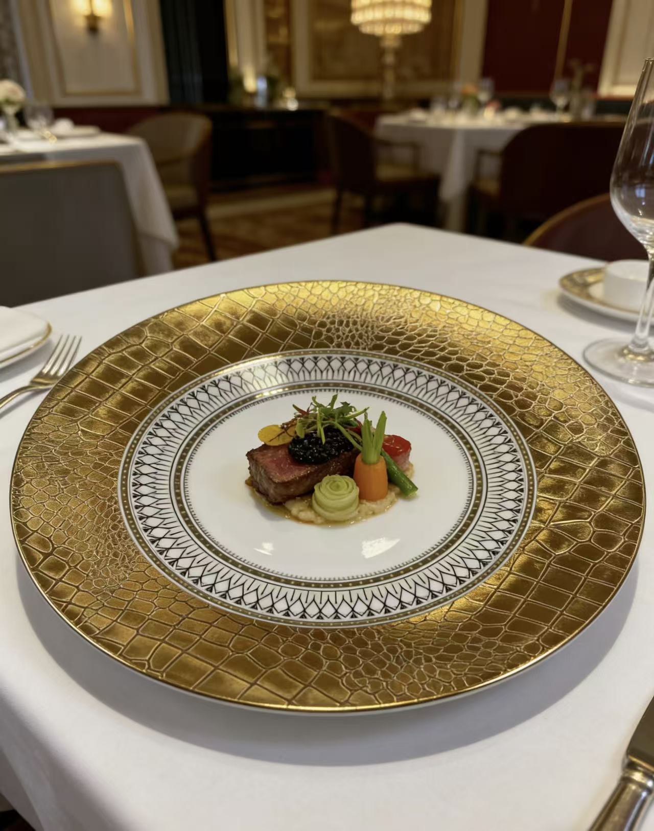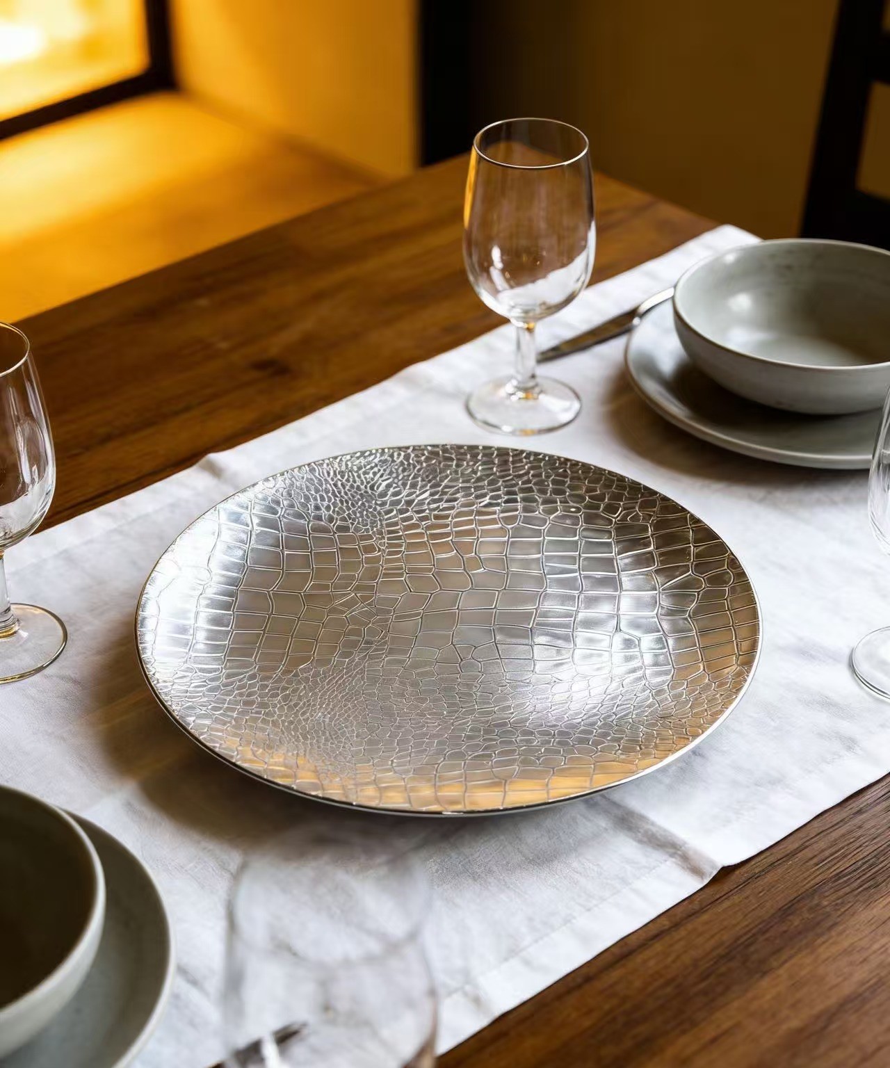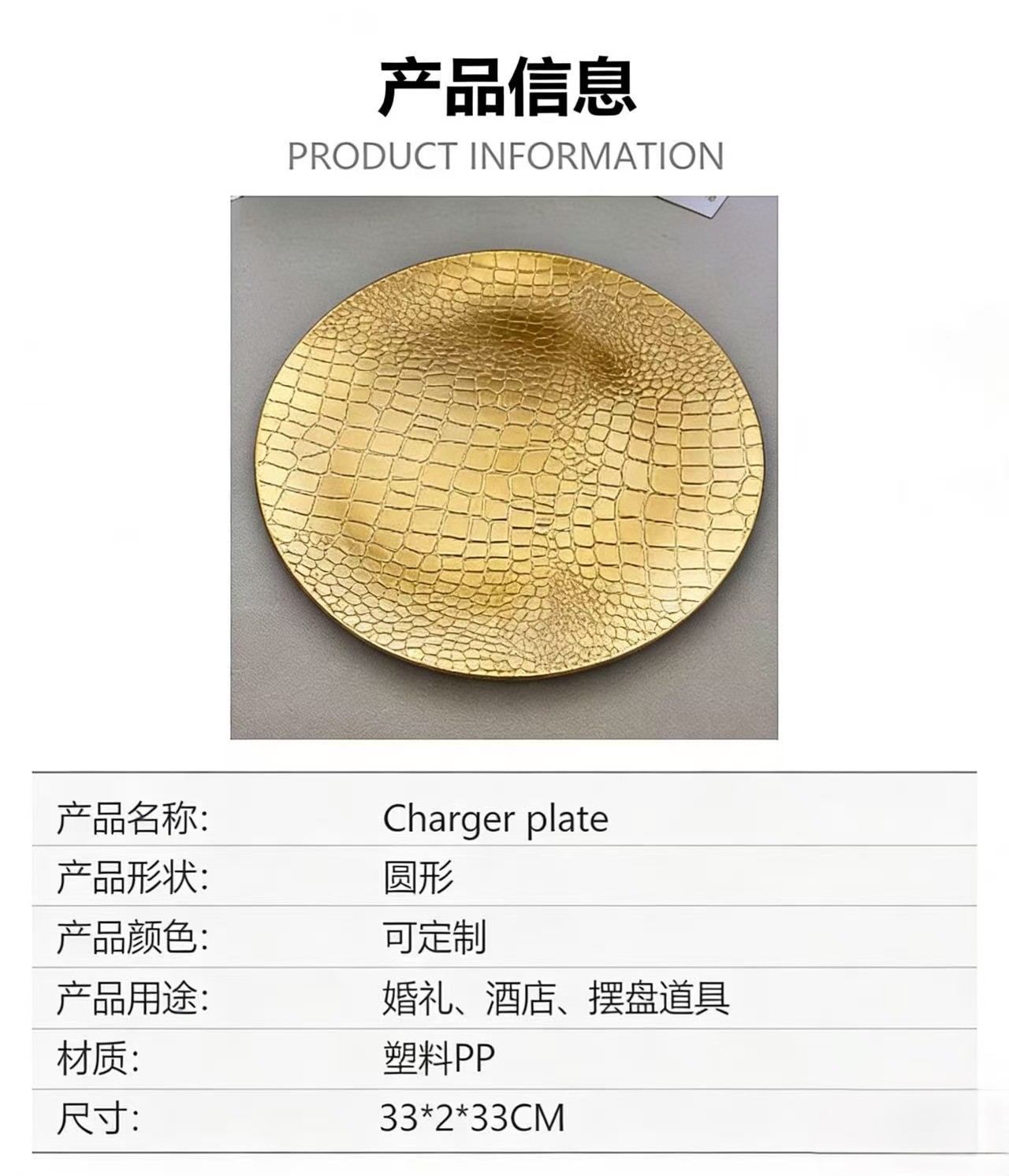 foreign trade exclusive for texture reshaping crocodile pattern chgarger plate banquet wedding hotel special swing plate