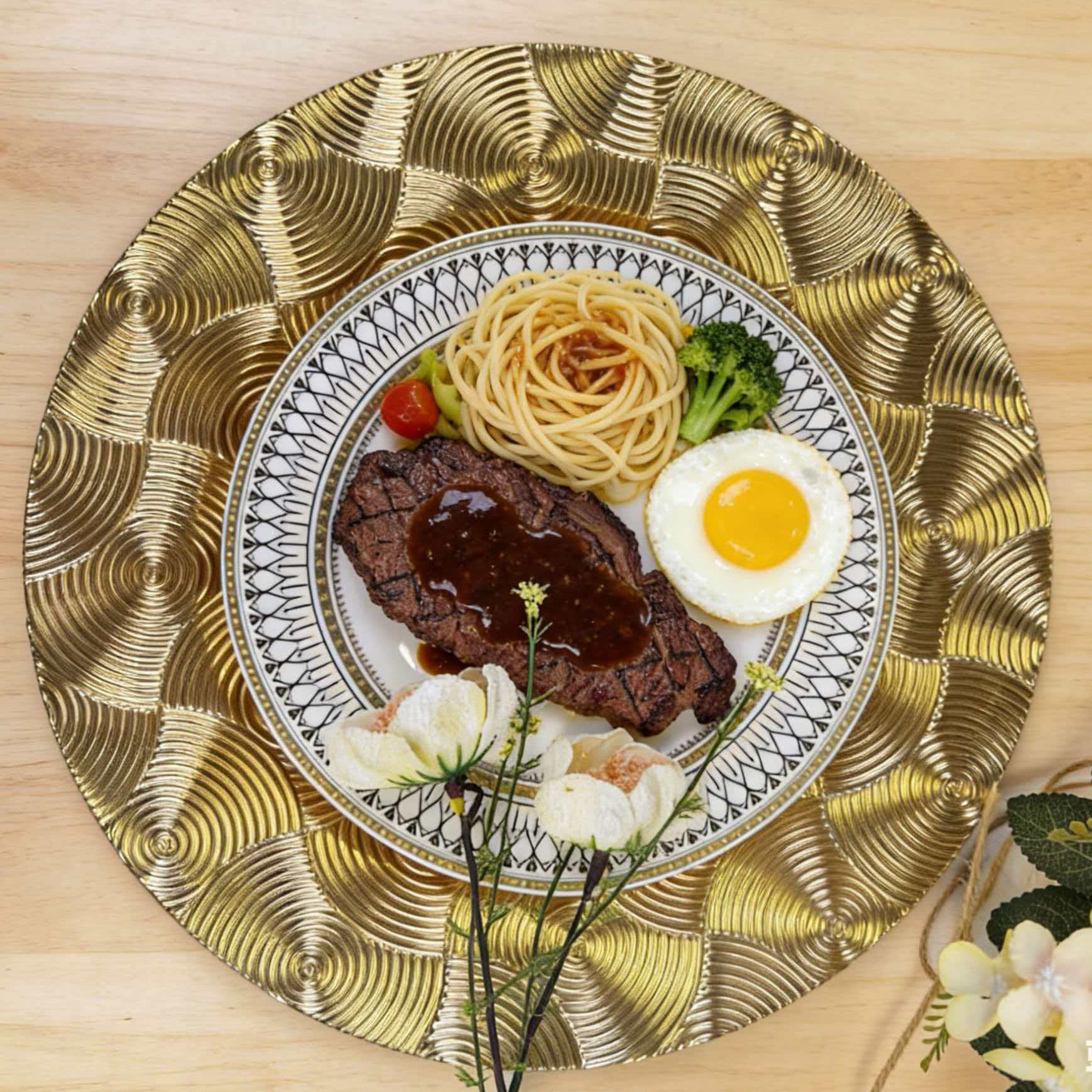 The size, shape, and color of the plates can be customized.Guests specify or provide