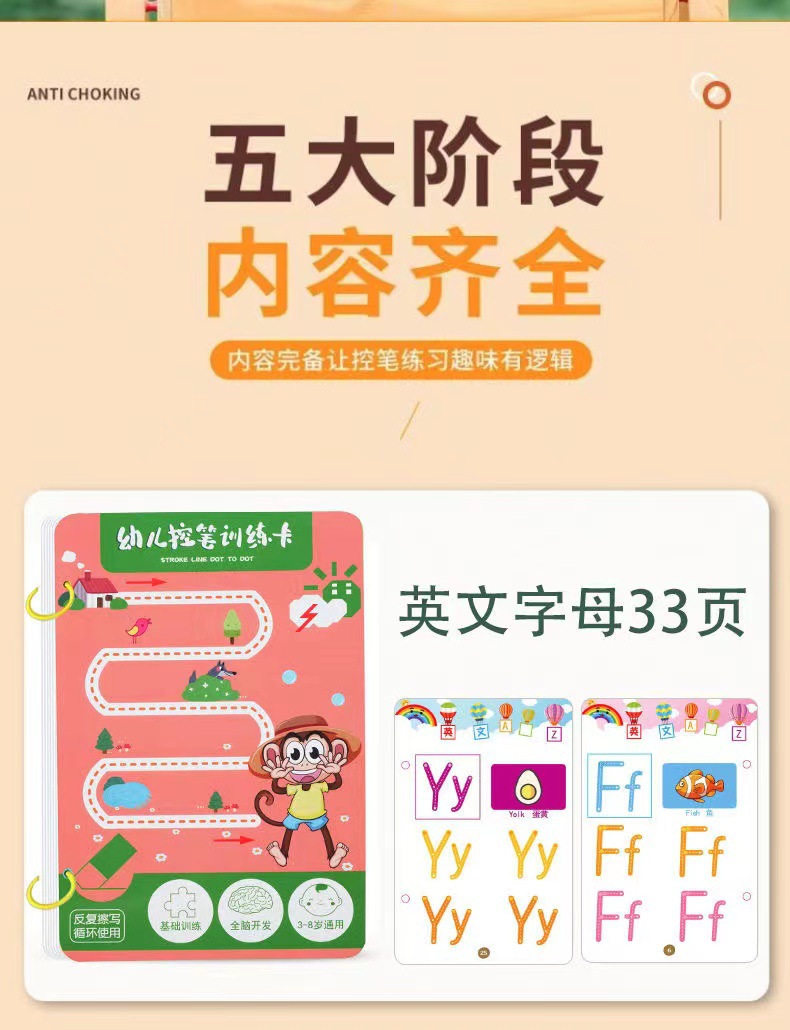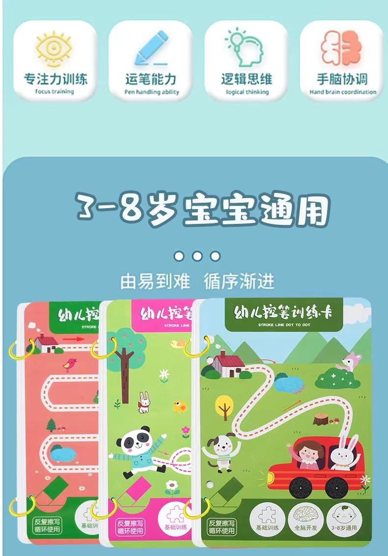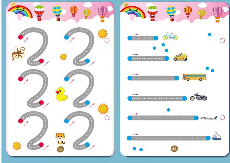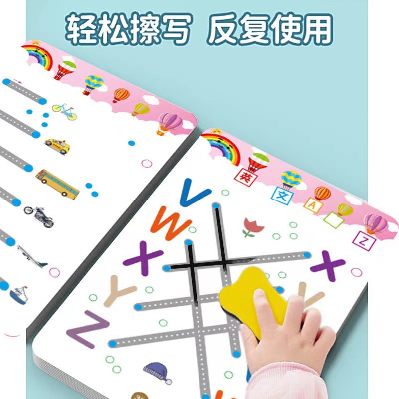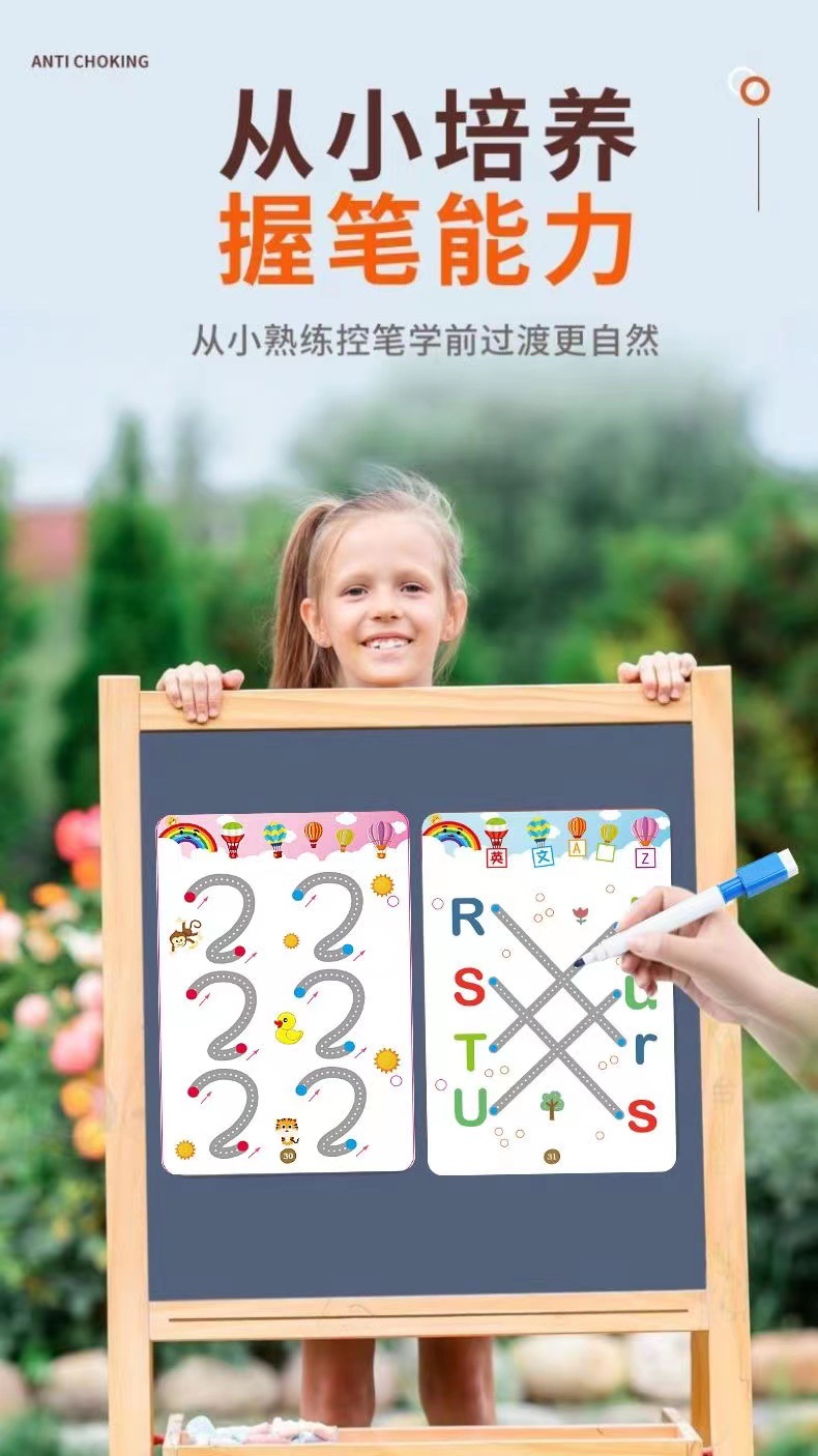 99 pages [numbers + letters + stroke order] complete 3-book set comes with 10 erasable pens.