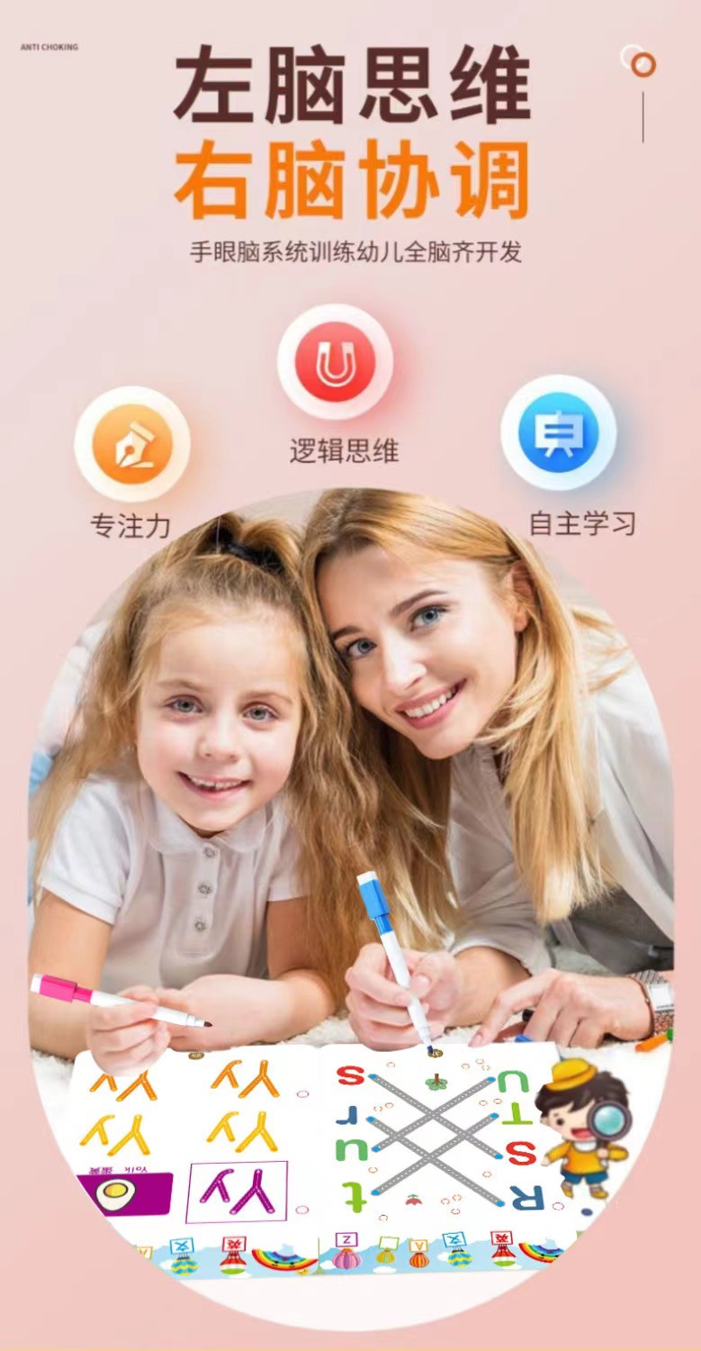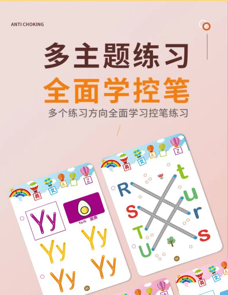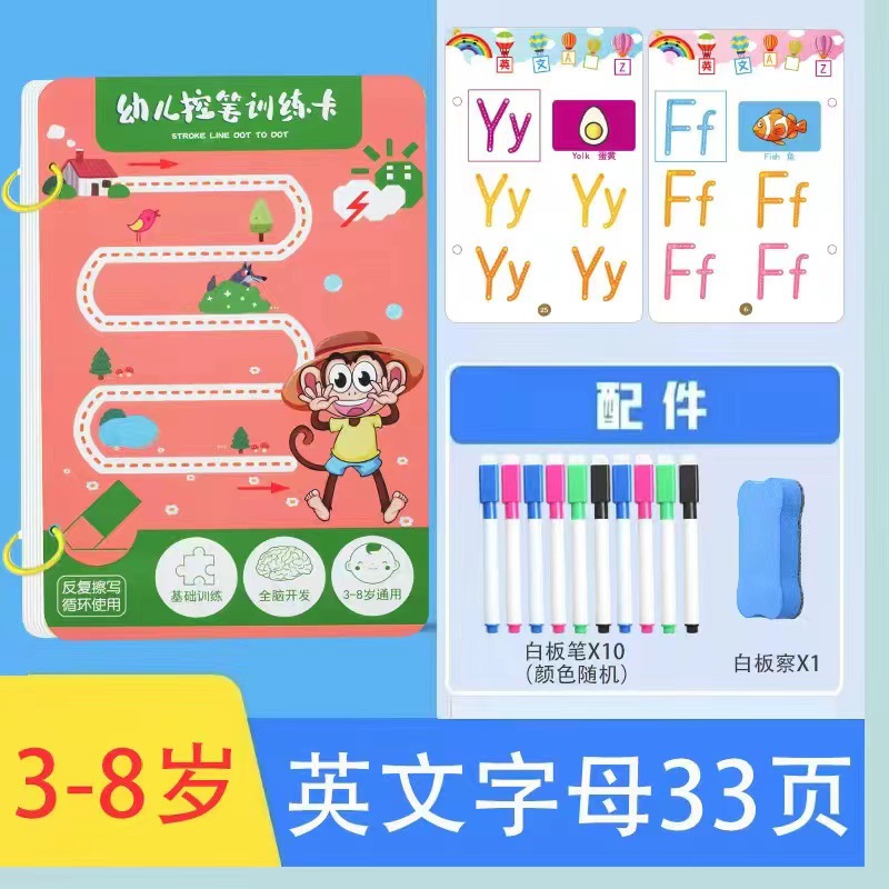 33-page english alphabet set comes with 10 pens and 1 eraser.