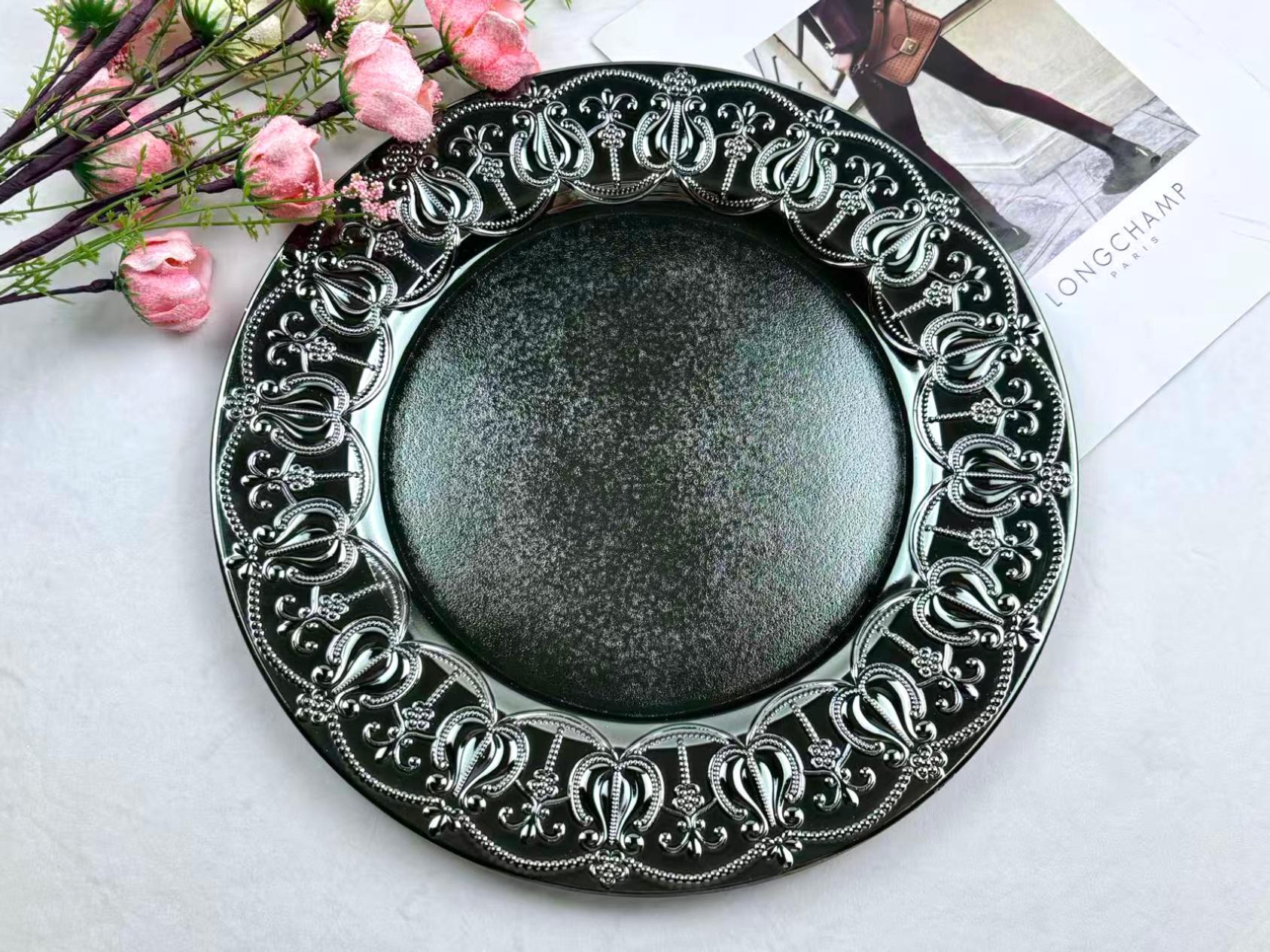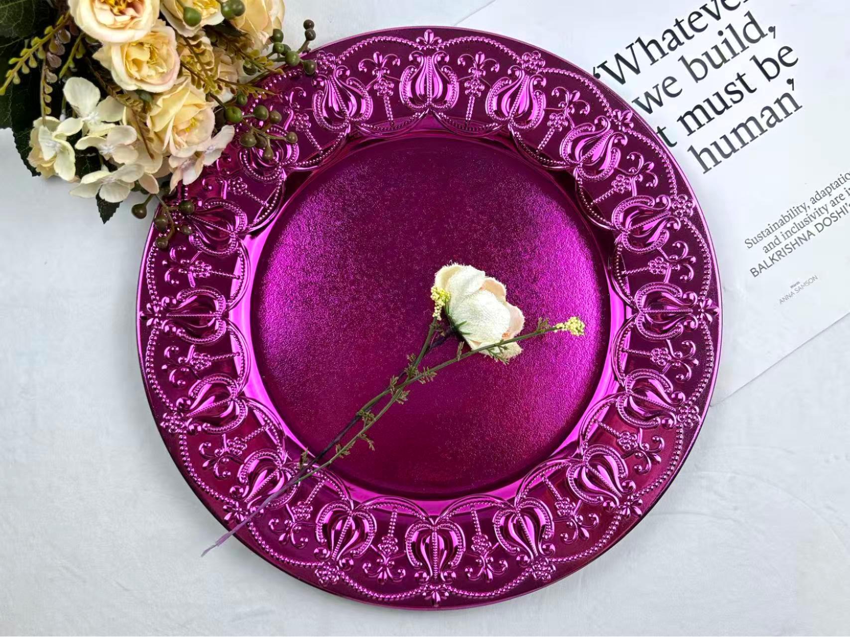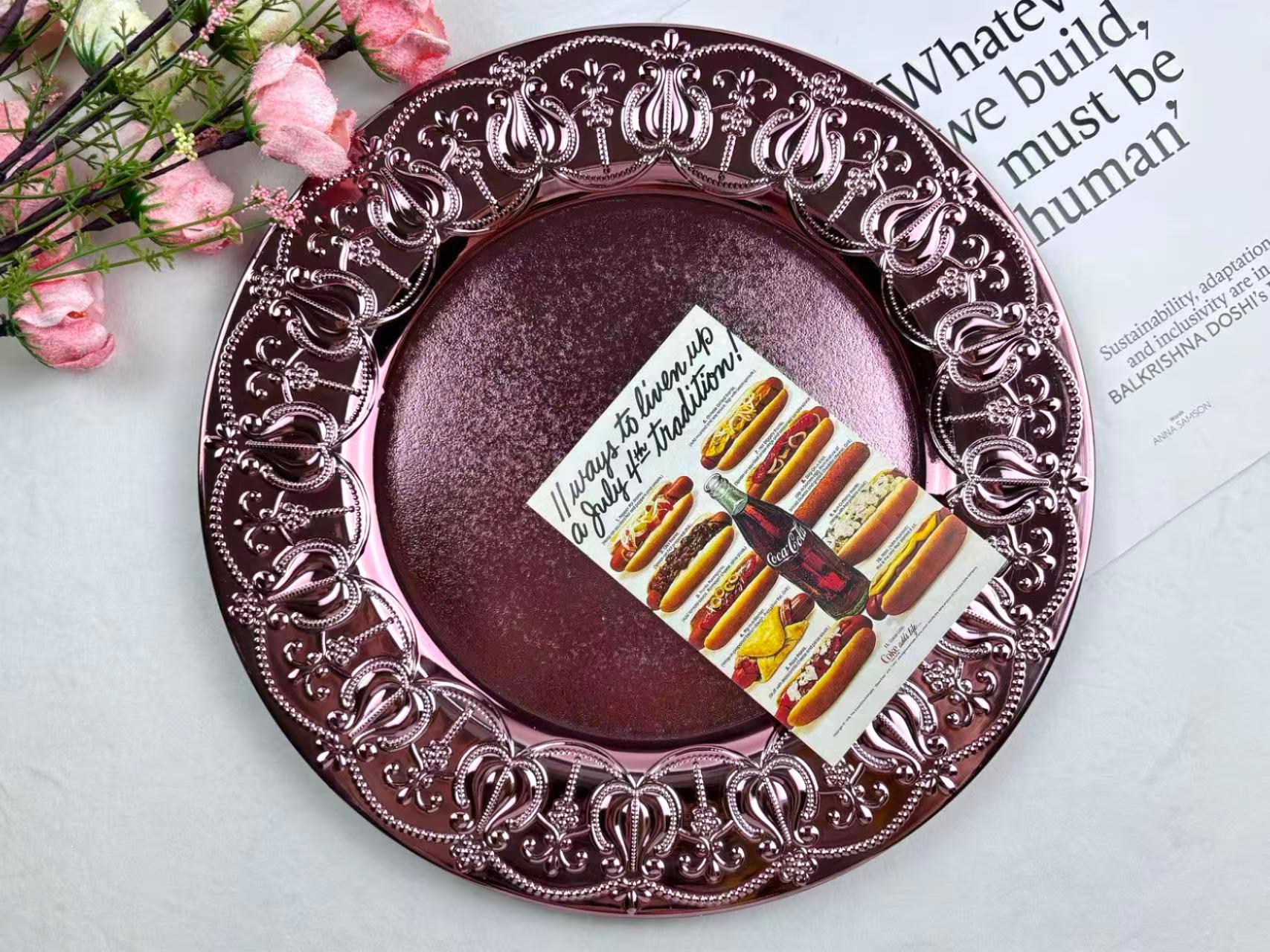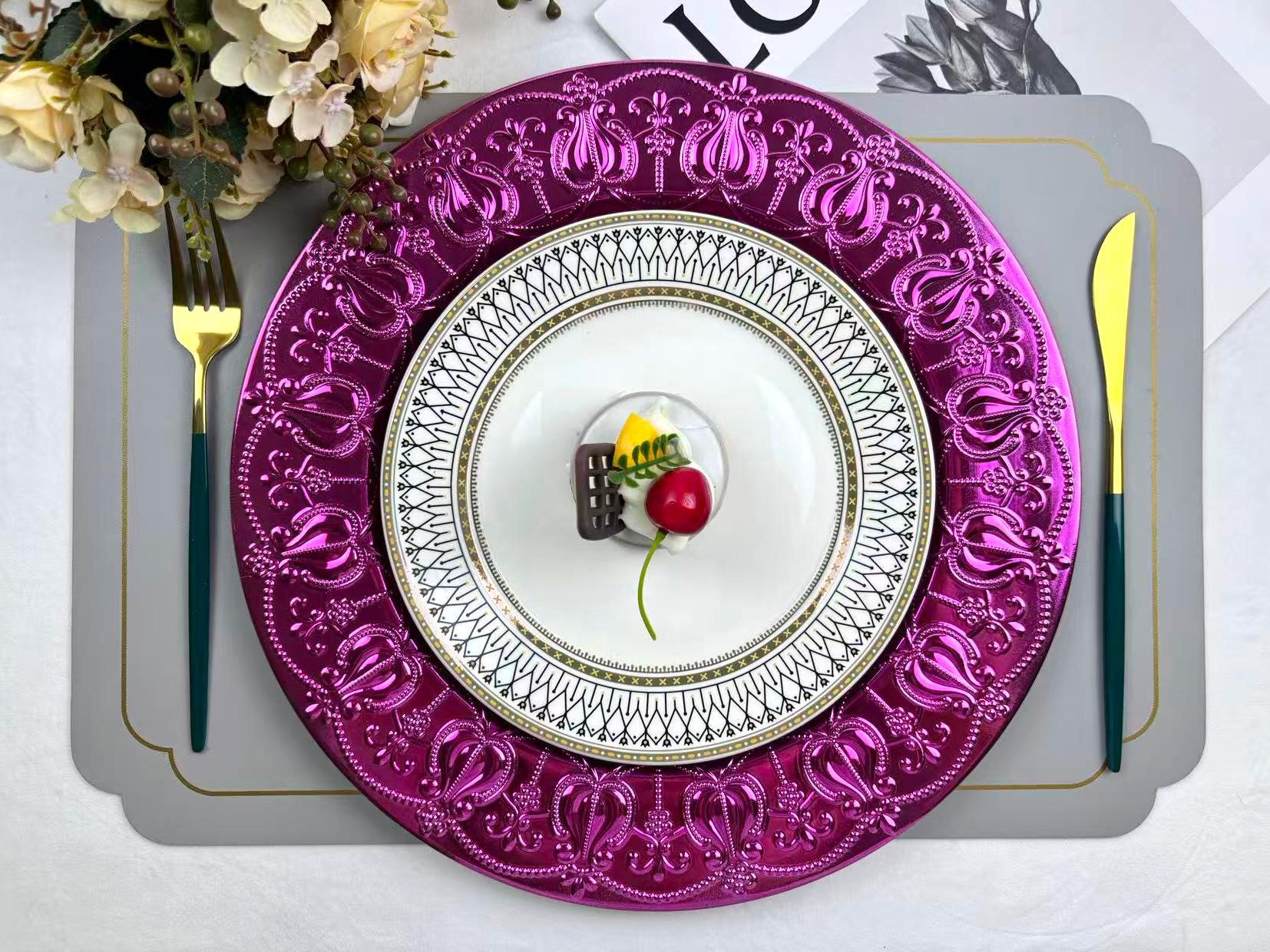 The size, shape, and color of the plates can be customized.Guests specify or provide
