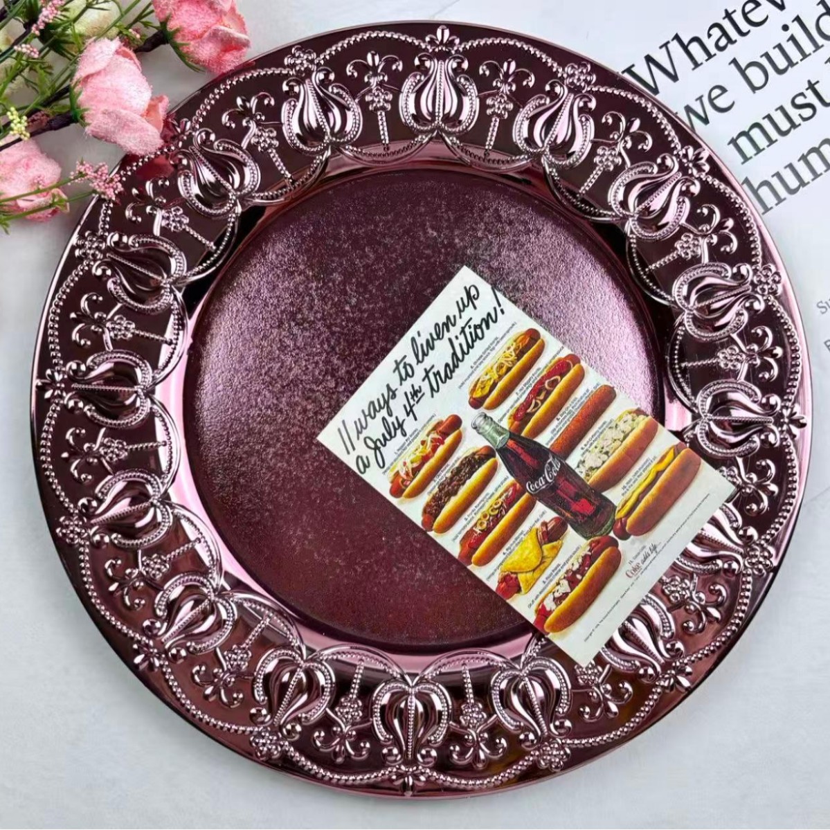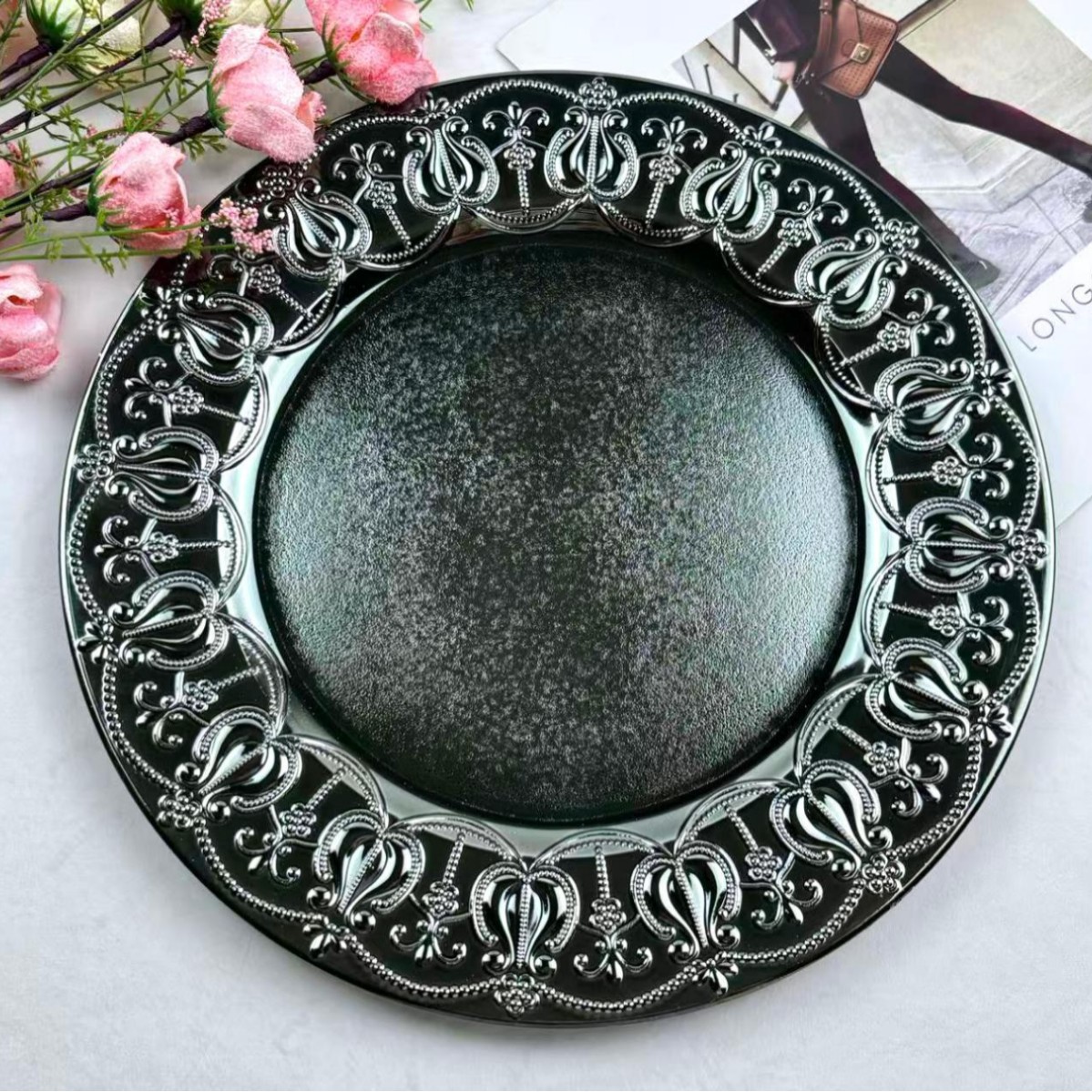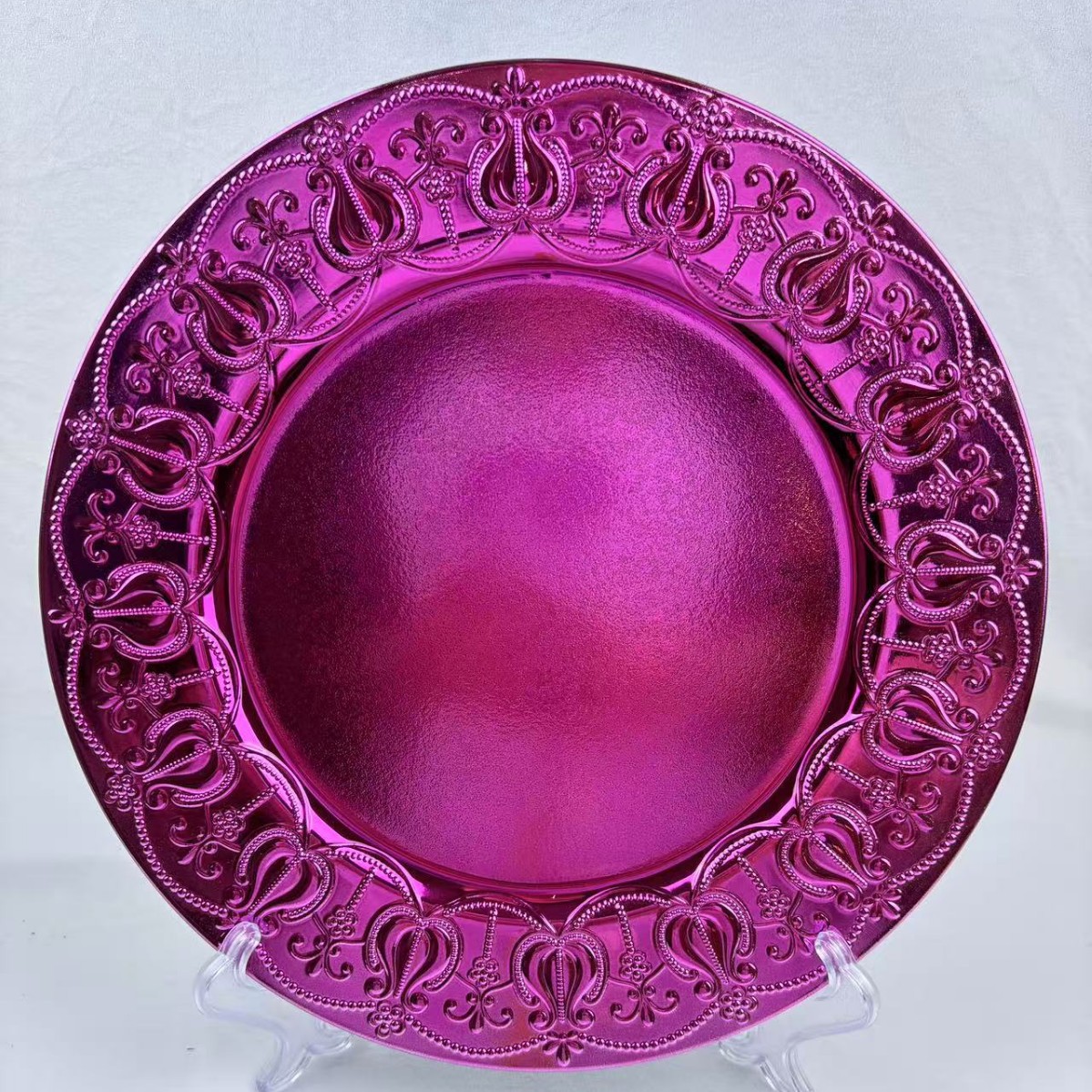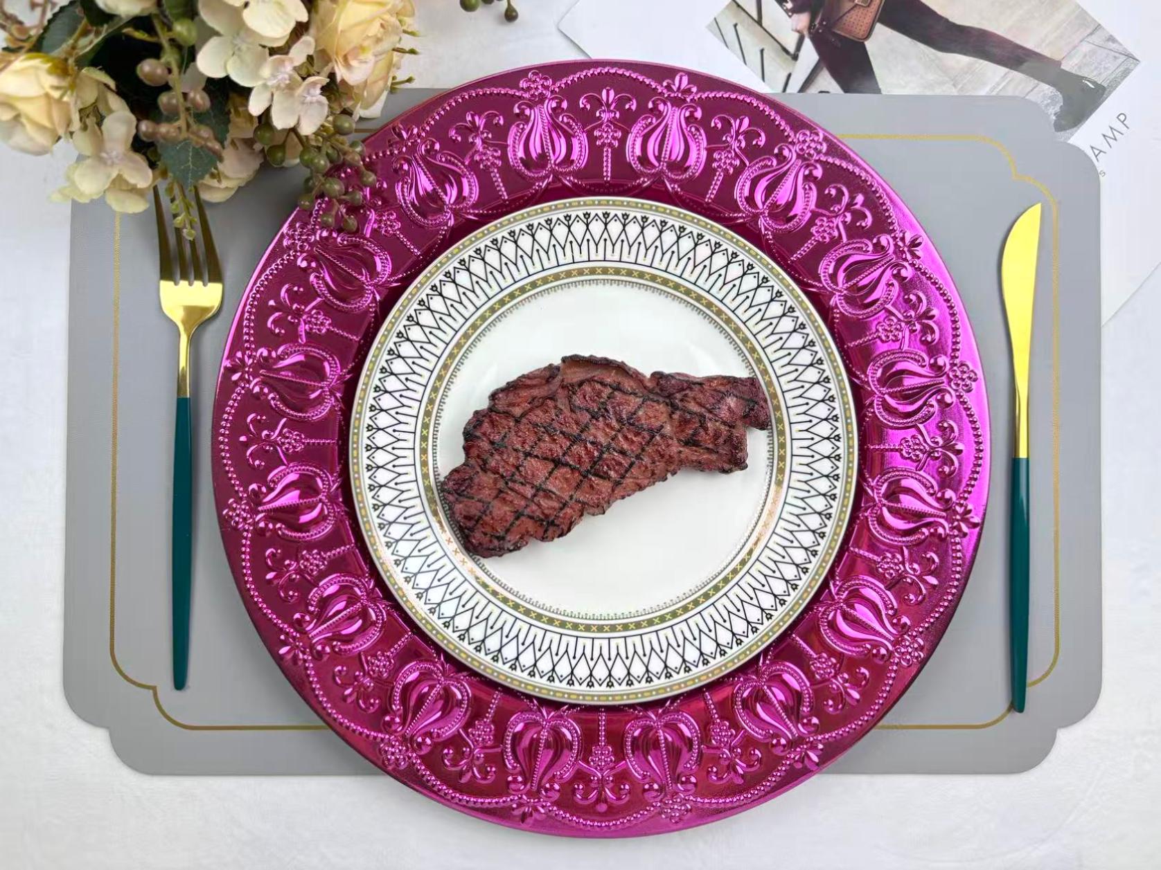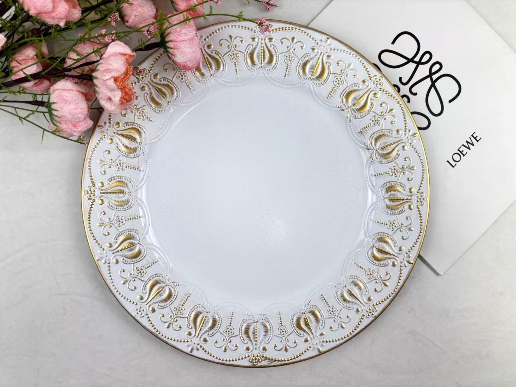The size, shape, and color of the plates can be customized.Guests specify or provide