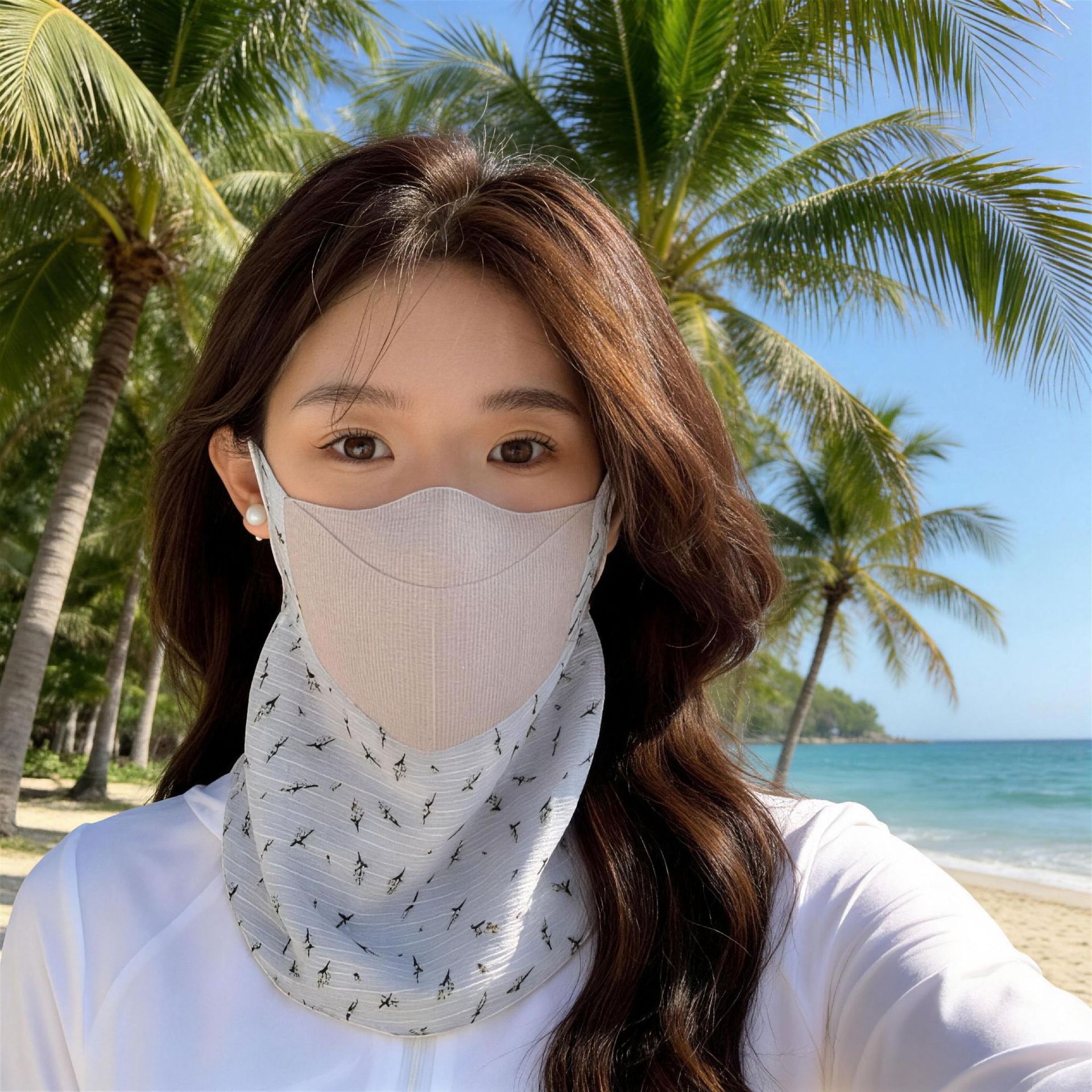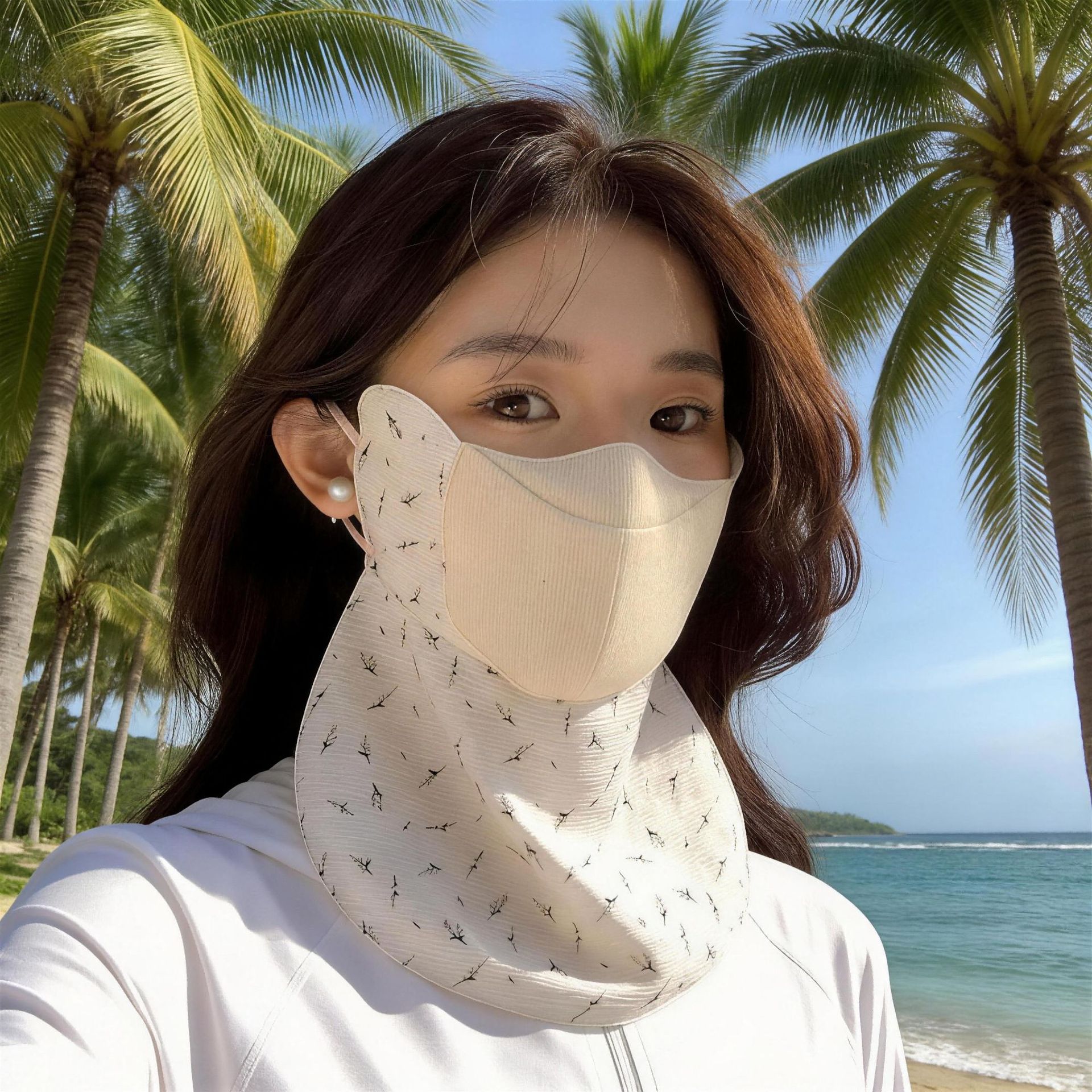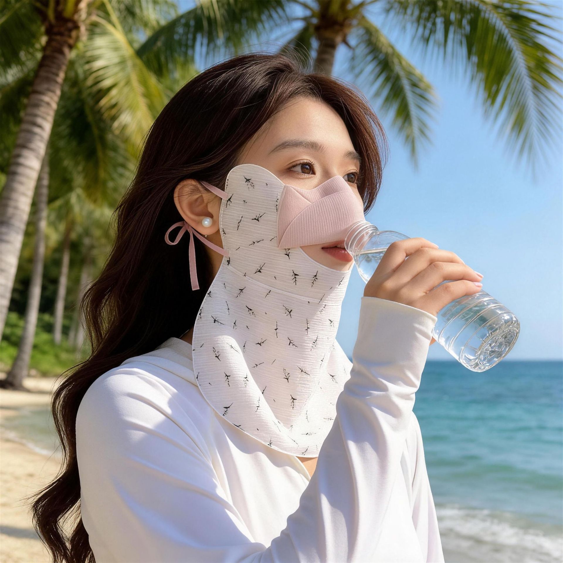beige [drinking water long style-small flowers]